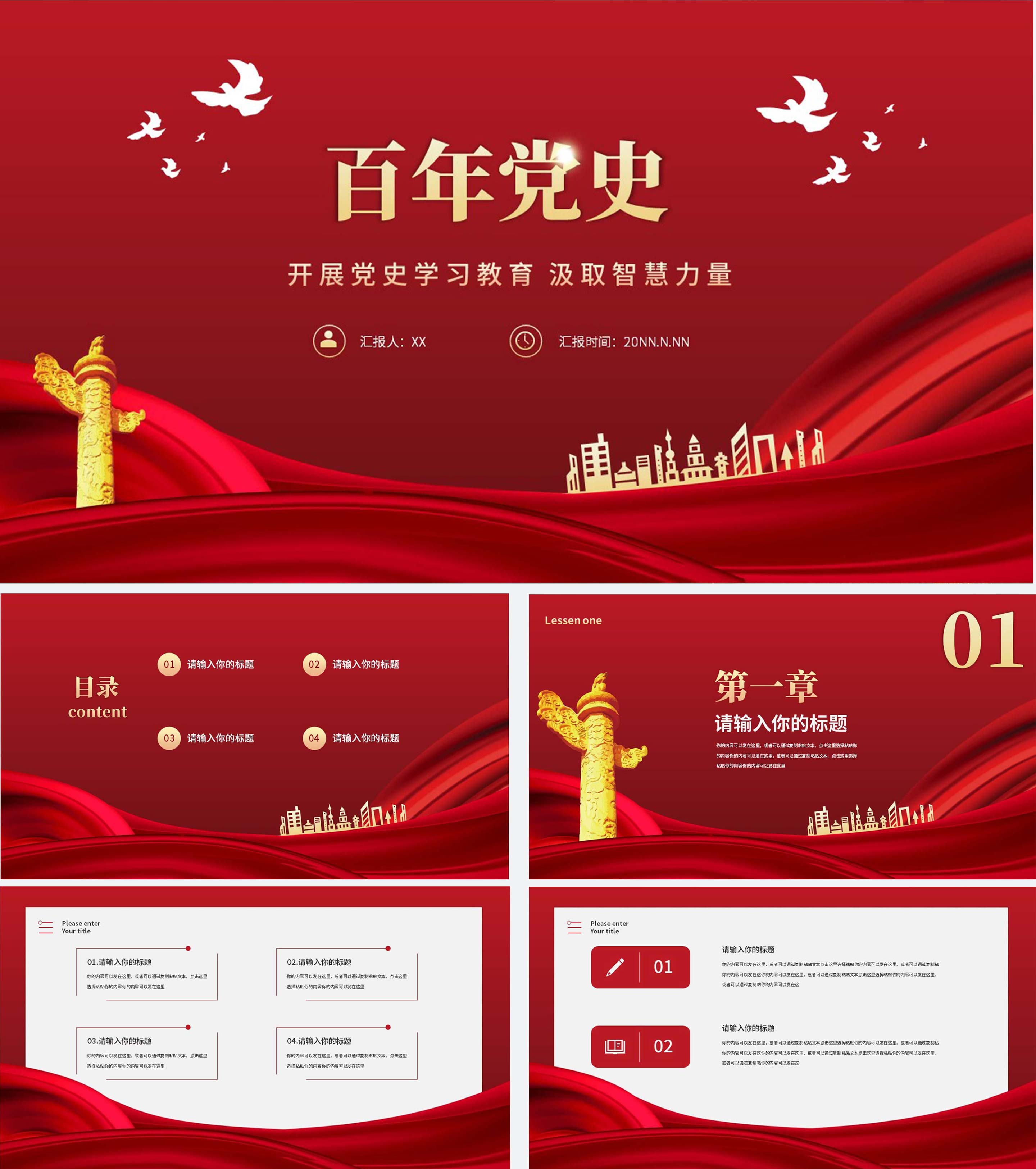 红色党政风百年党史学习PPT模板