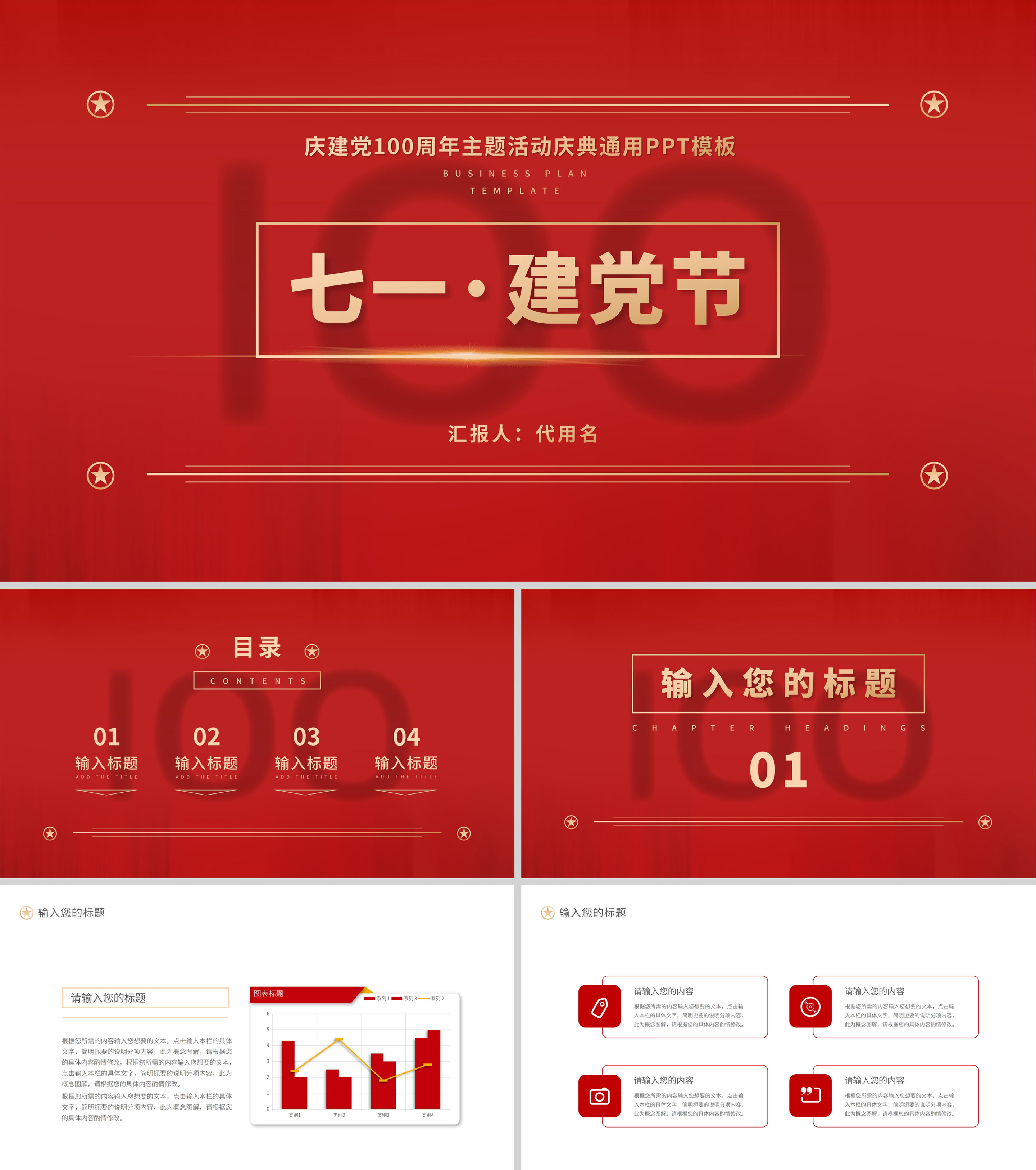红色简约风七一建党节PPT模板