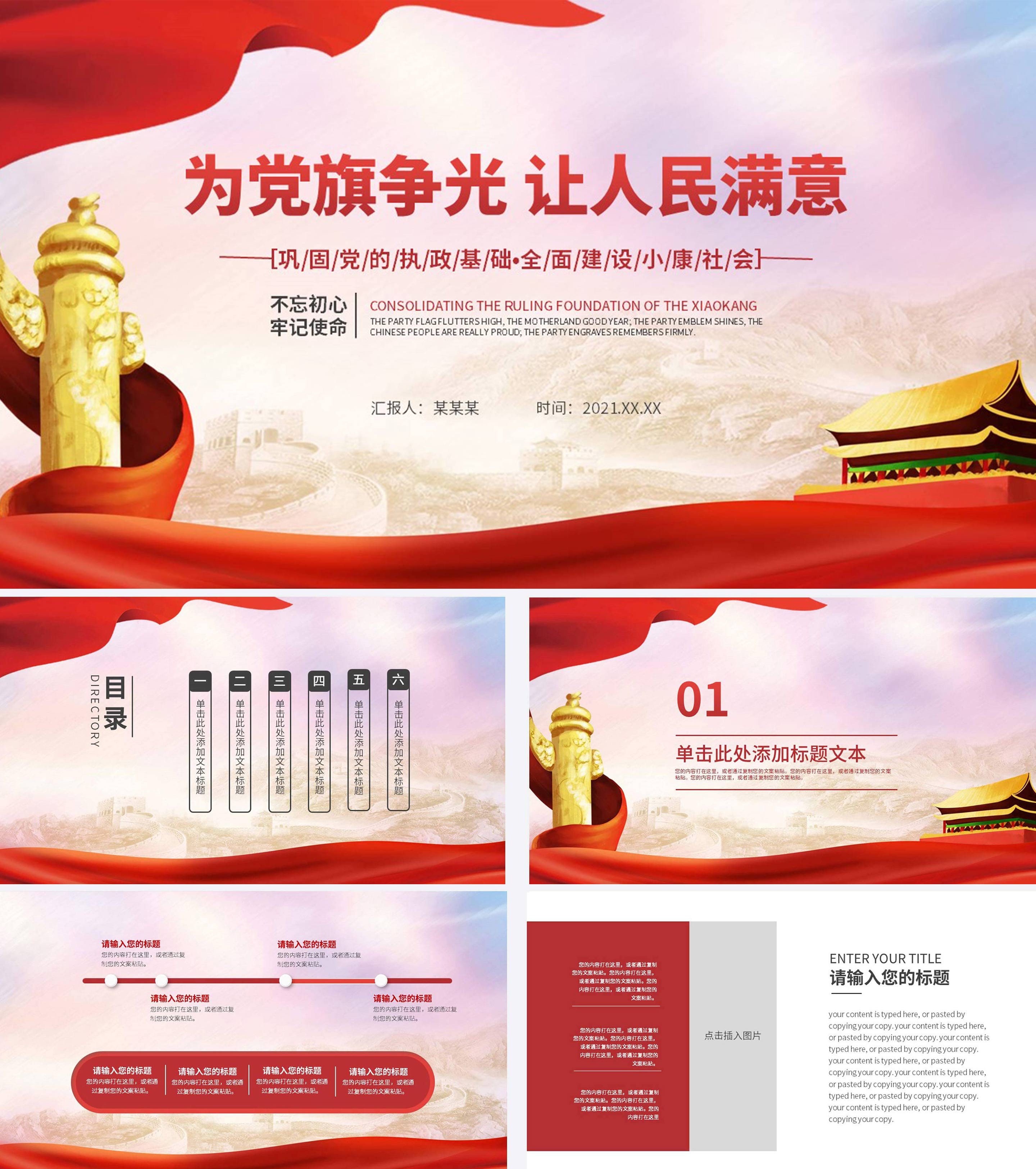 红色为党旗争光让人民满意党建宣传ppt模板