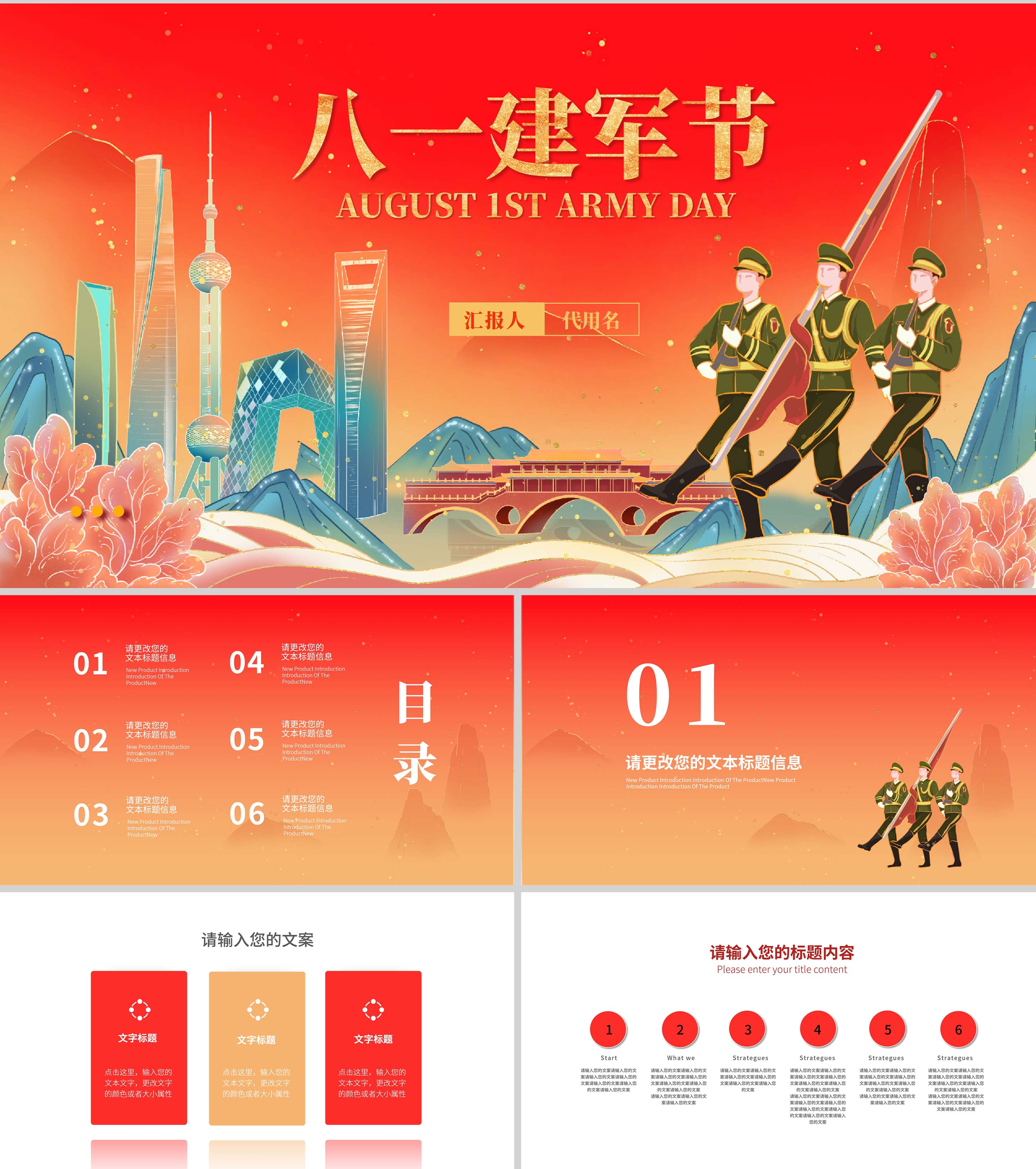 红色中国风八一建军节PPT模板