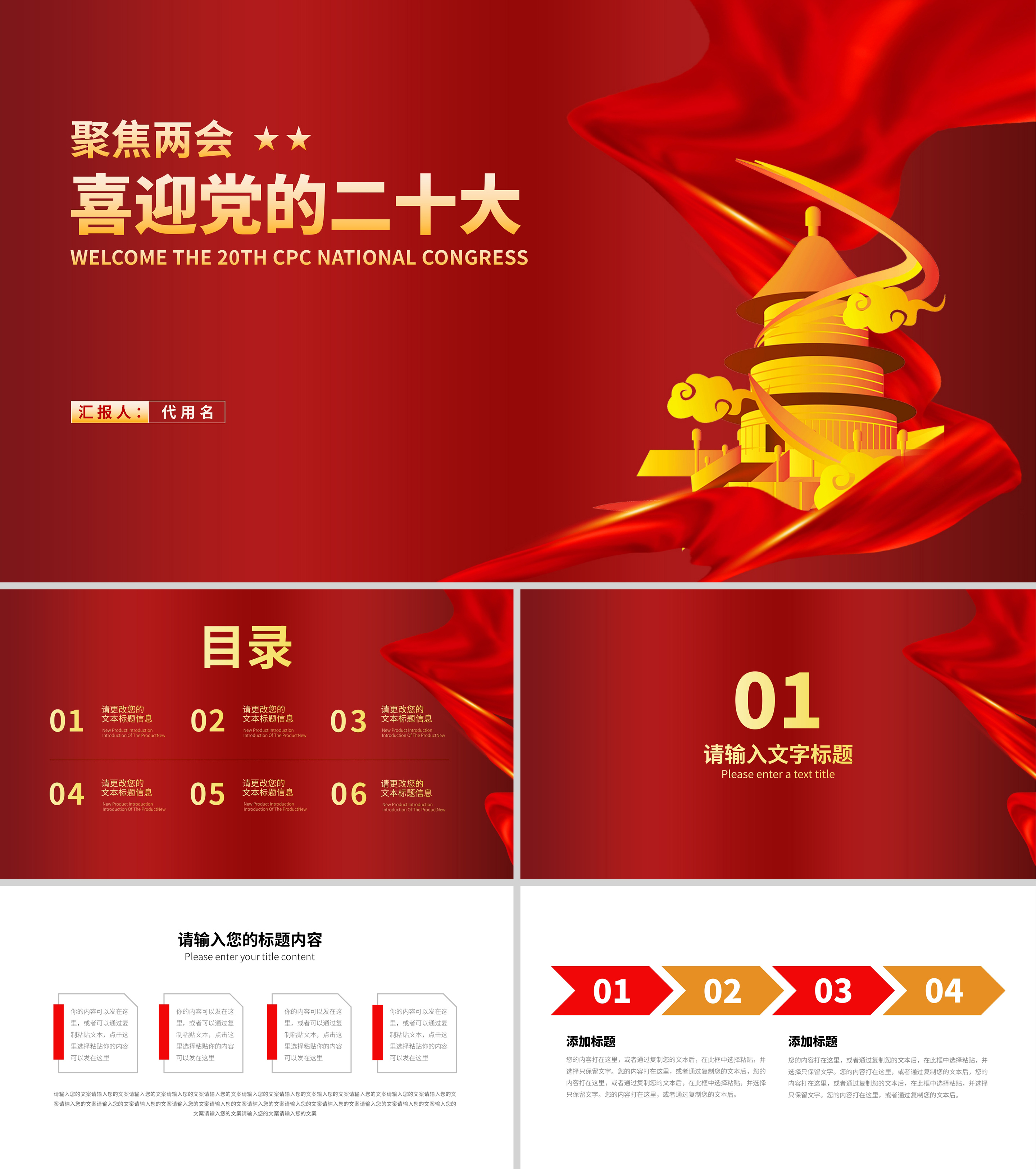 红色党政风聚焦两会喜迎二十大汇报PPT模板
