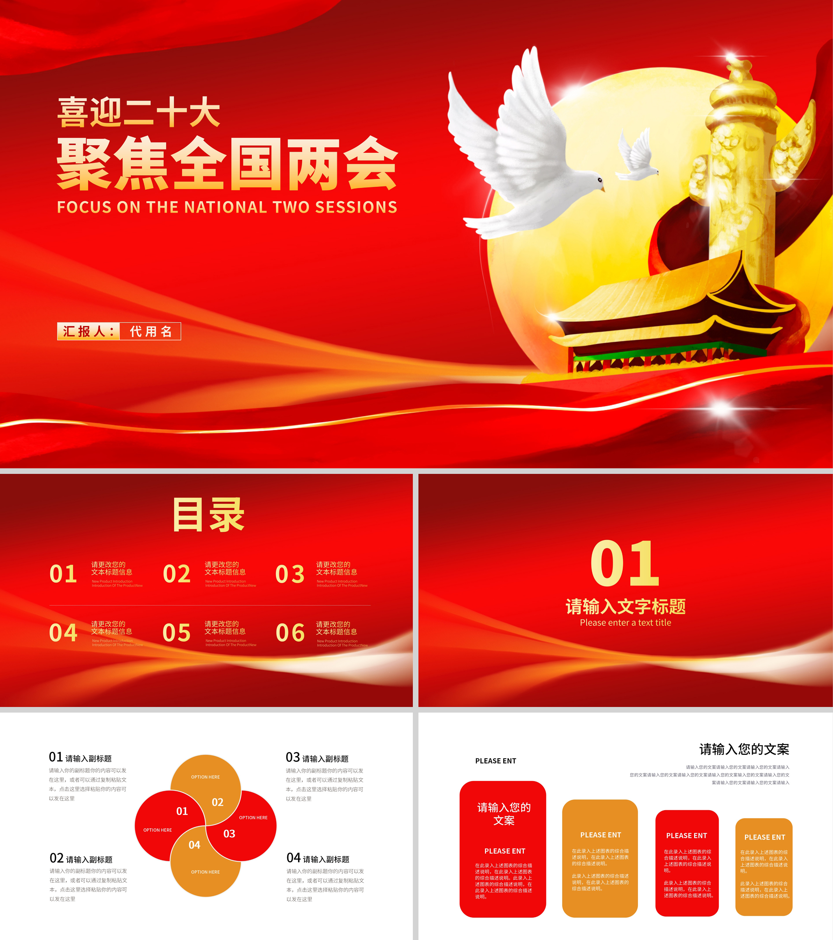 红色扁平风新年营销活动复盘策划方案PPT模板