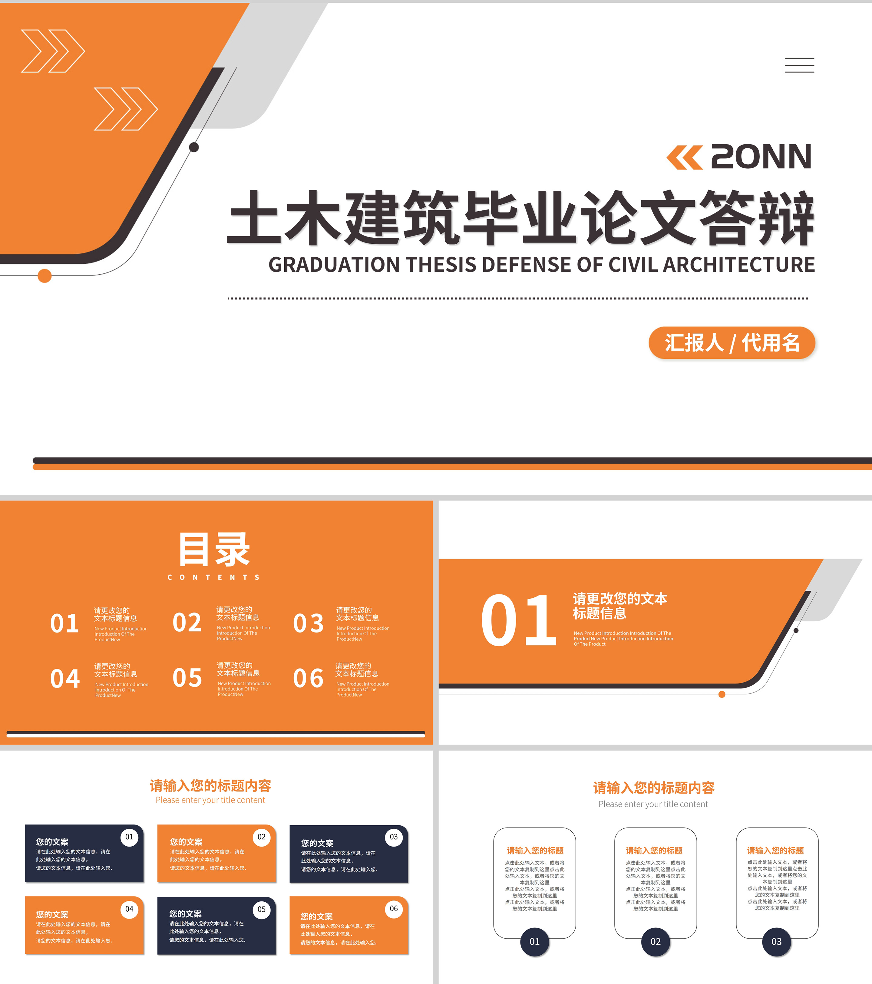 白色几何风大学生大四土木建筑毕业论文答辩PPT模板