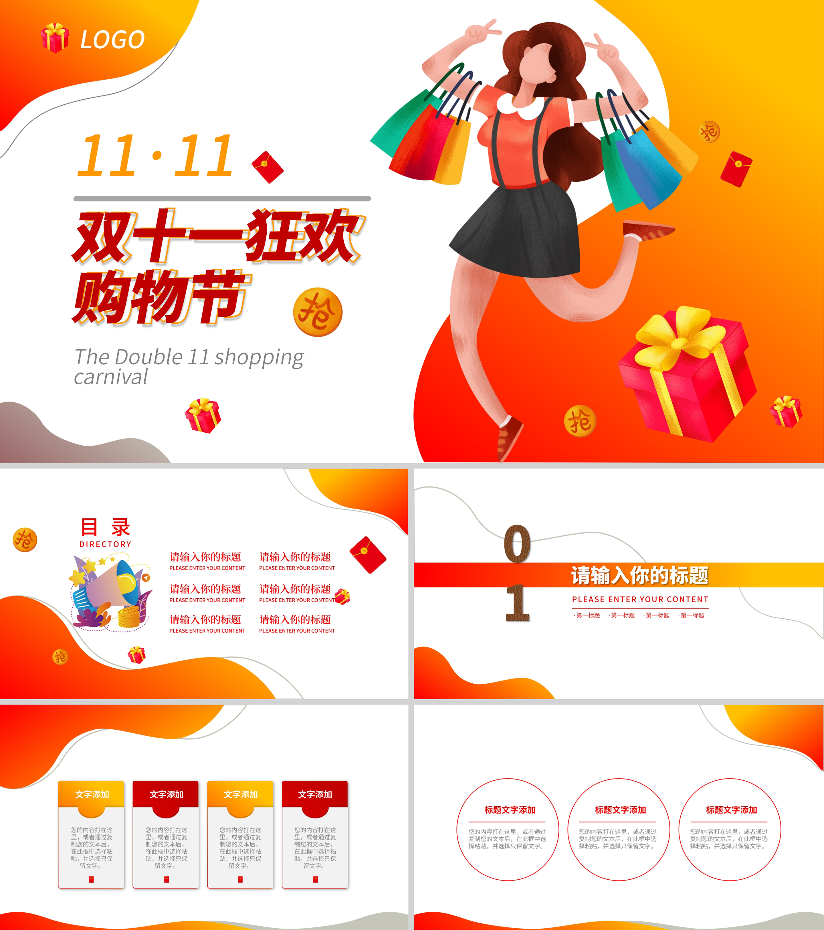 黄色扁平风购物狂欢节活动营销策划PPT模板