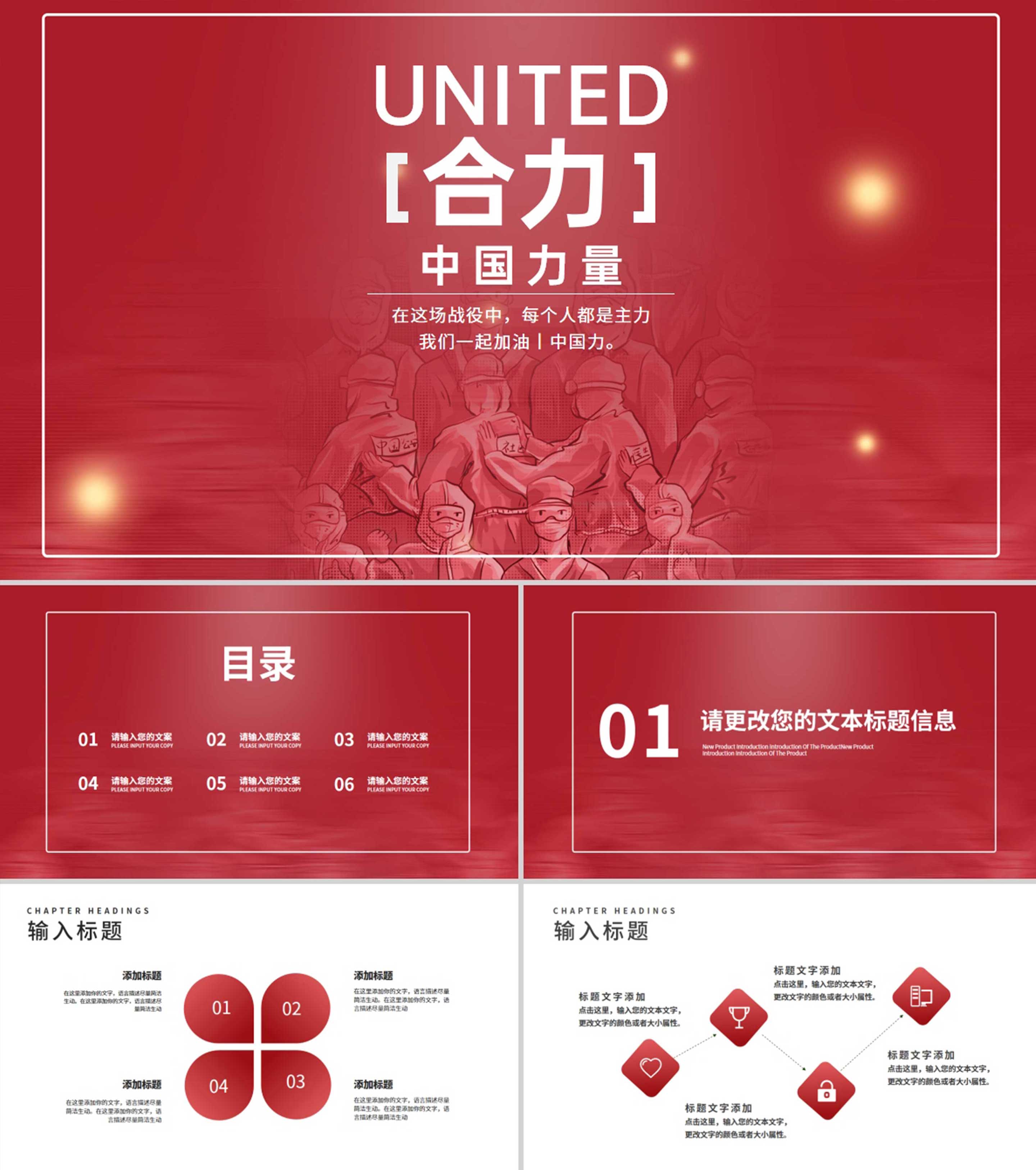 红色党政风中国医疗抗疫成果党政报告PPT模板