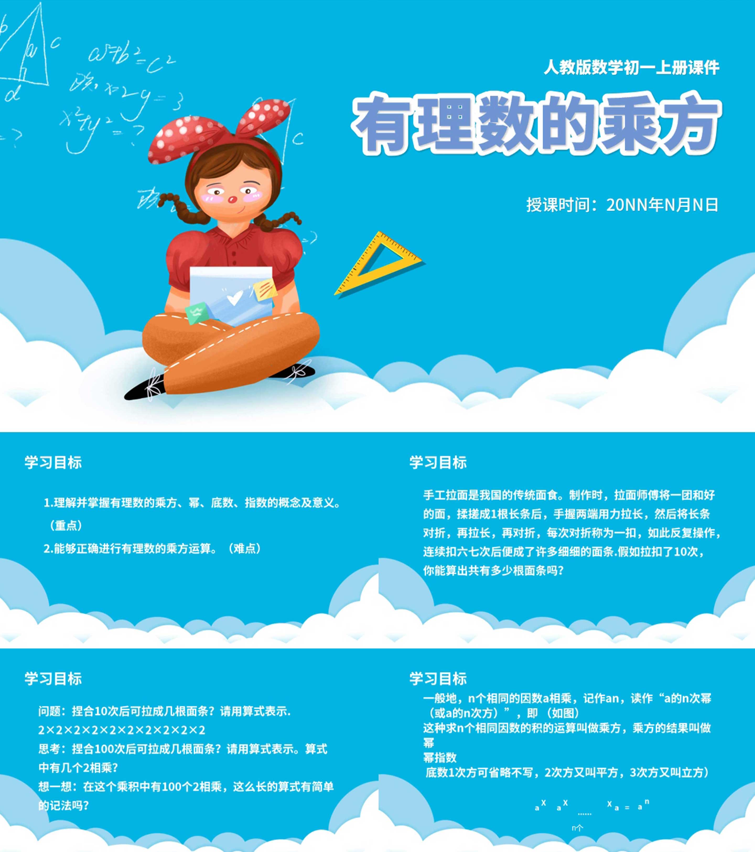 蓝色卡通风数学初一课件有理数乘方PPT模板