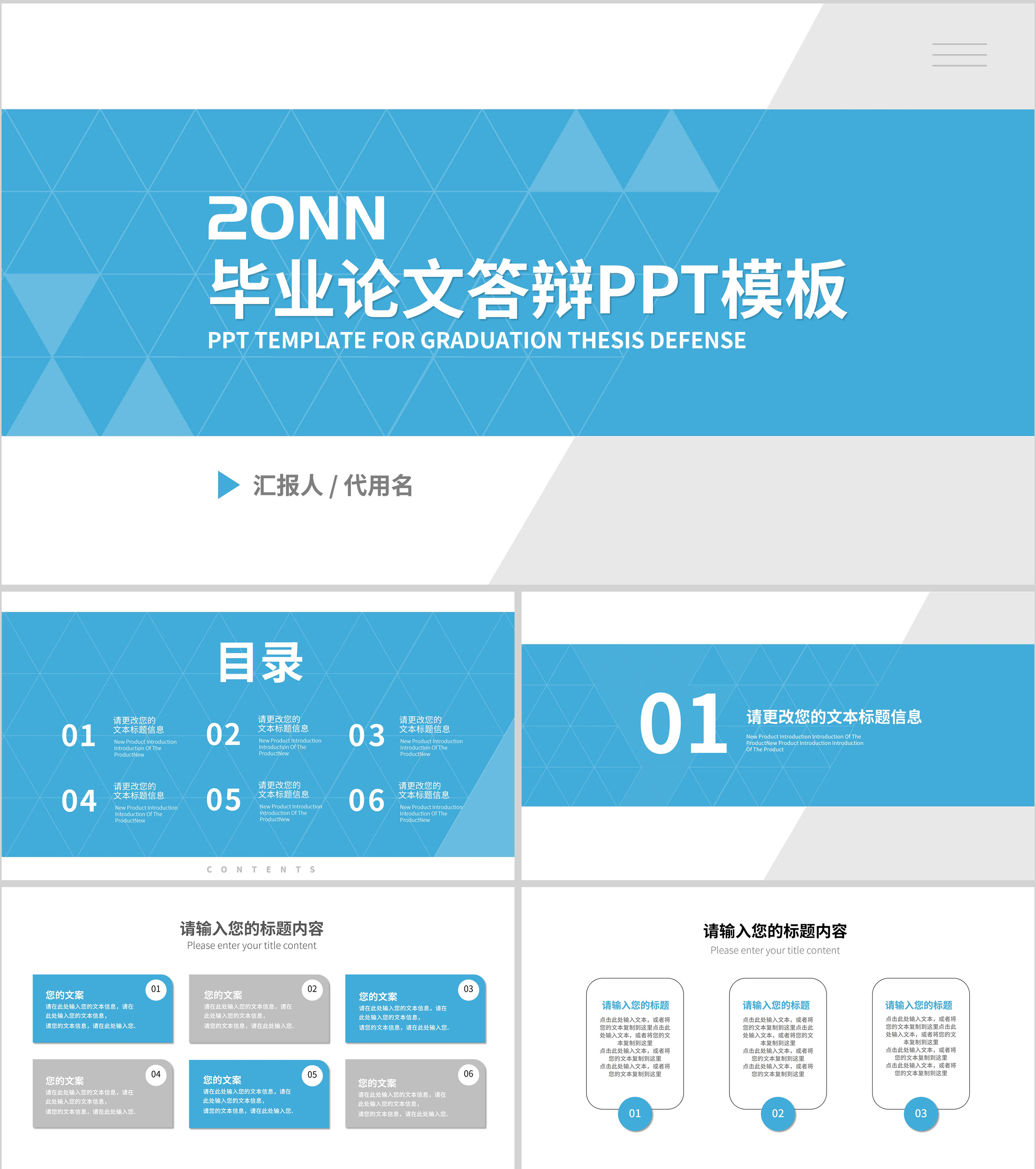 蓝色几何纹理风学生毕业论文答辩PPT模板