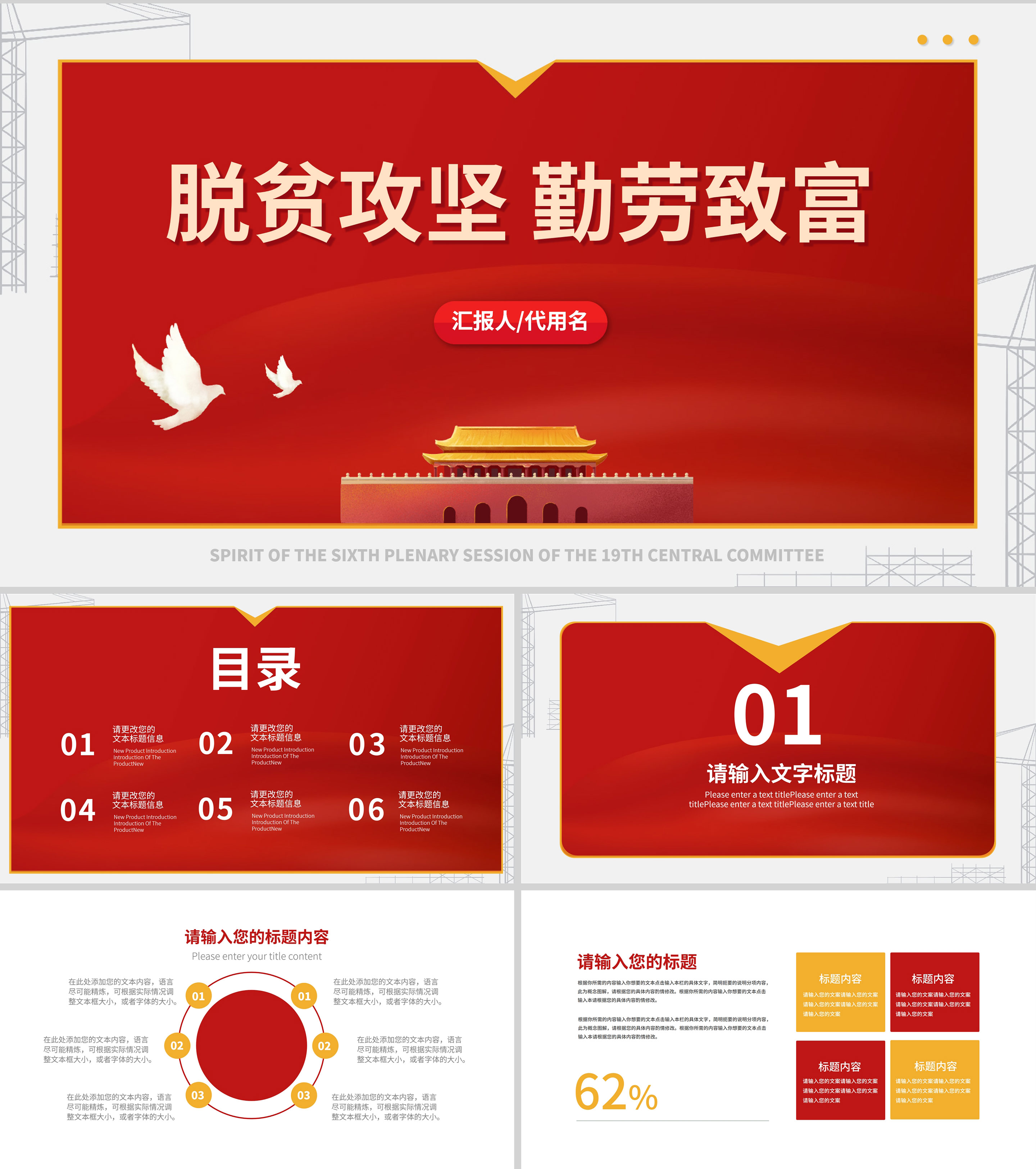 蓝色卡通插画风居家网课教育汇报PPT模板