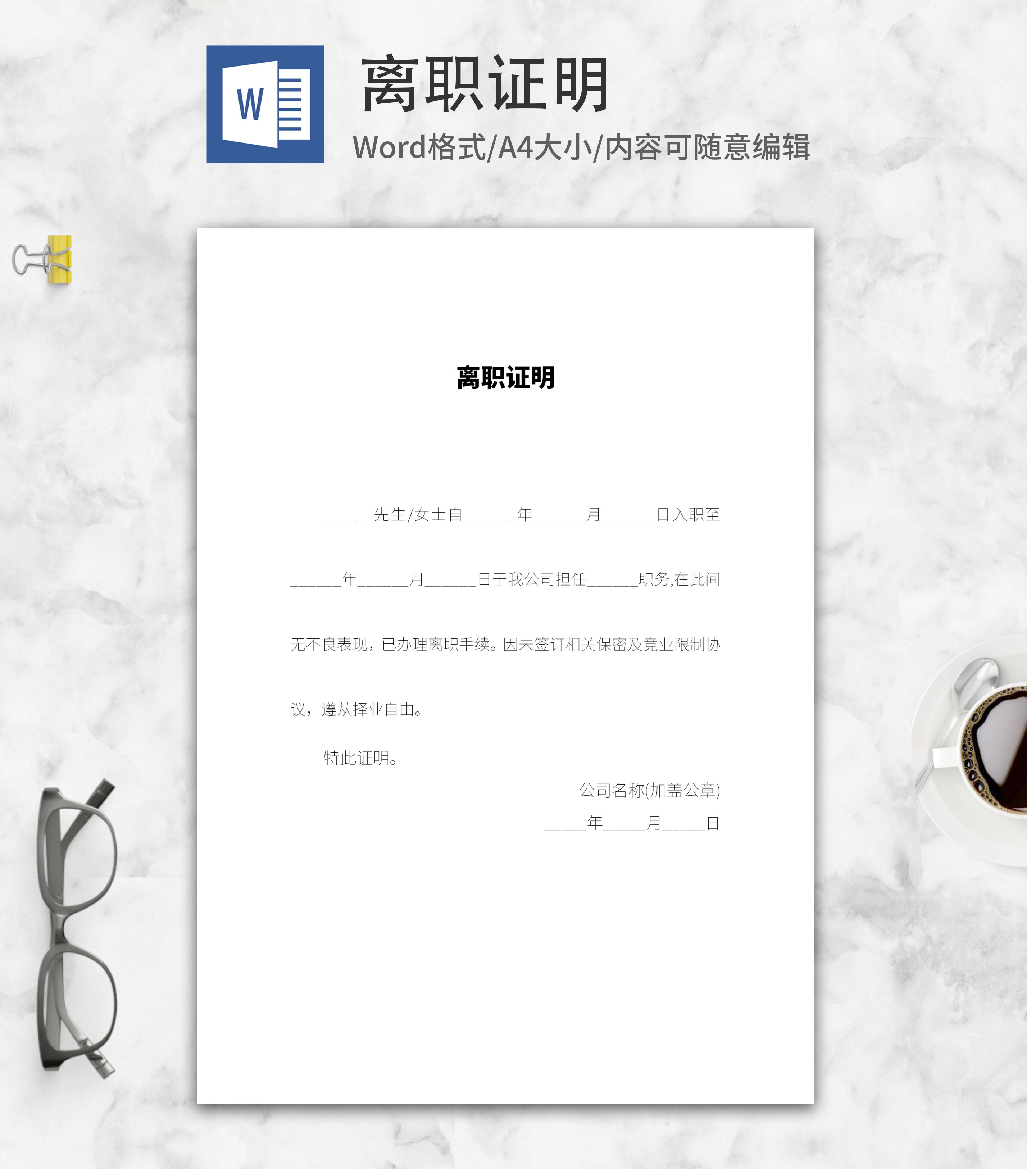 公司部门员工离职证明word模板