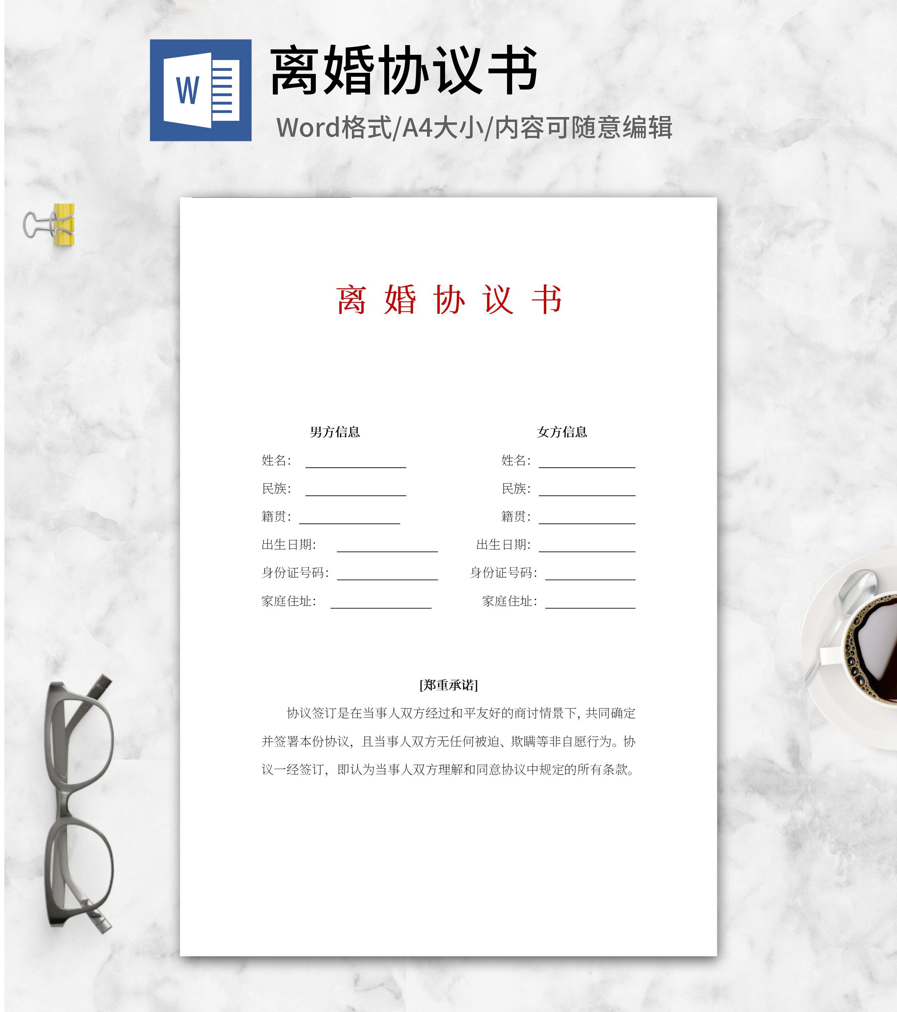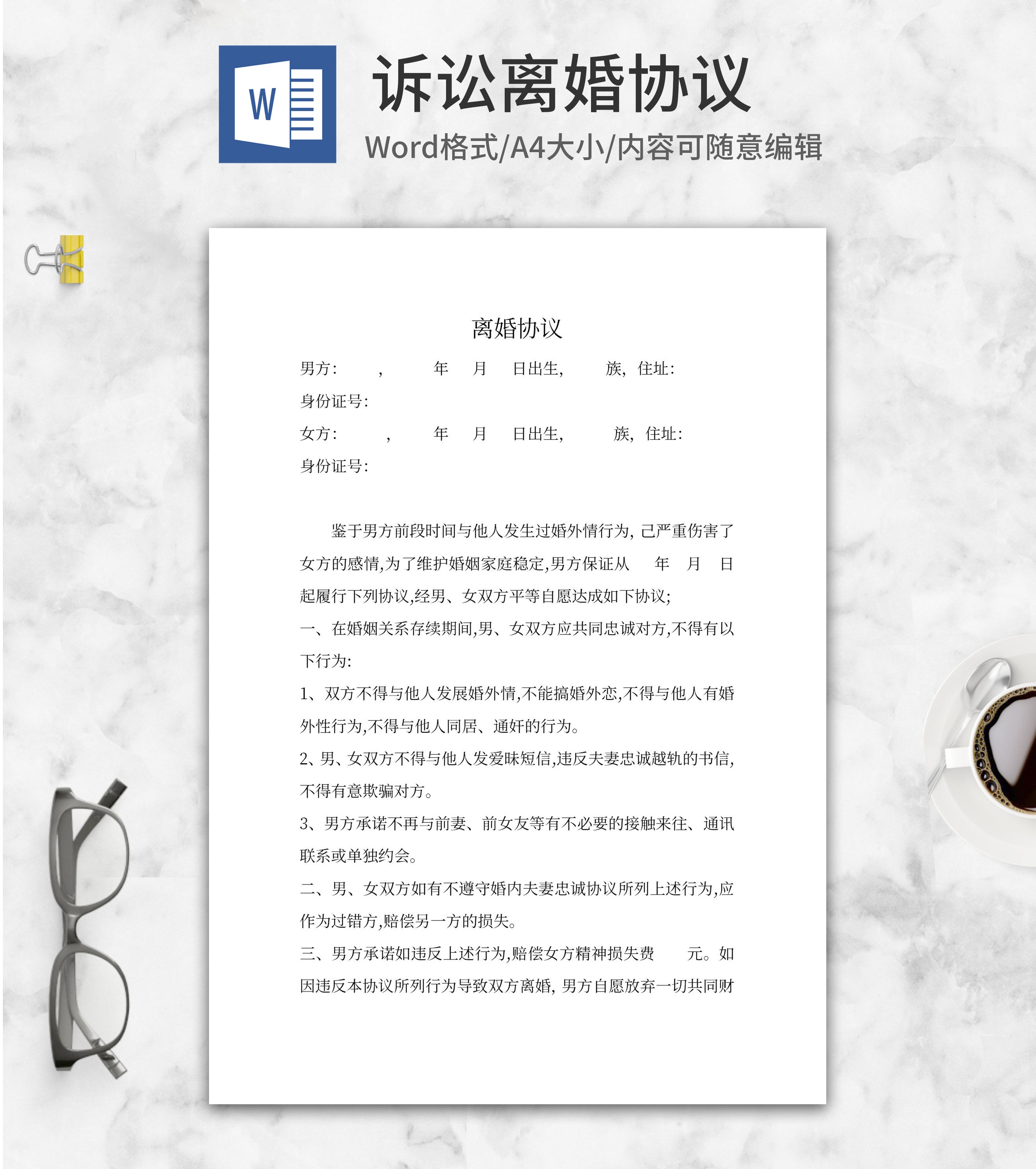 诉讼离婚协议word模板
