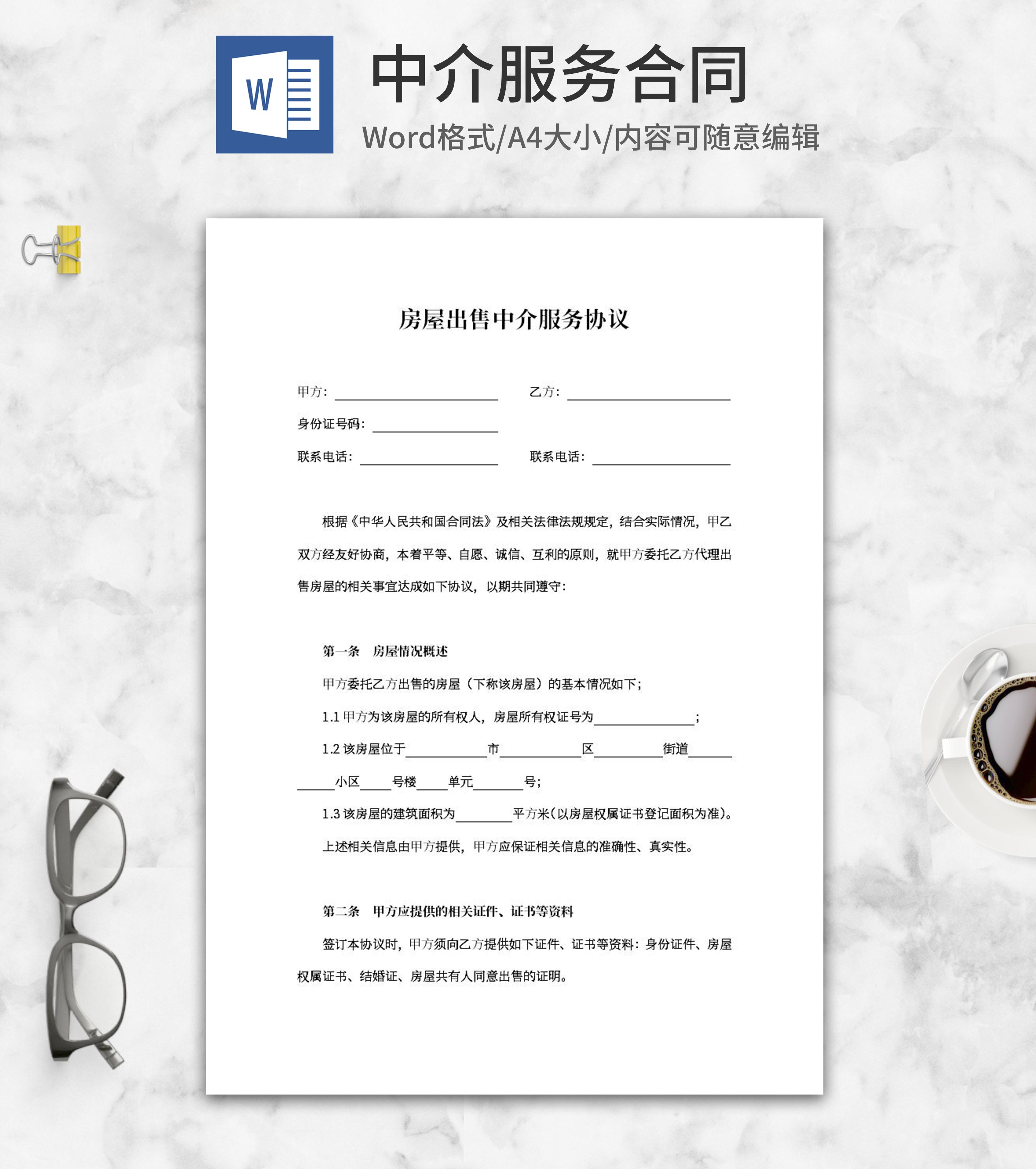 房屋出售中介服务协议word模板