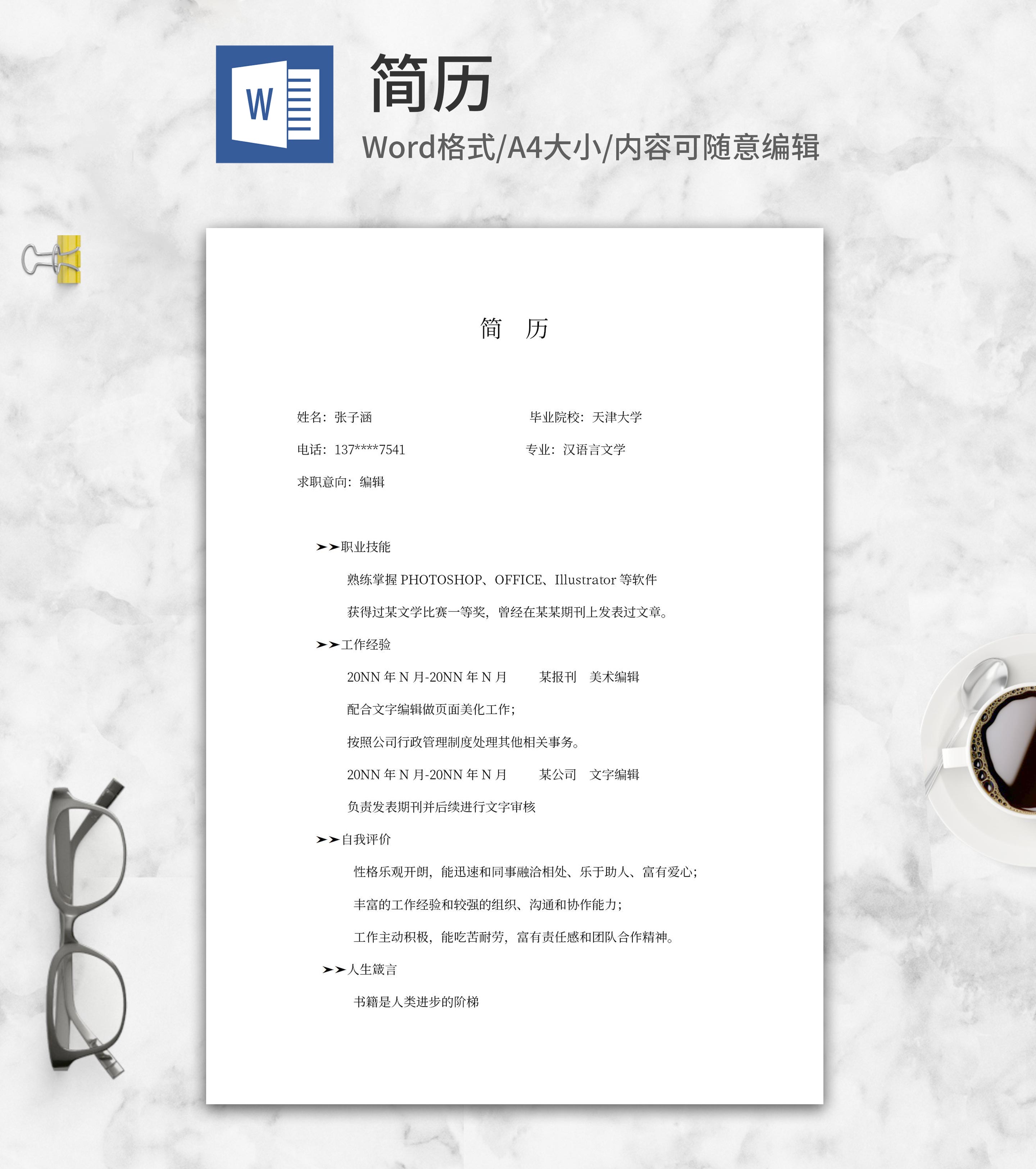 编辑求职简历word模板