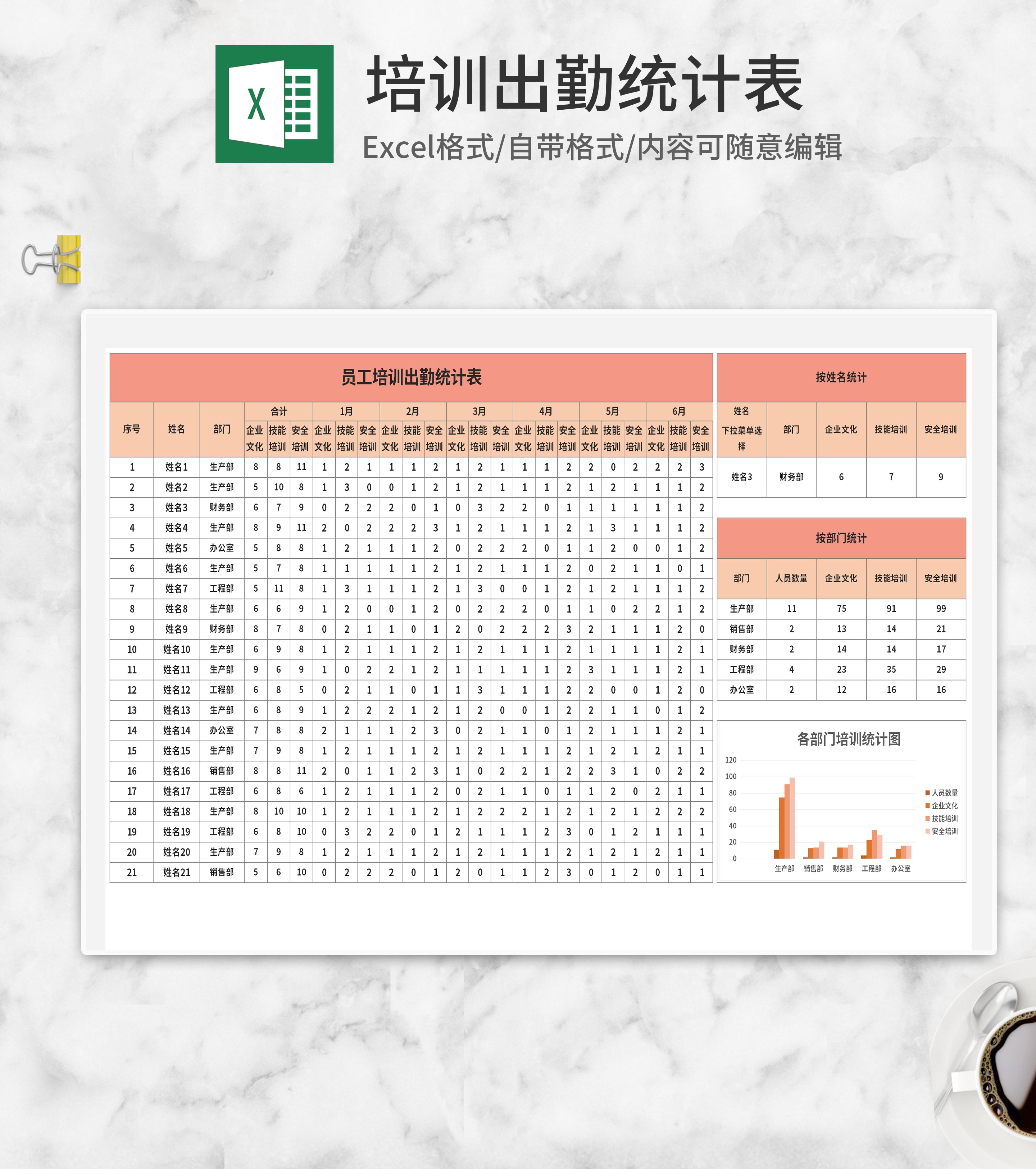 员工培训出勤统计表Excel模板