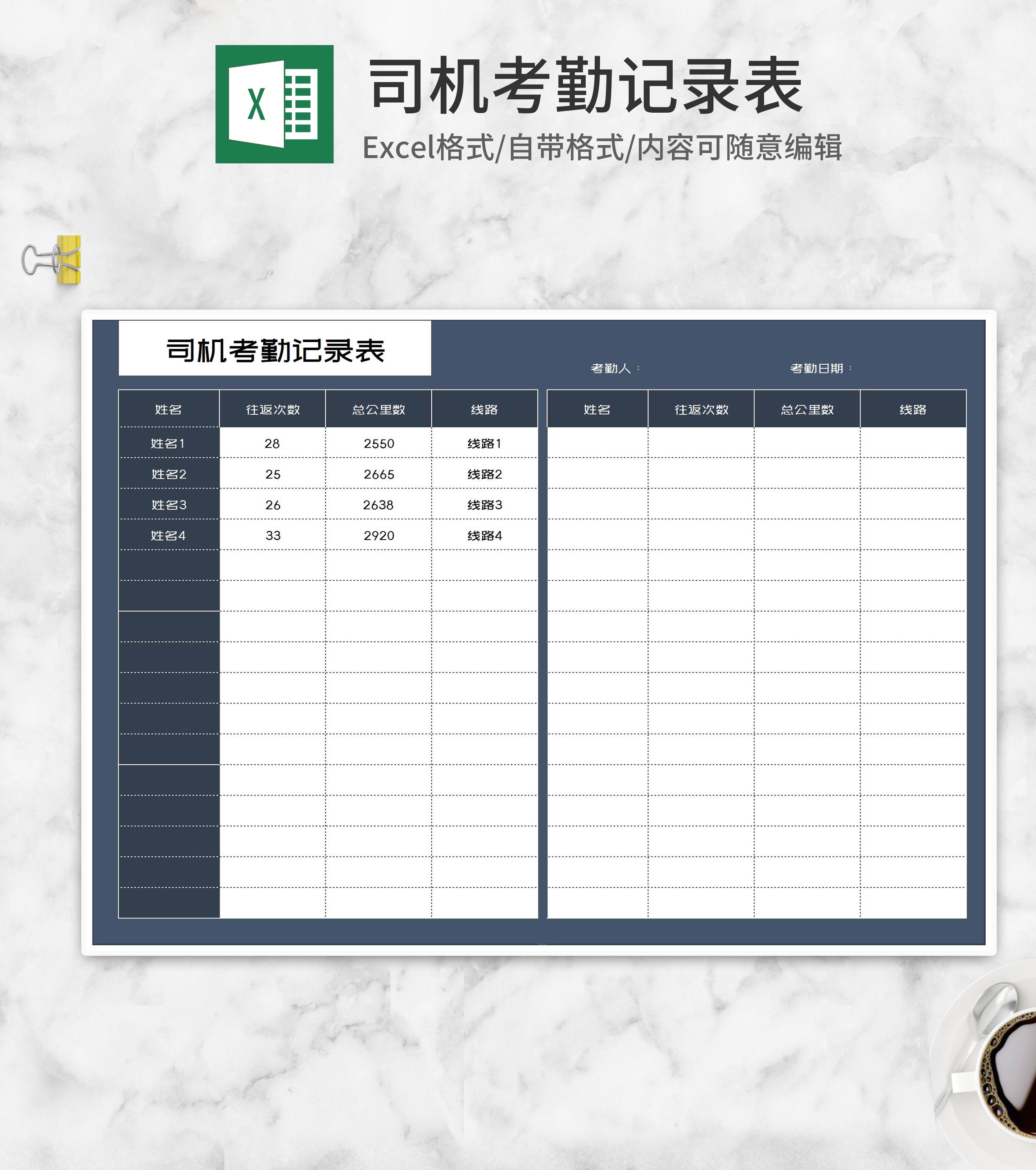 商务风司机考勤记录表Excel模板