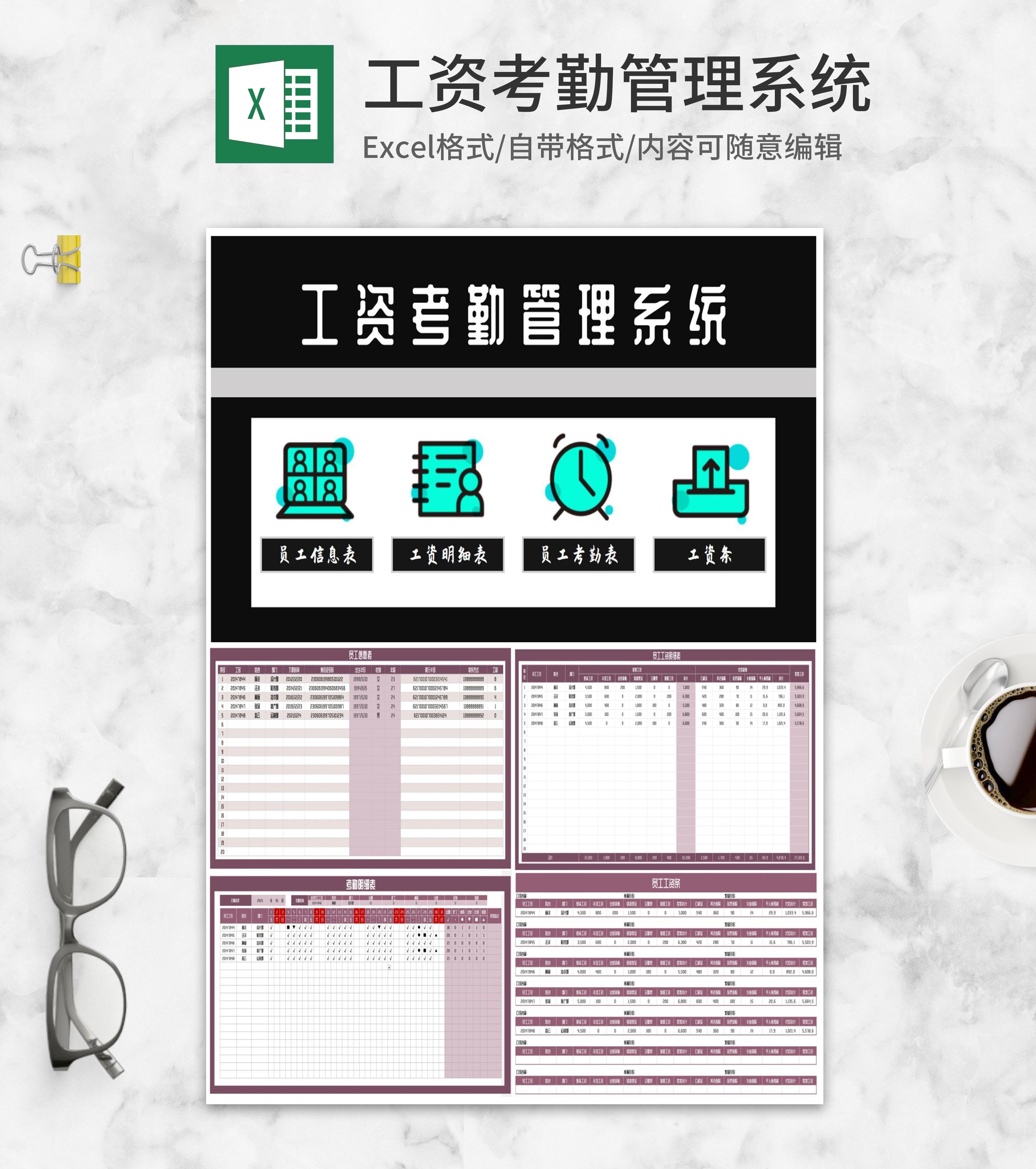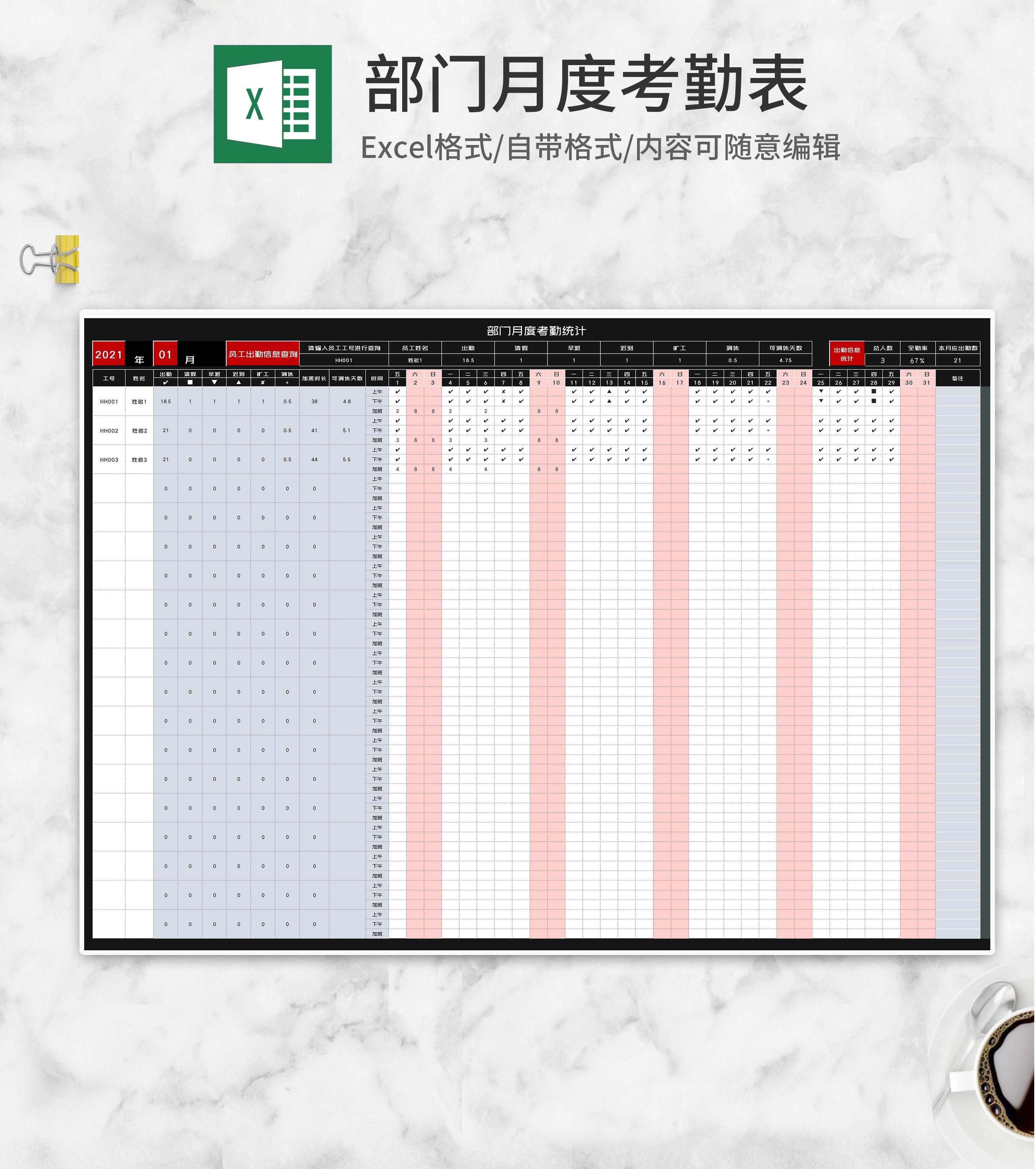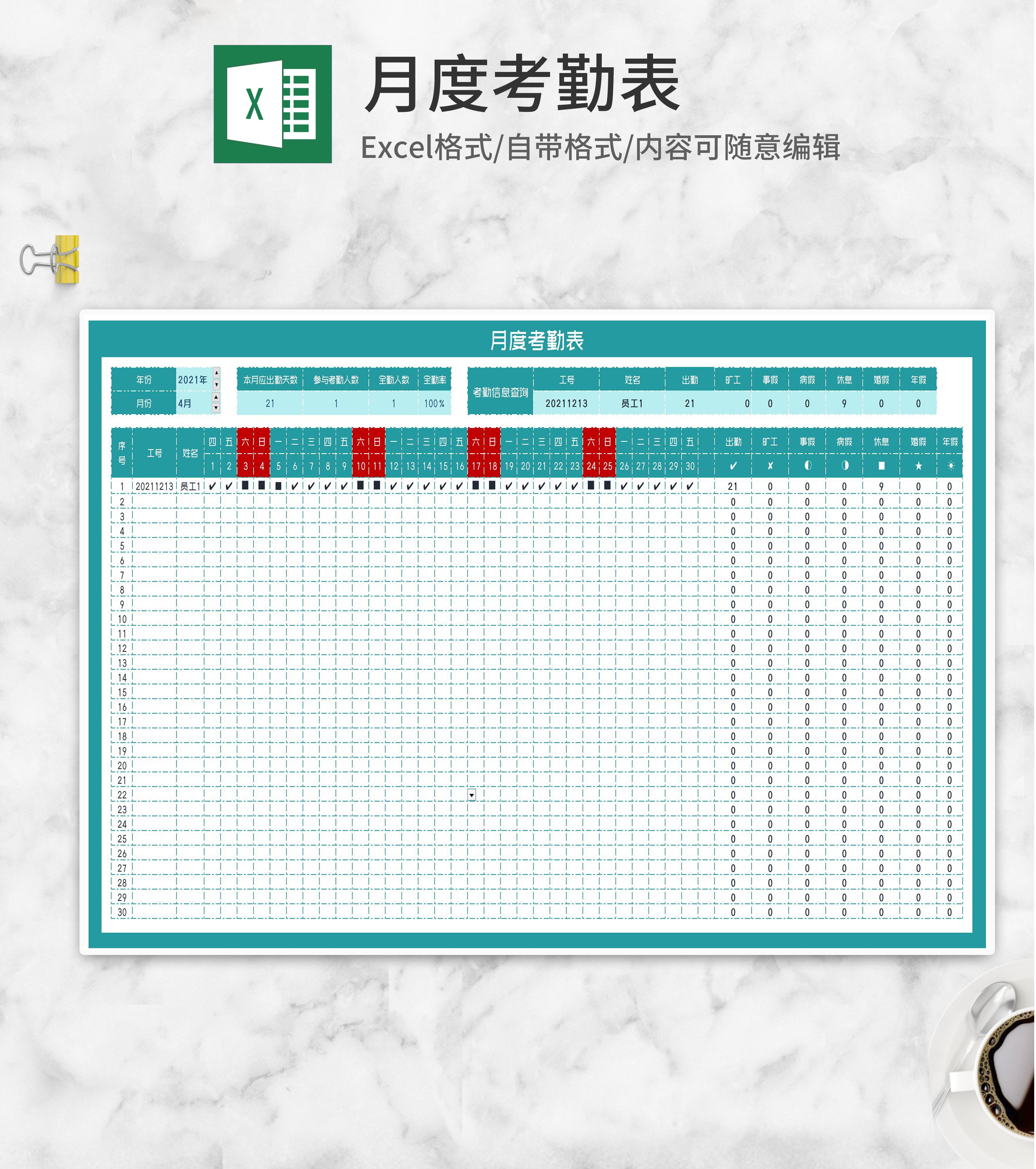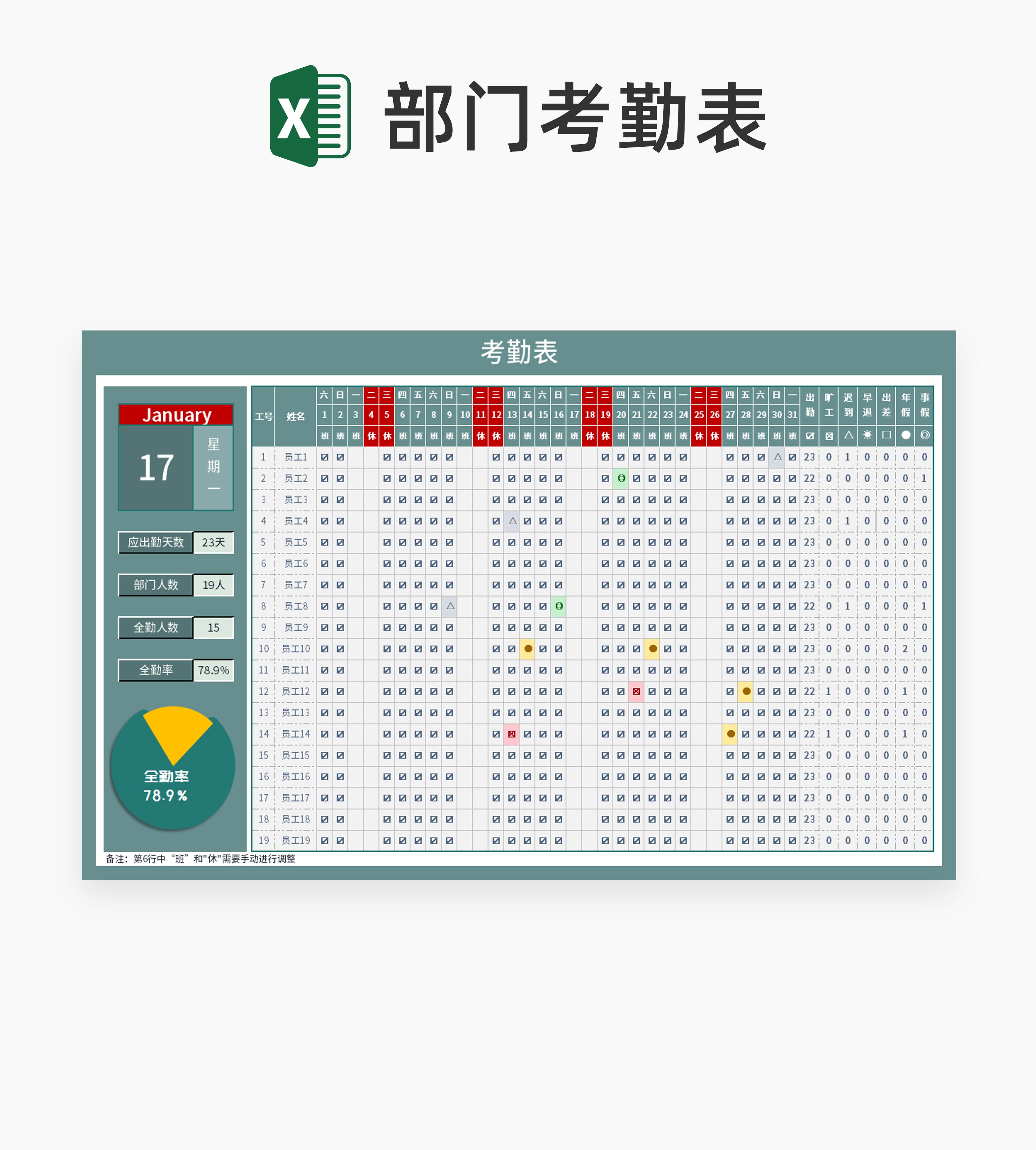 红色公司员工岗位考勤绩效管理系统Excel模板