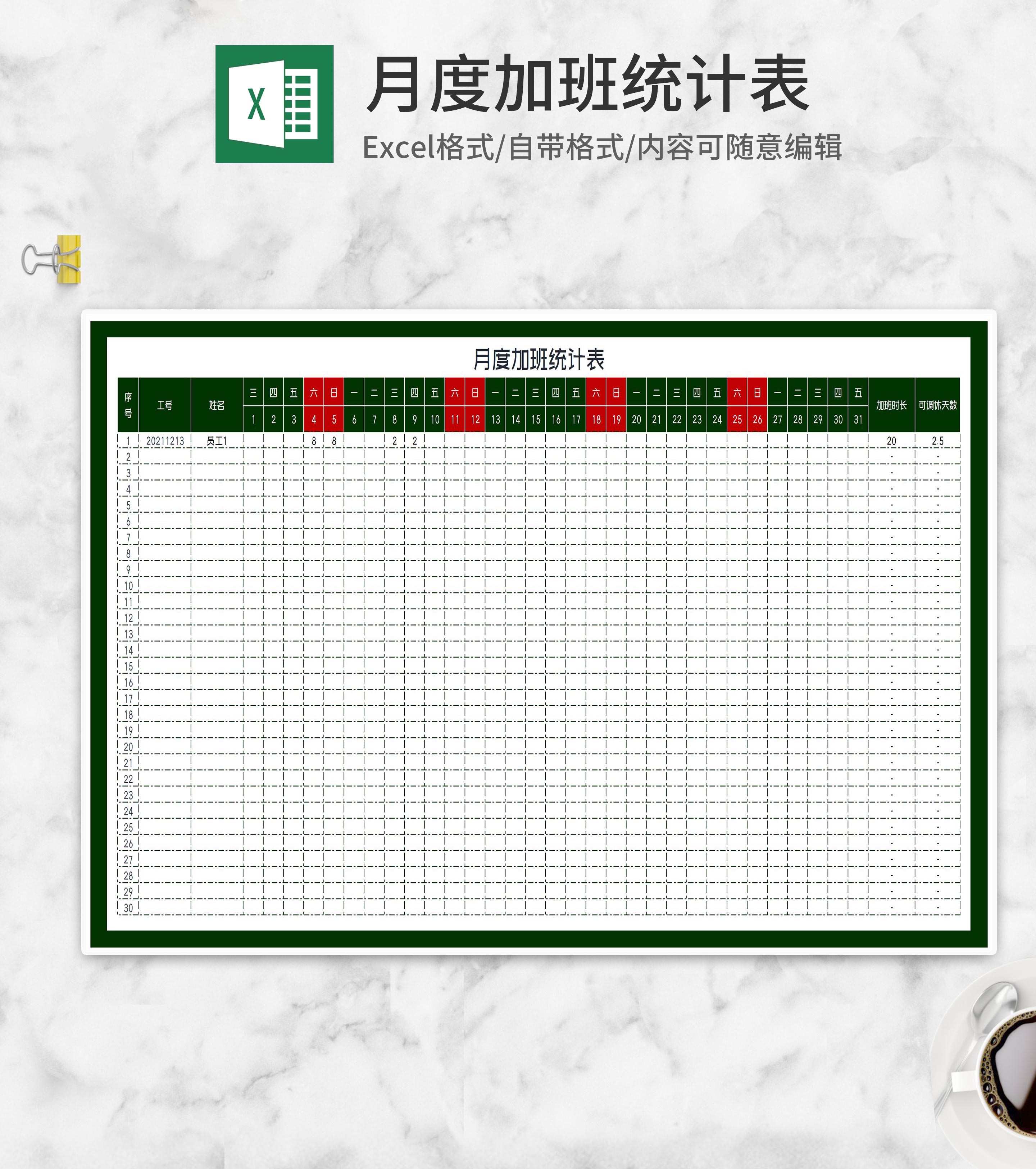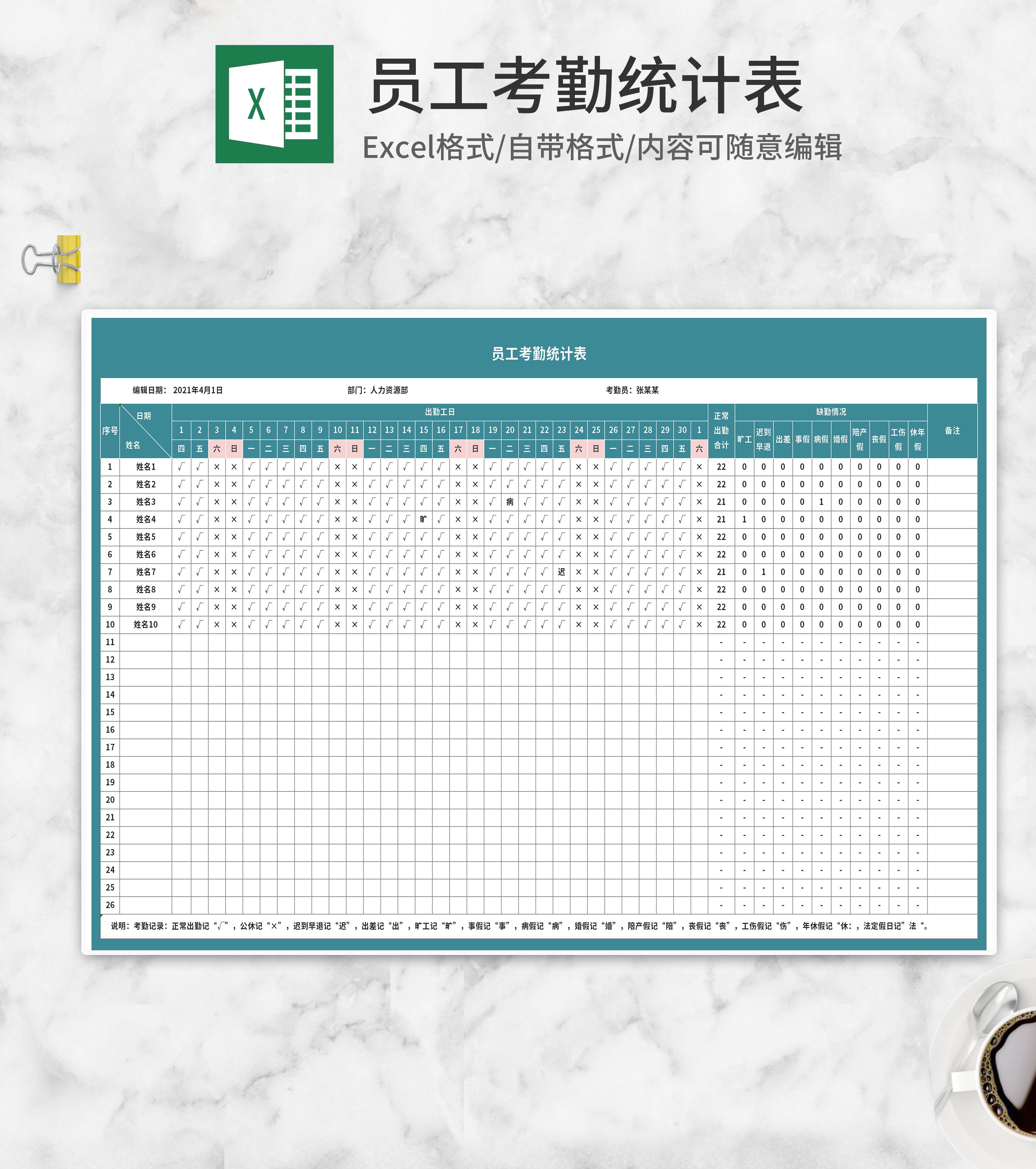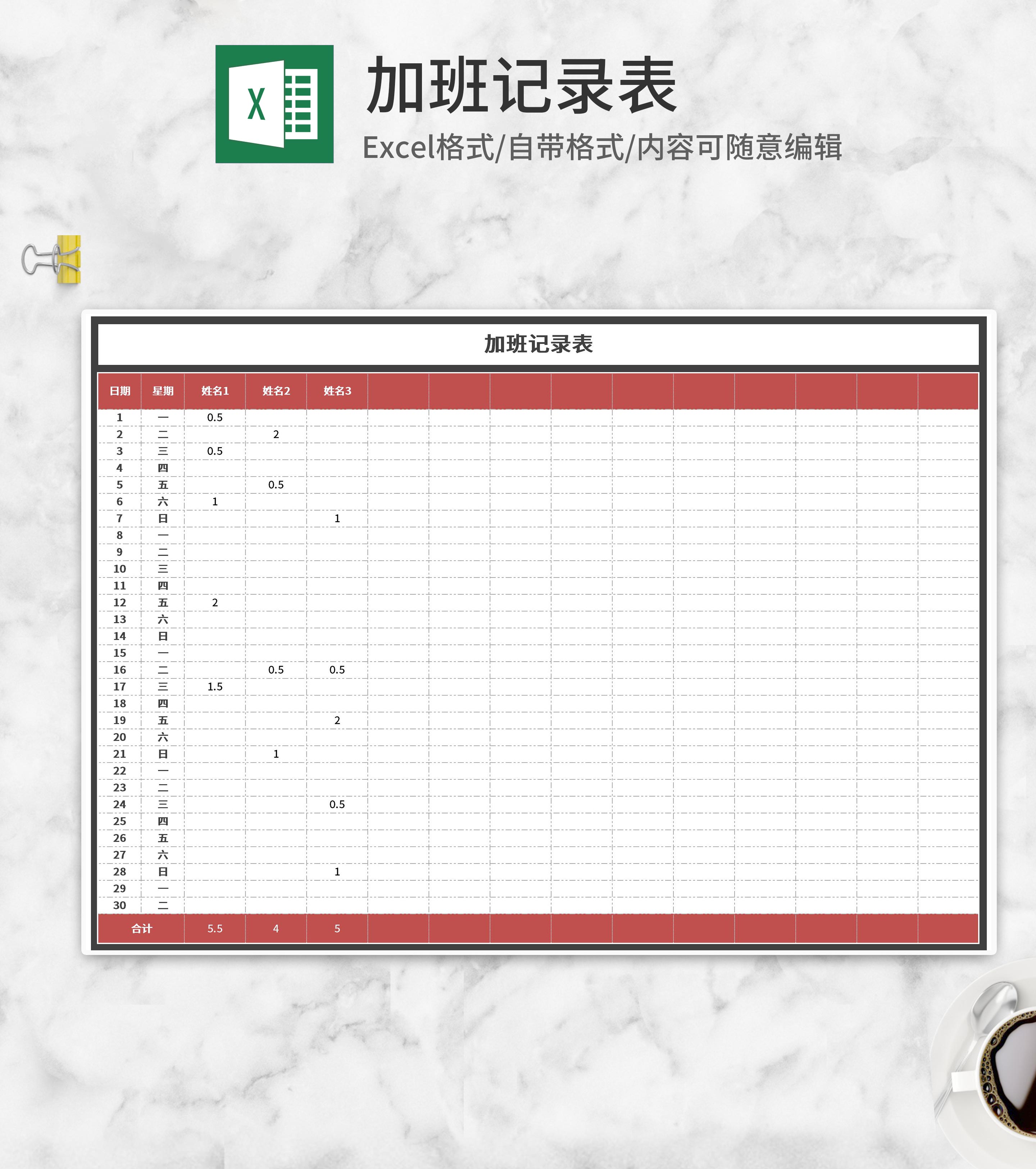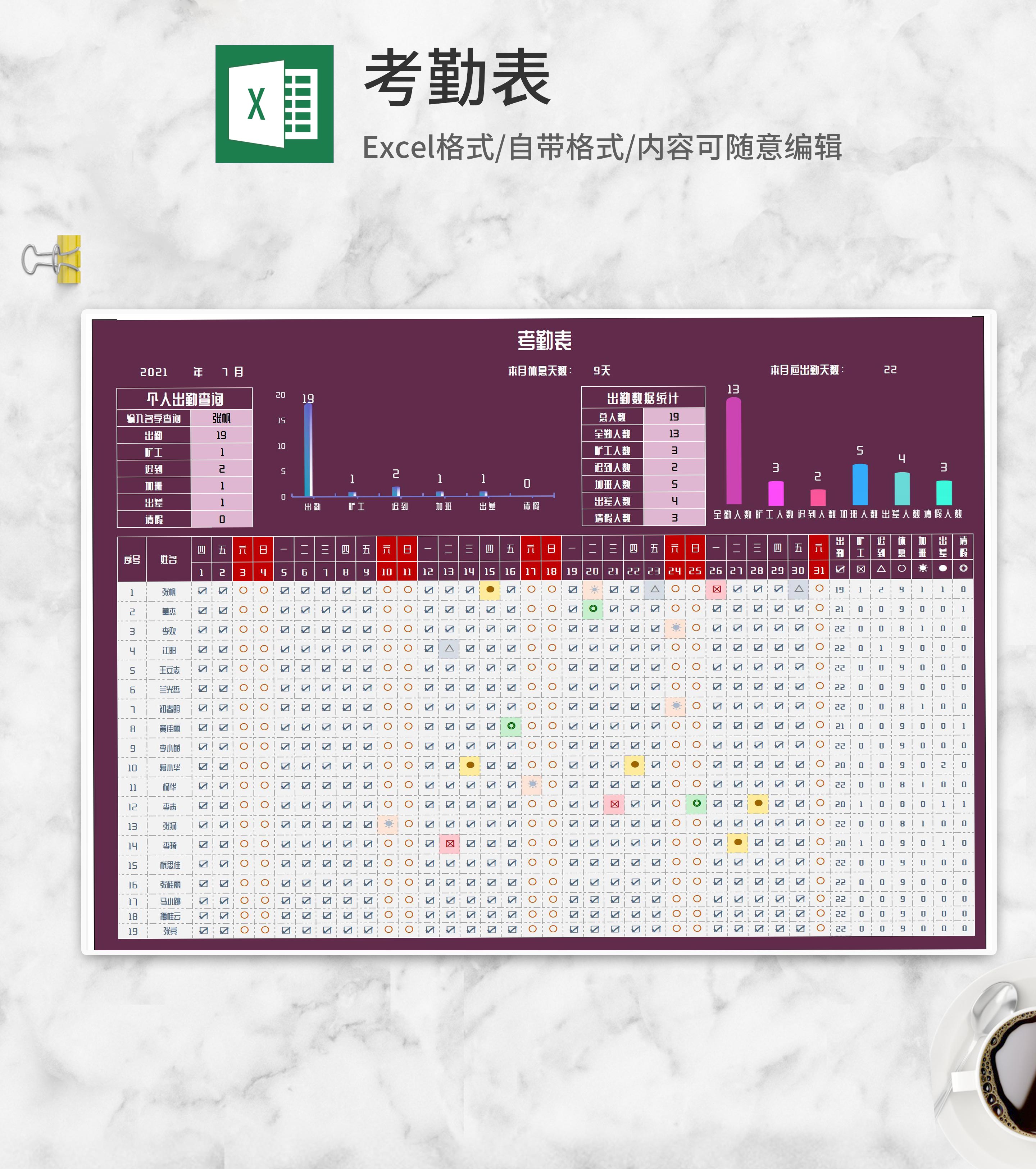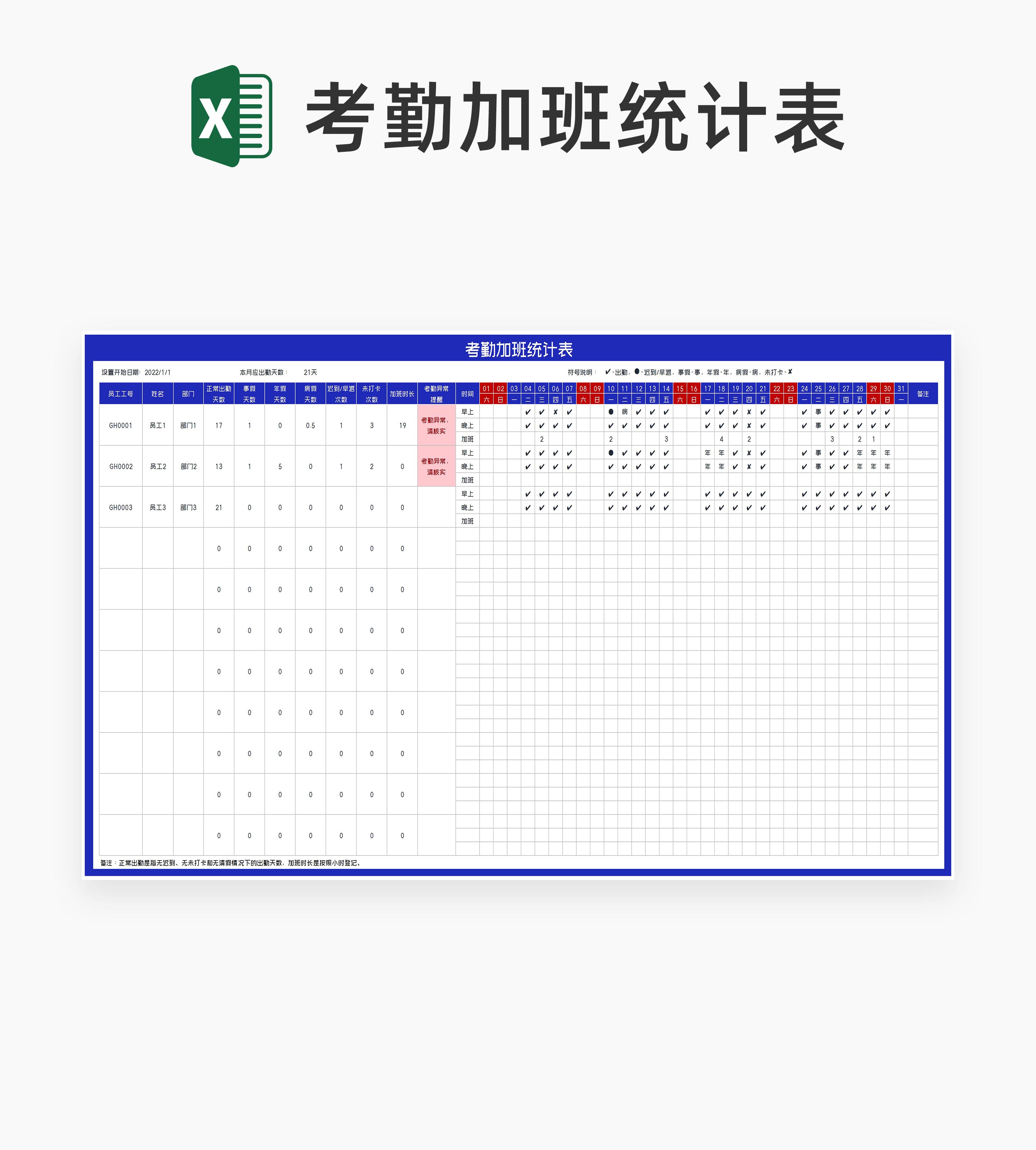 红色公司员工岗位考勤绩效管理系统Excel模板