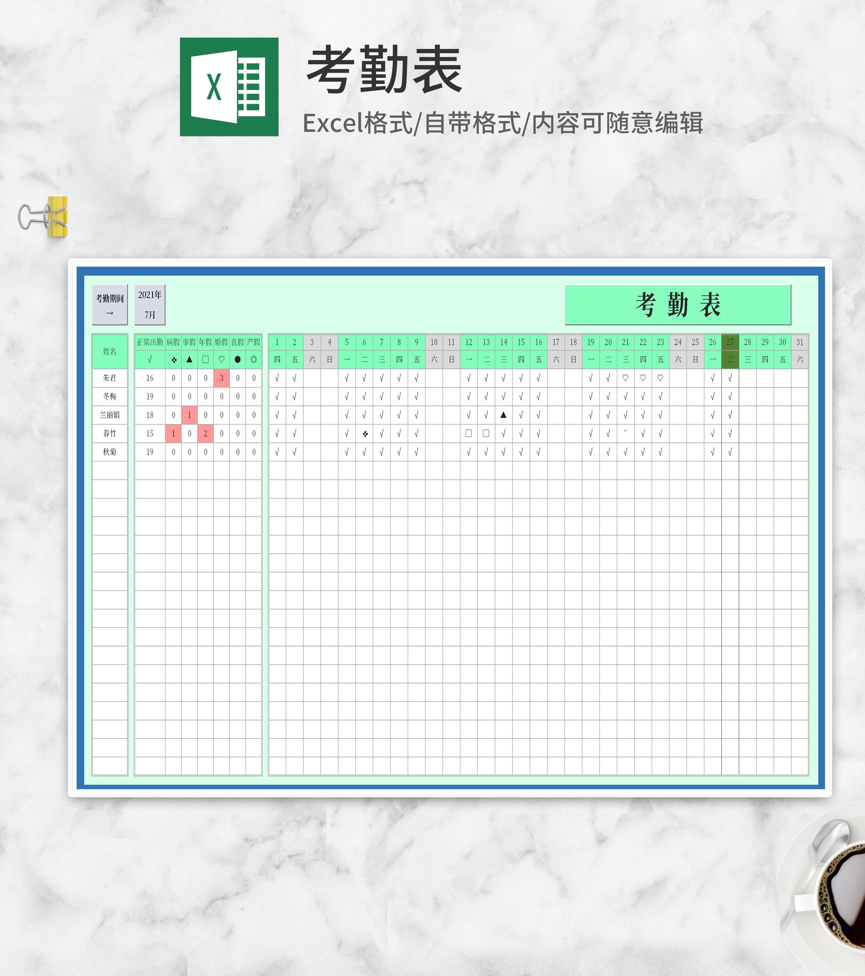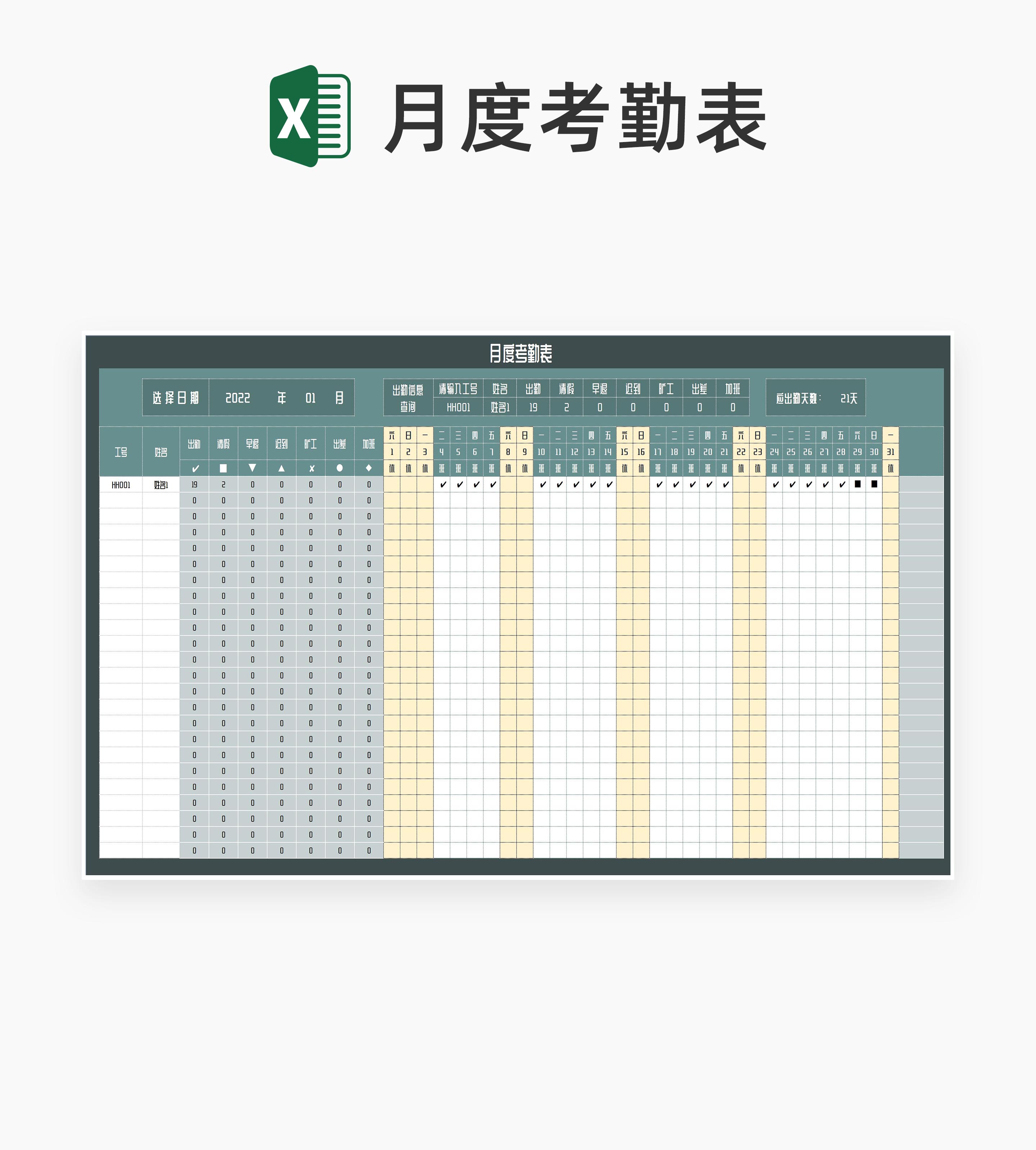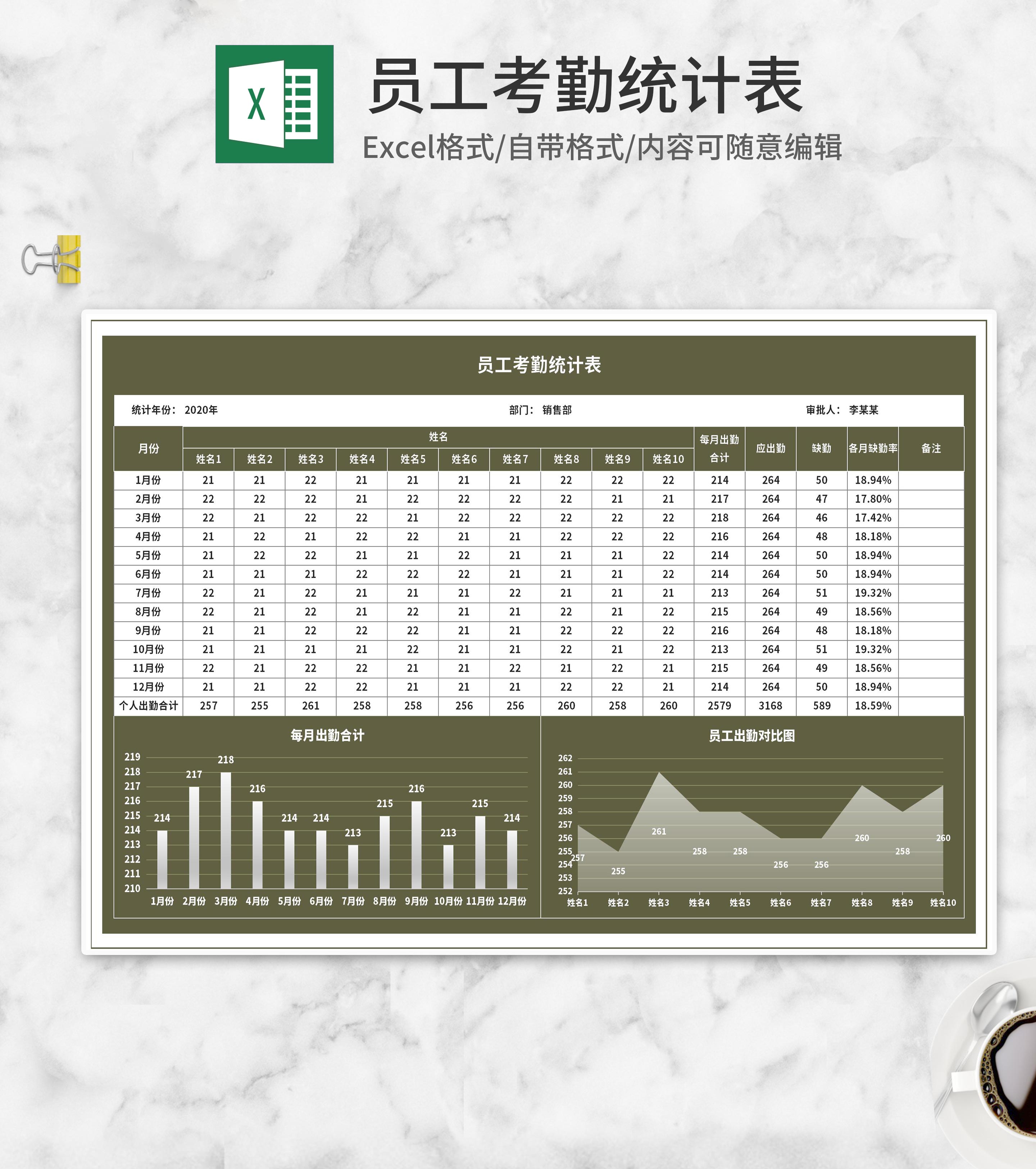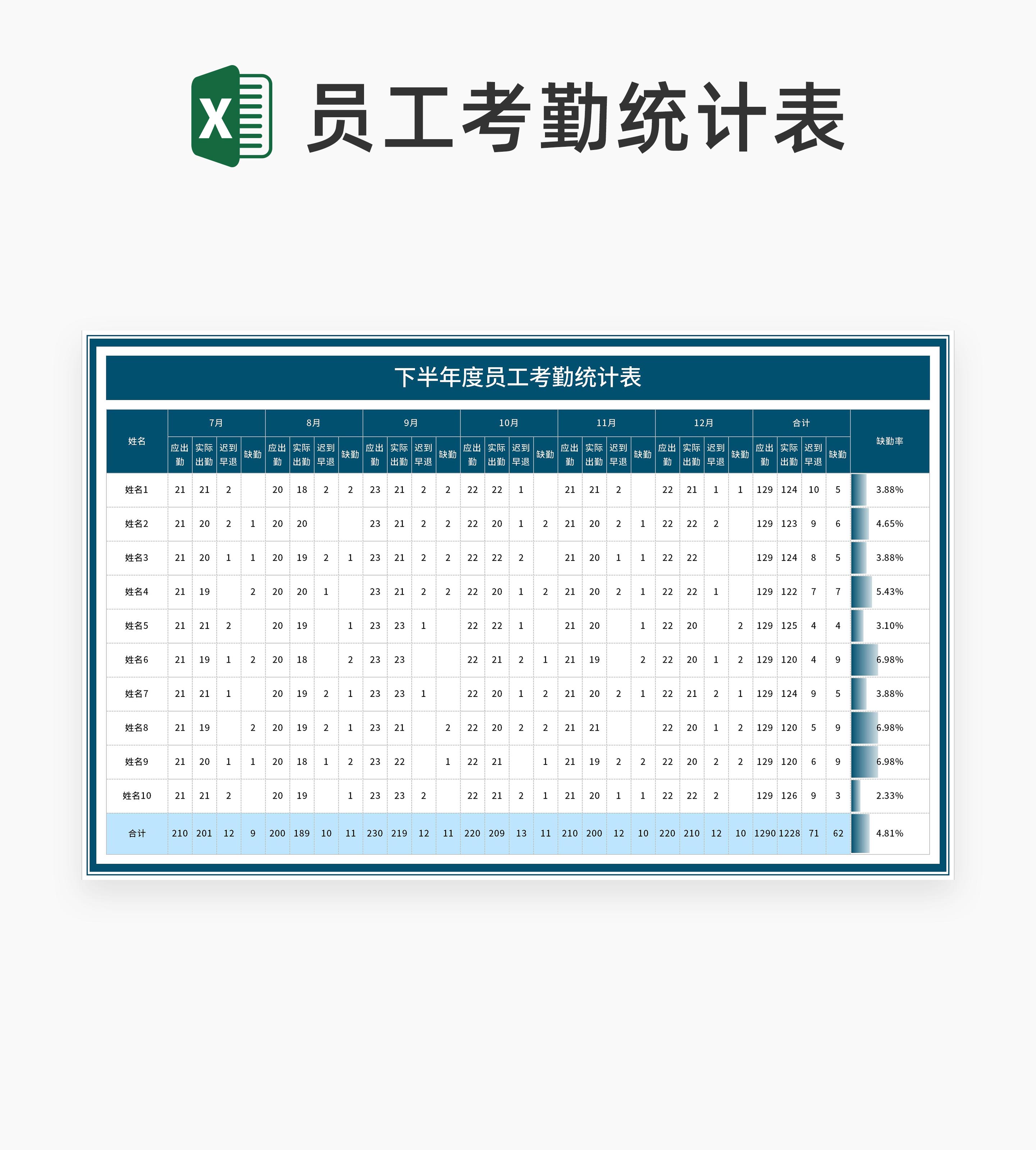 商务风深蓝下半年度员工考勤统计表Excel模板