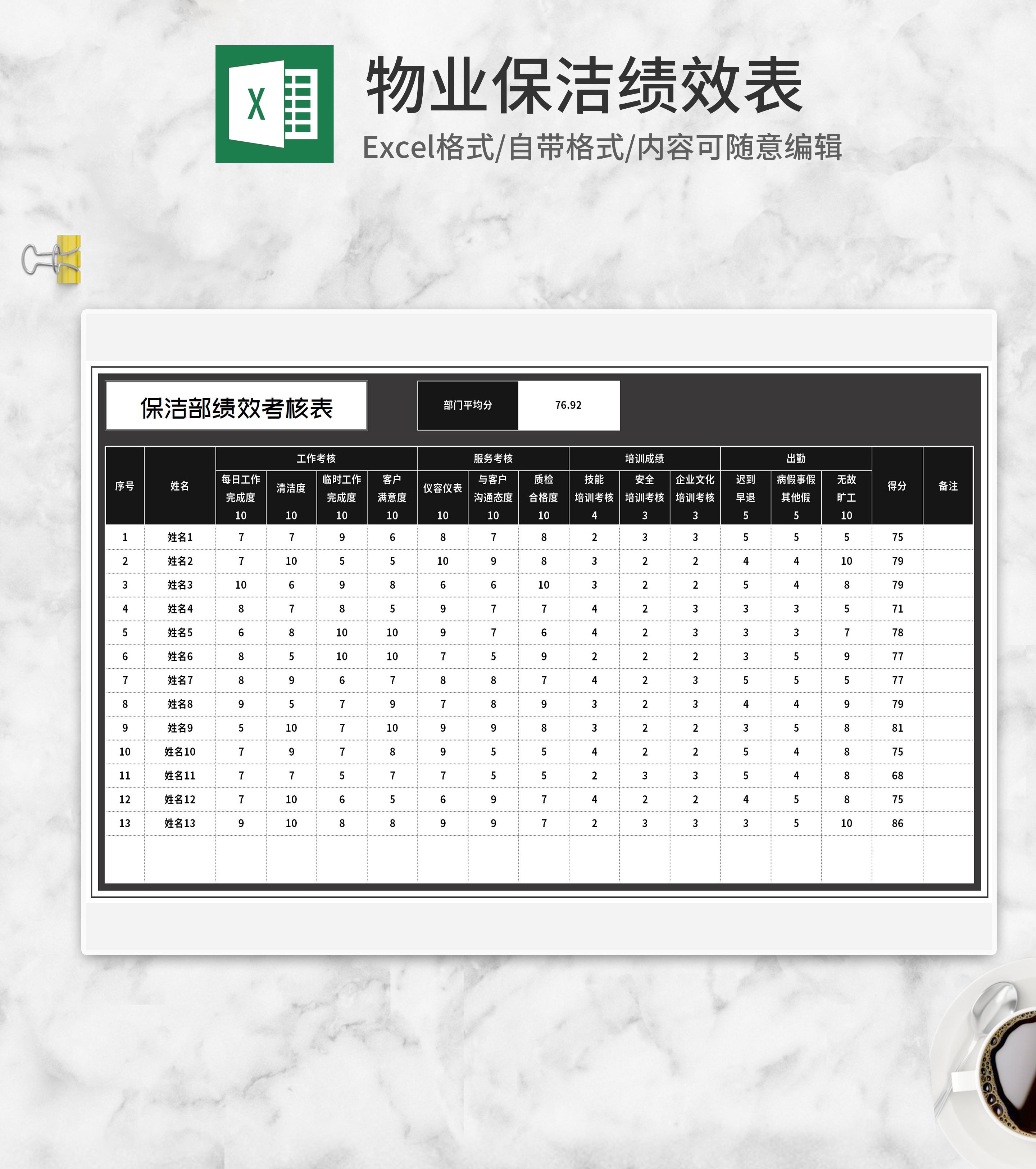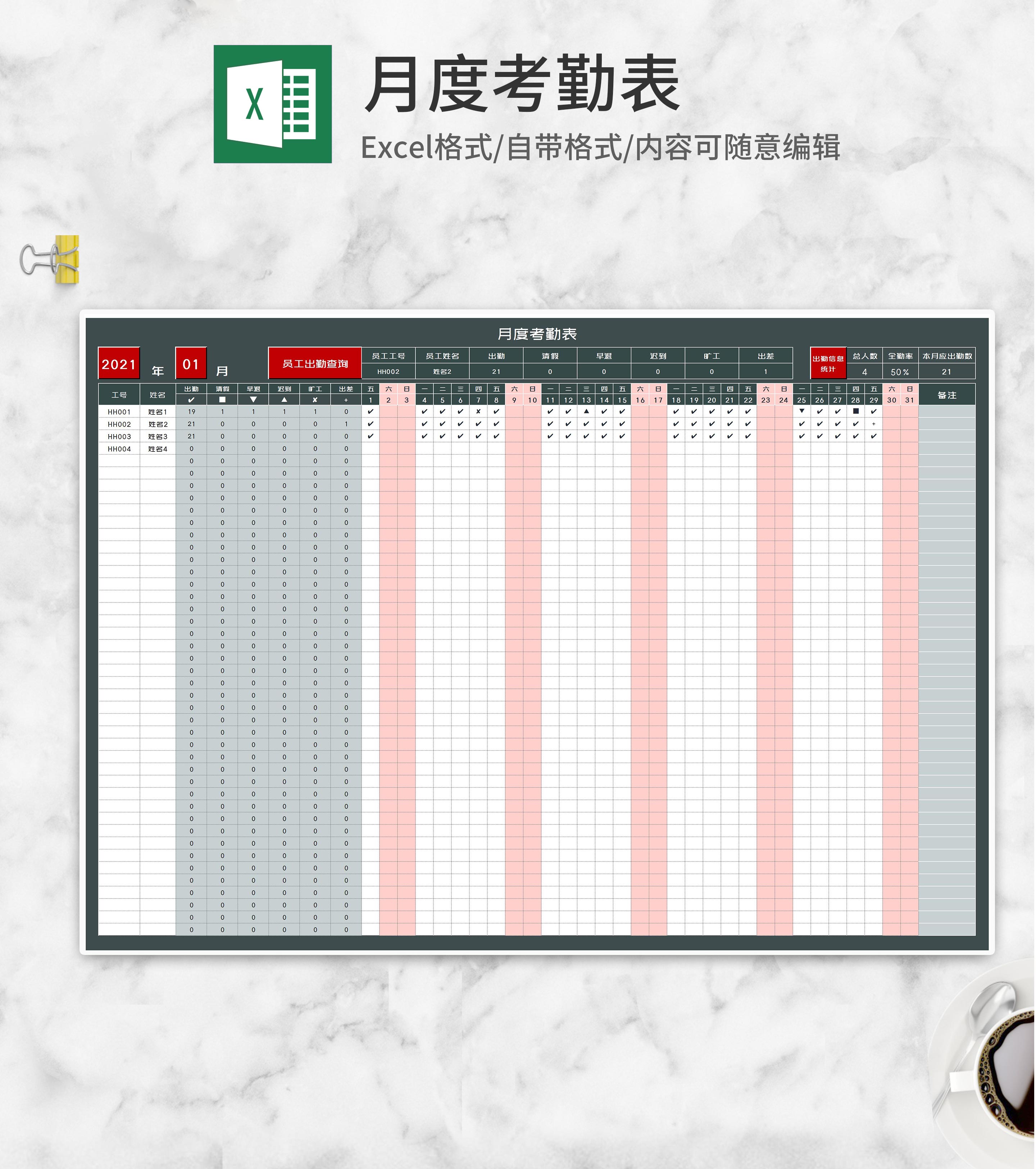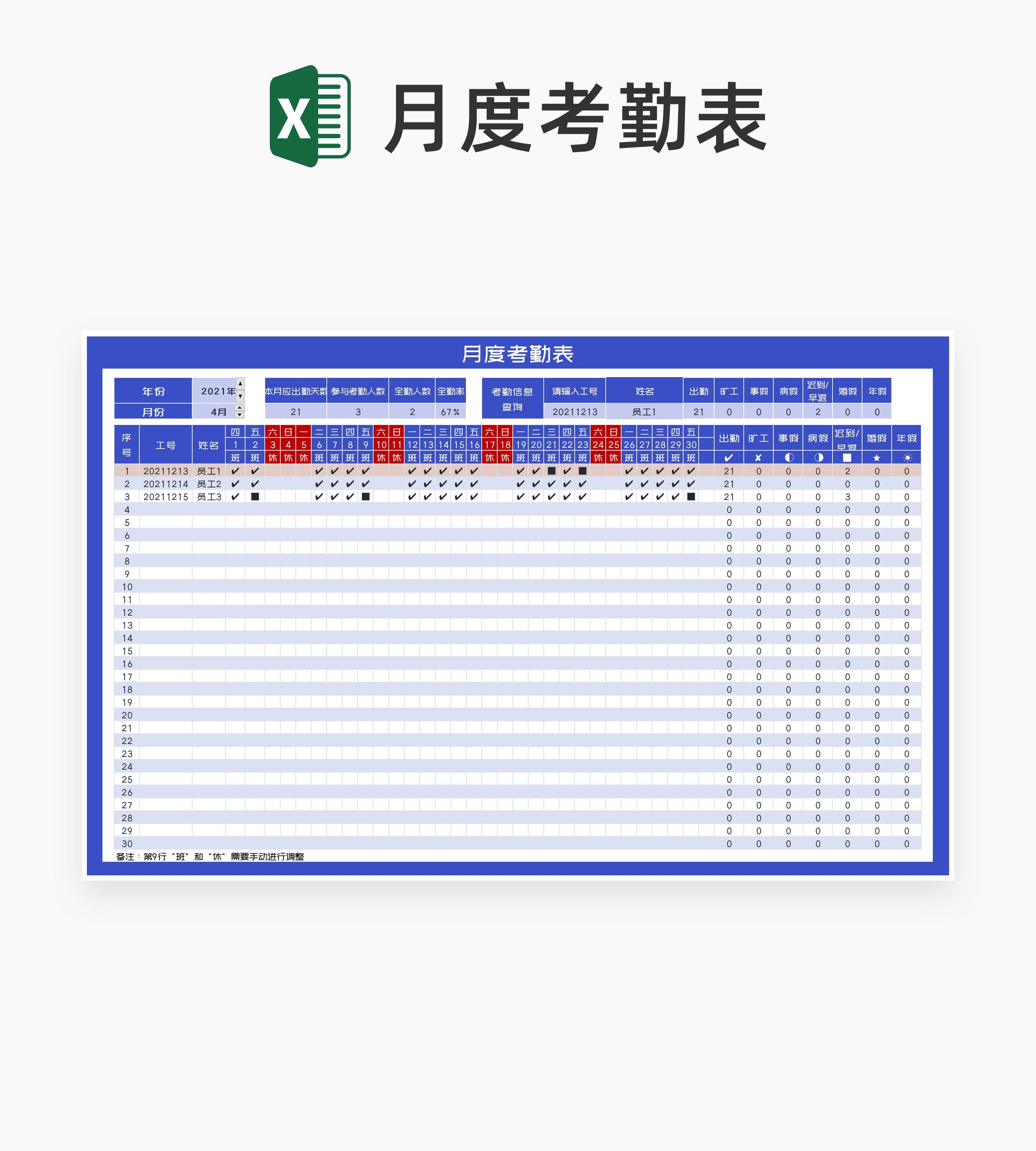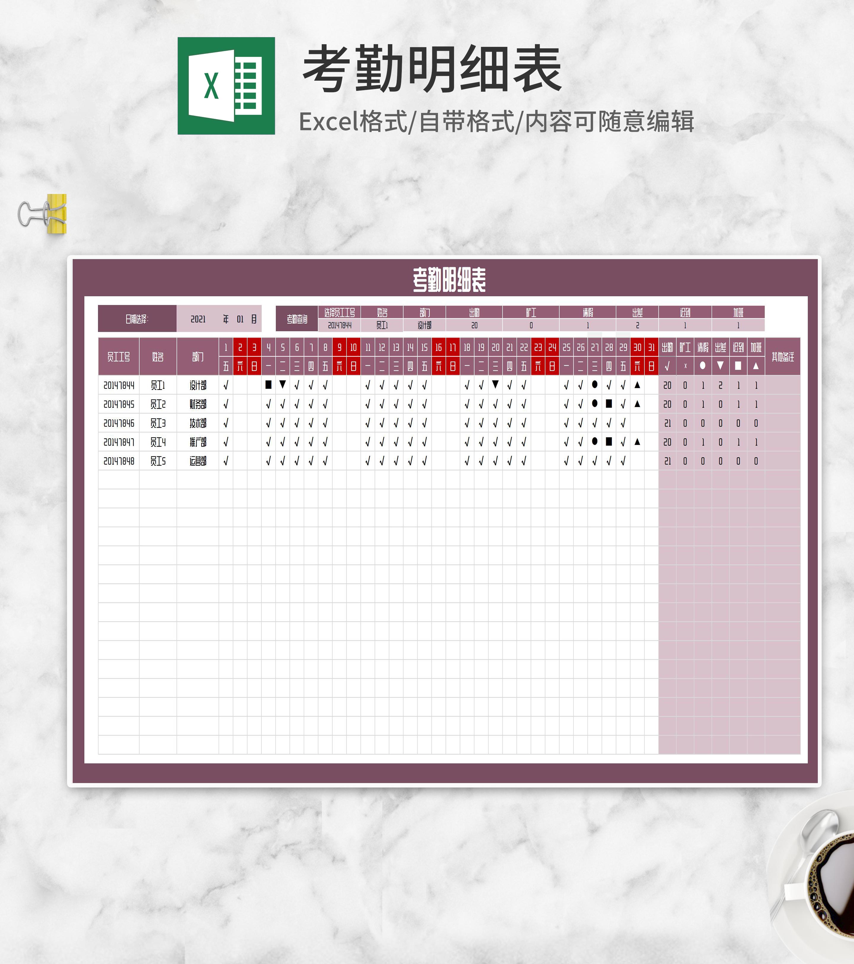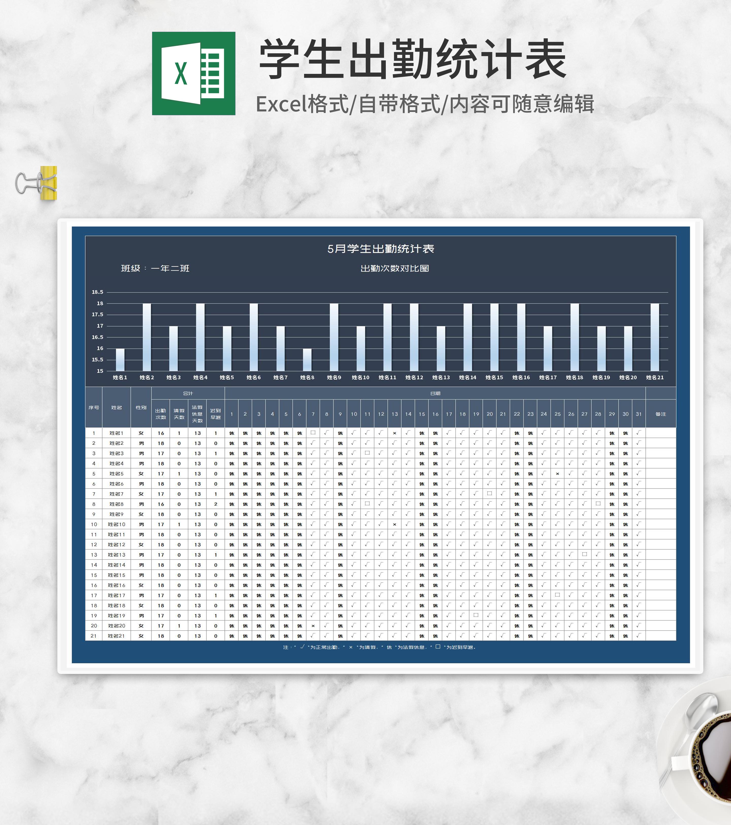 商务风深蓝下半年度员工考勤统计表Excel模板