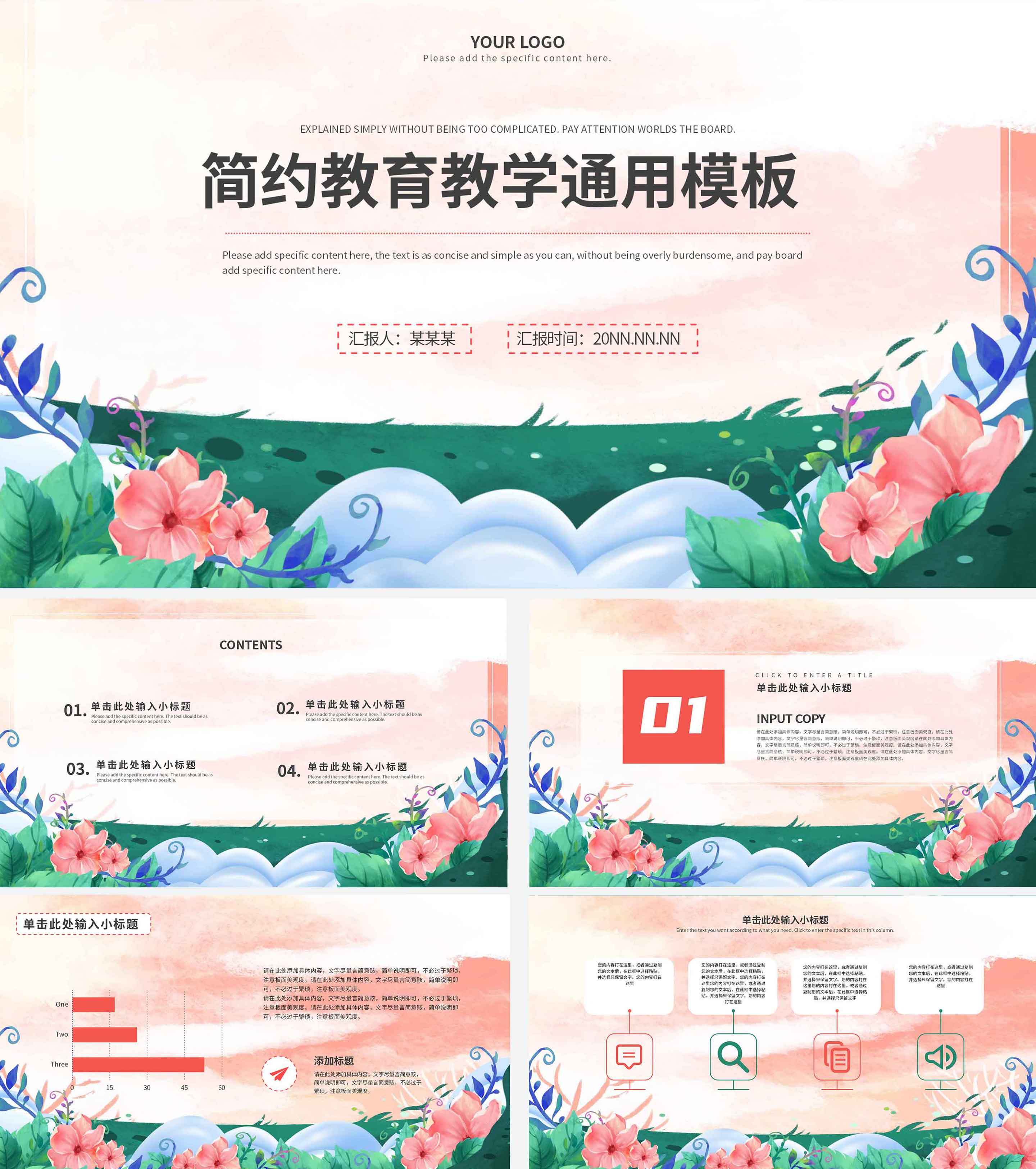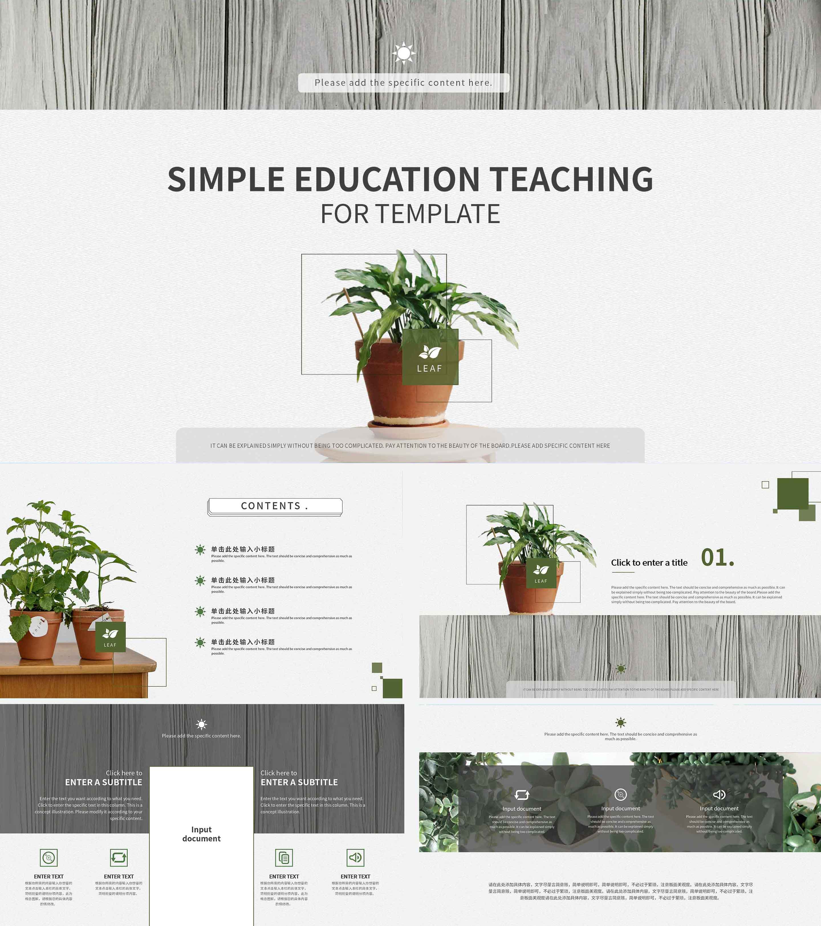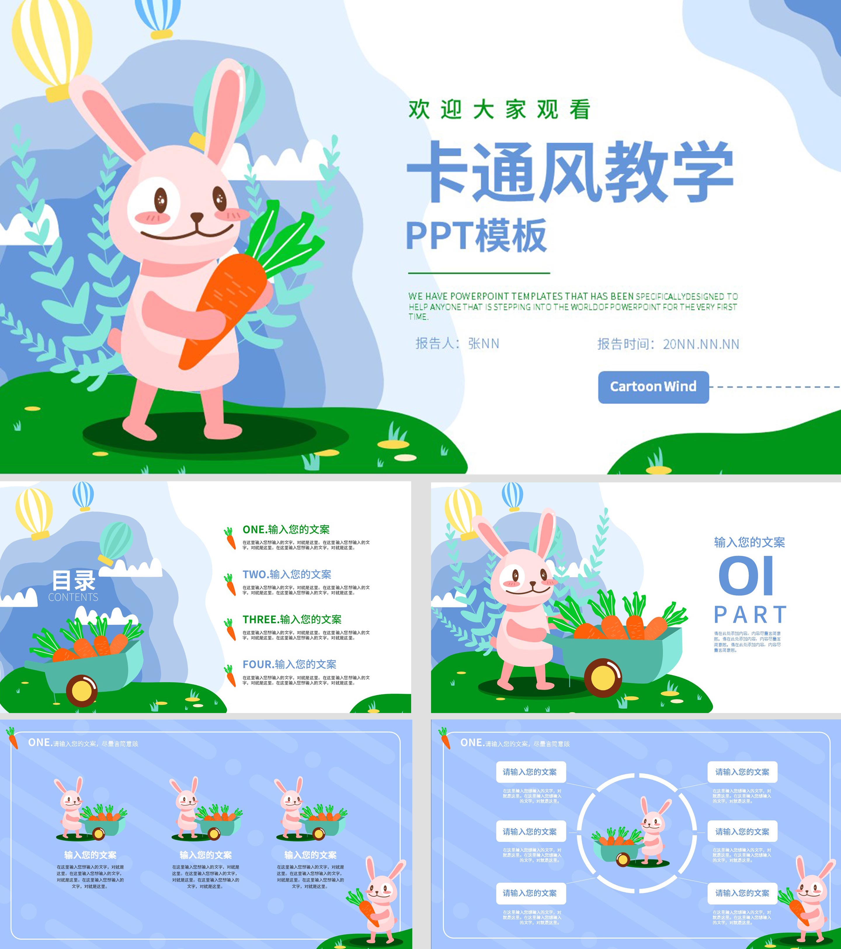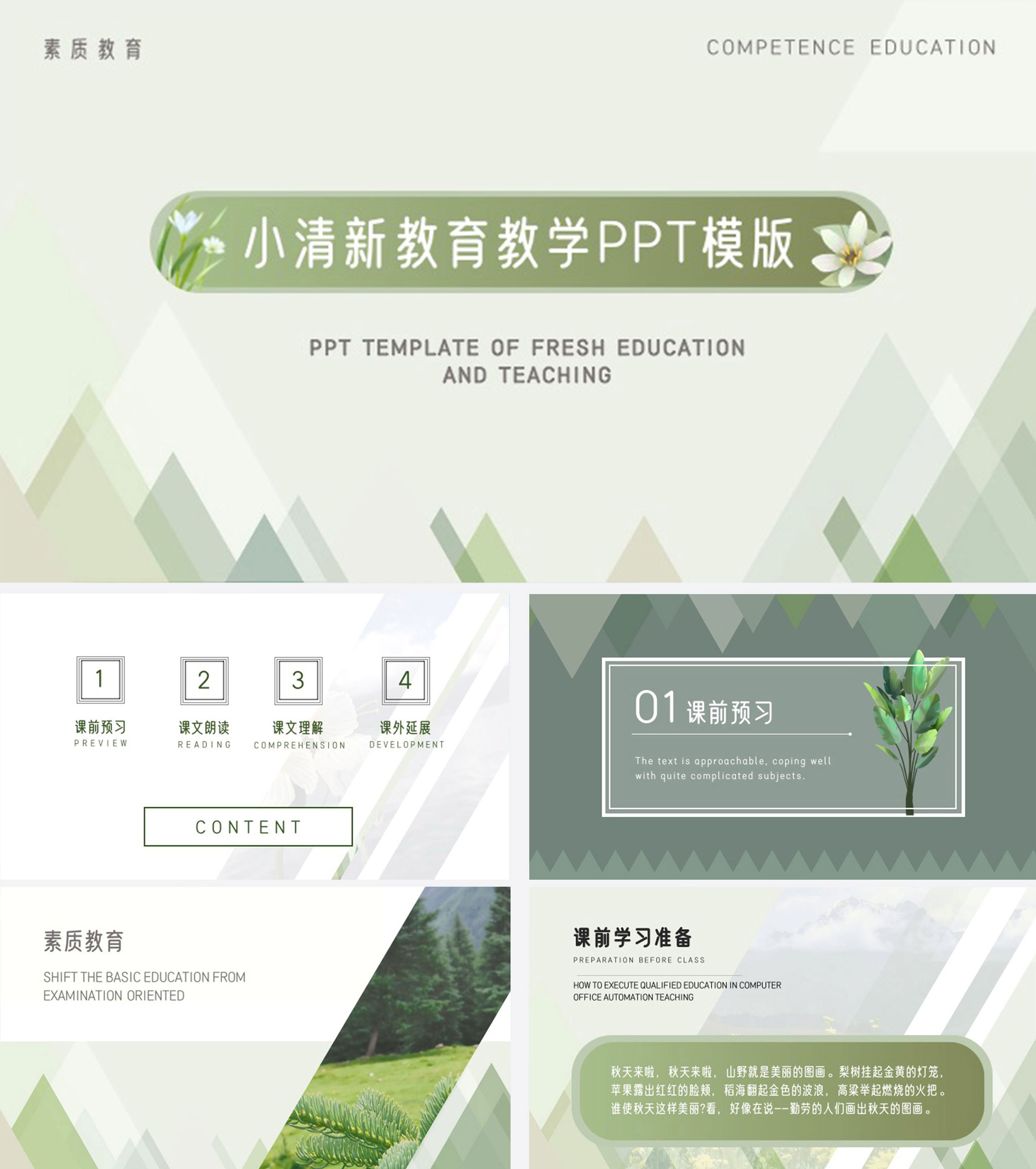 绿色文艺简约卡通小动物幼儿园PPT模板