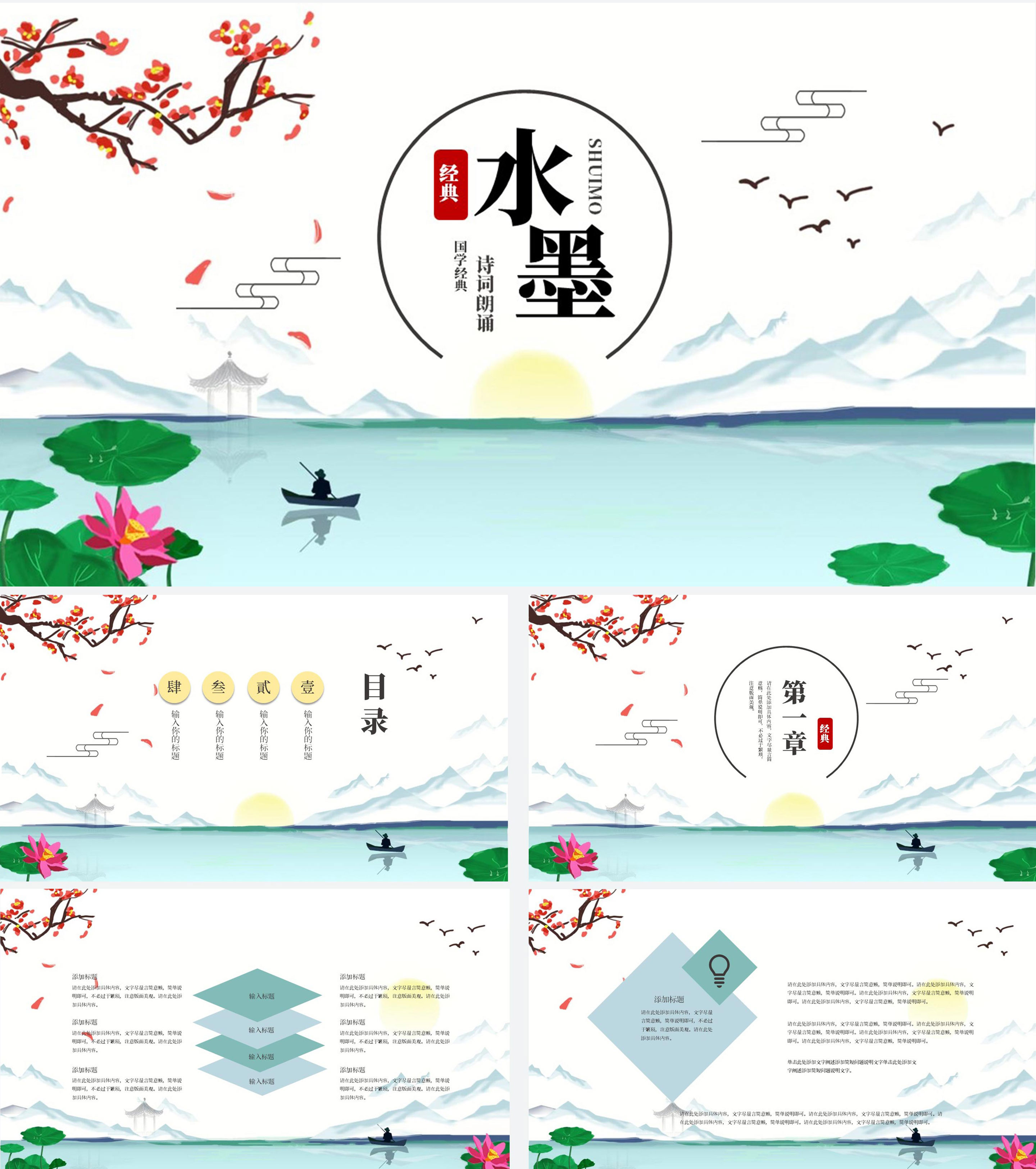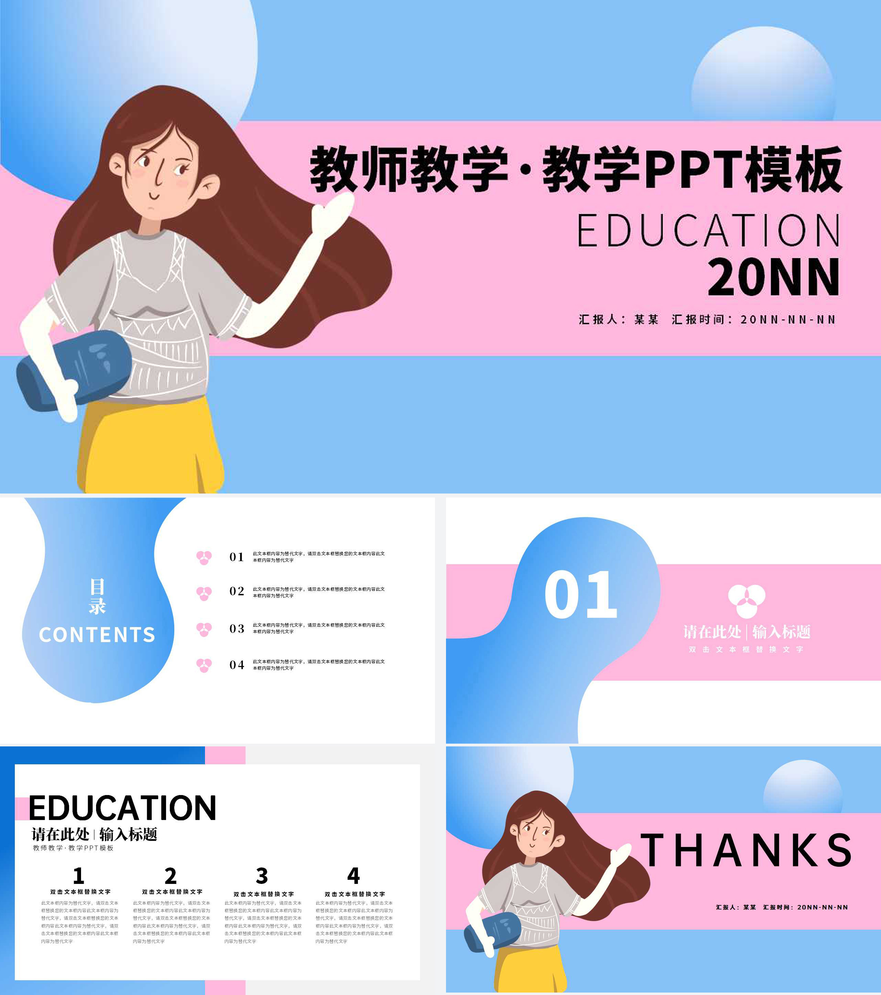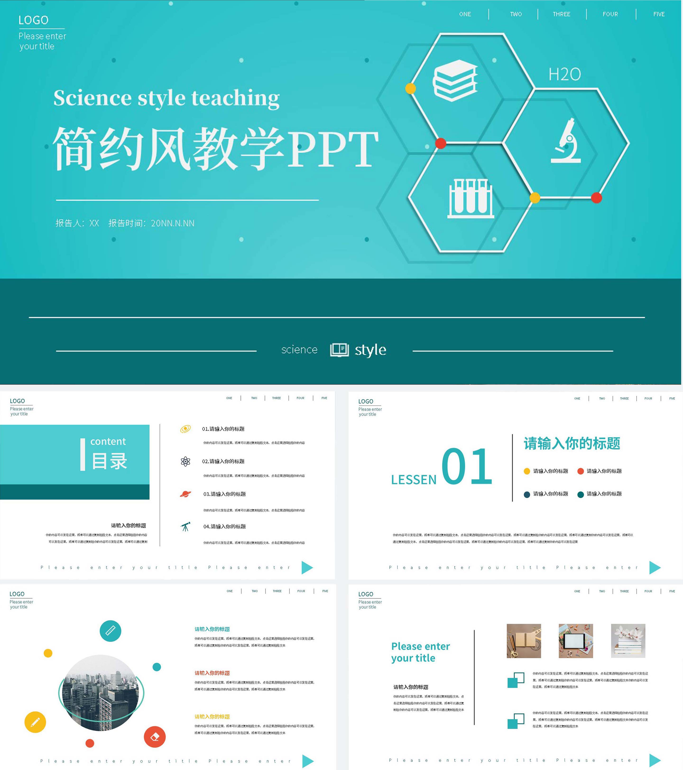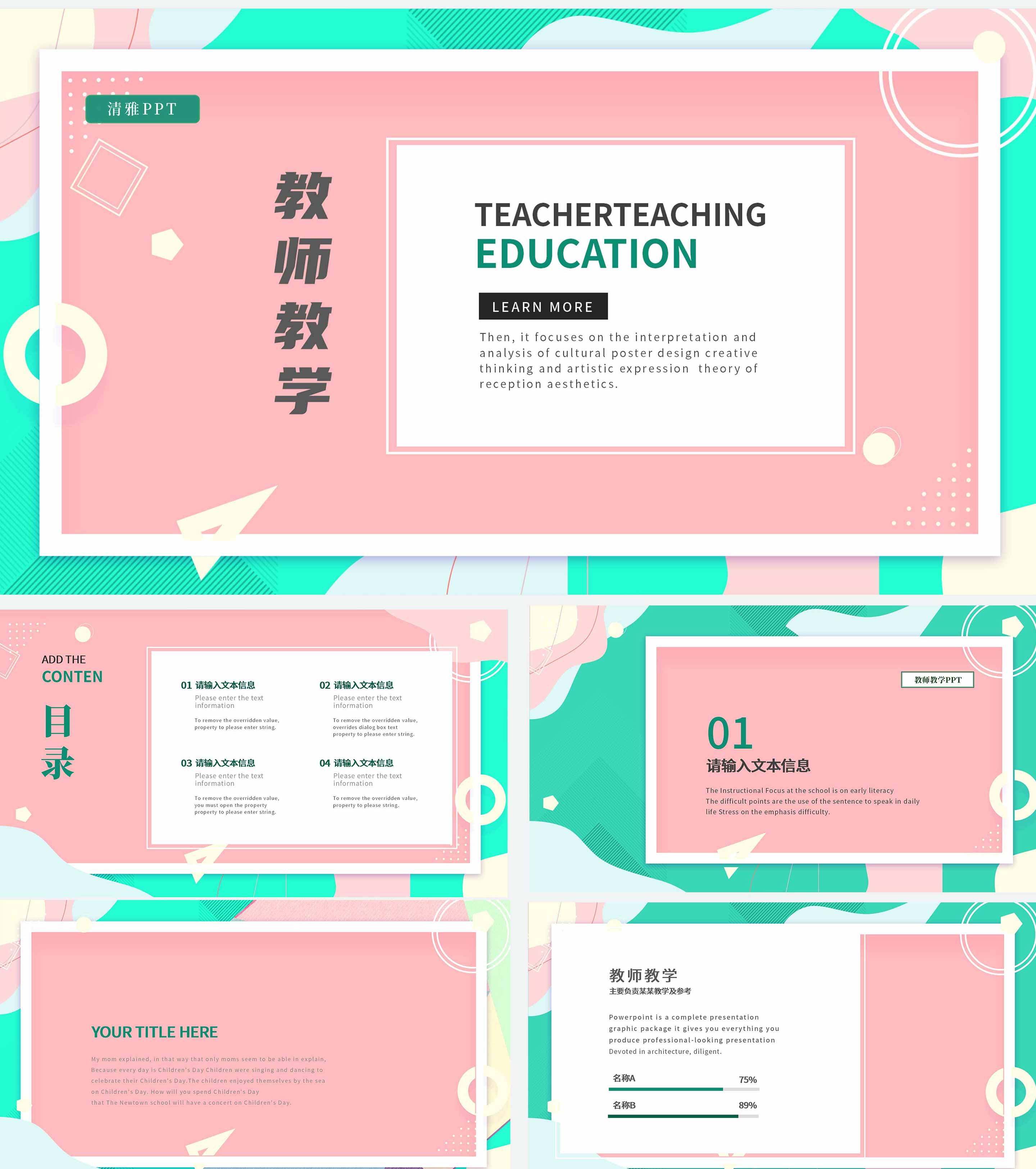 绿色文艺简约卡通小动物幼儿园PPT模板