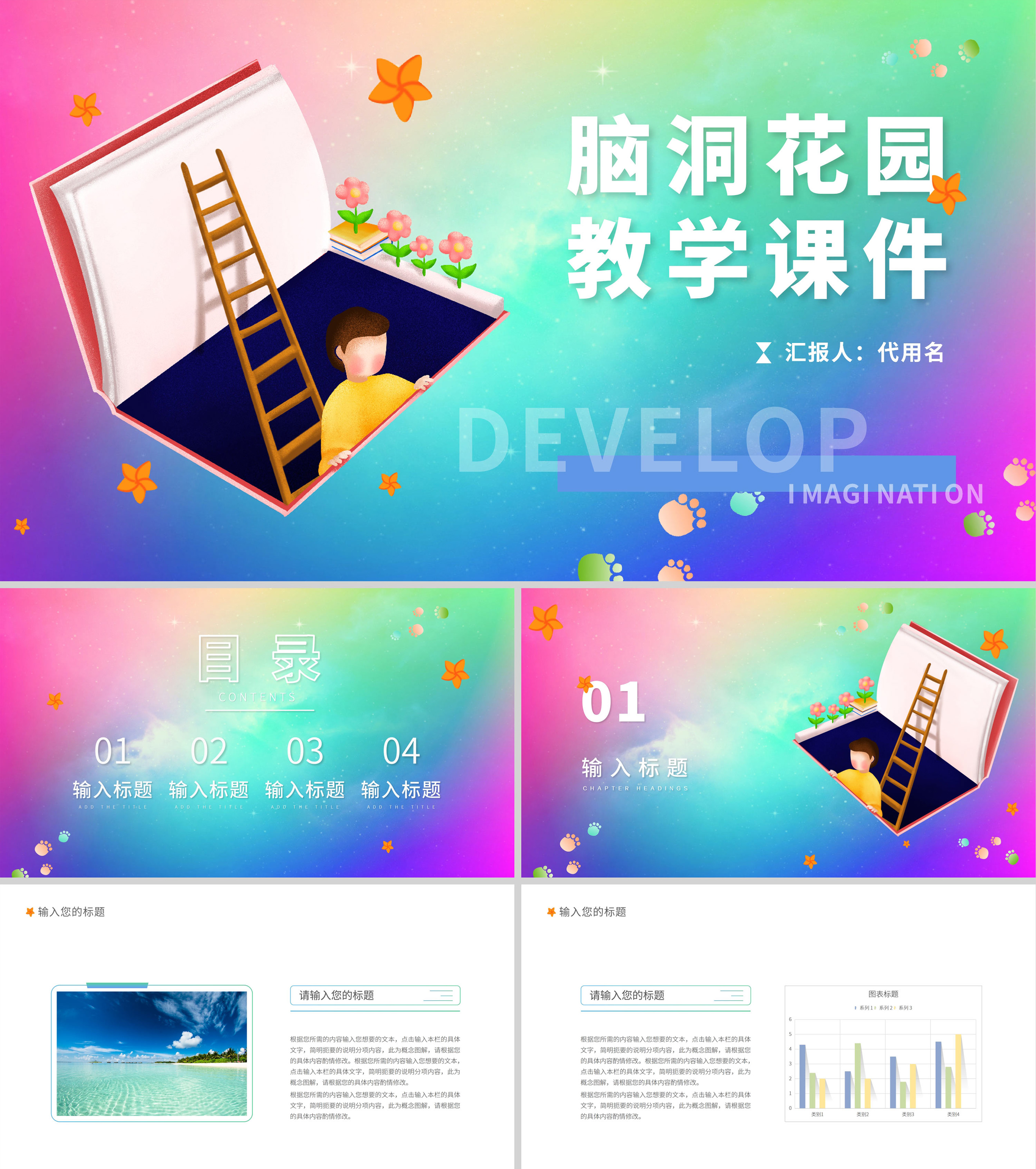 彩色渐变脑洞花园教学课件PPT模板