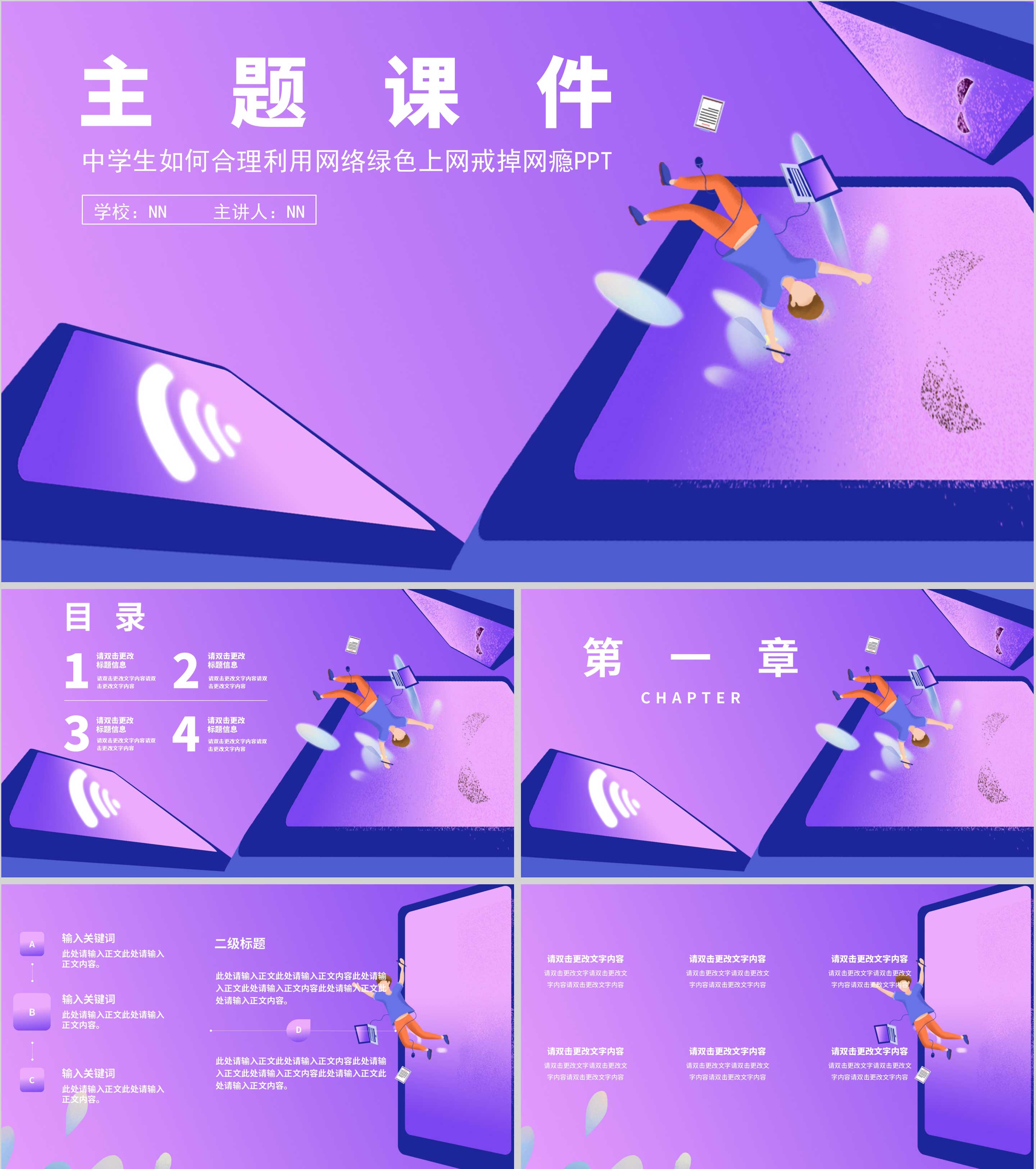 紫色渐变风主题课件PPT模板