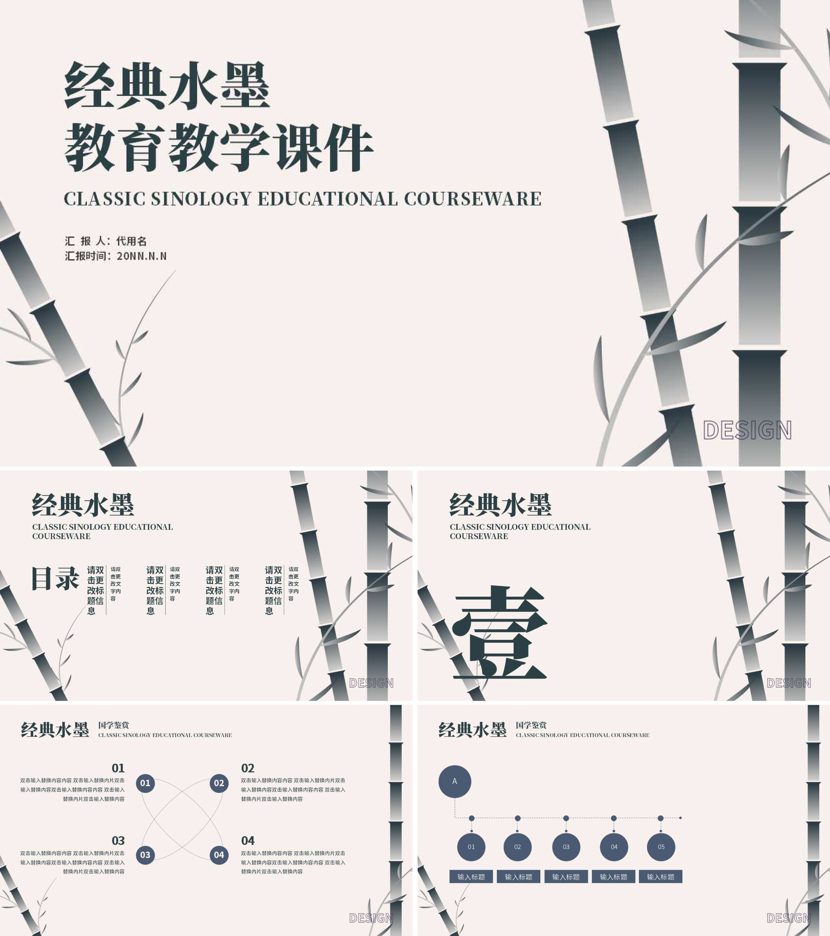 黄色中国风竹子教学课件PPT模板