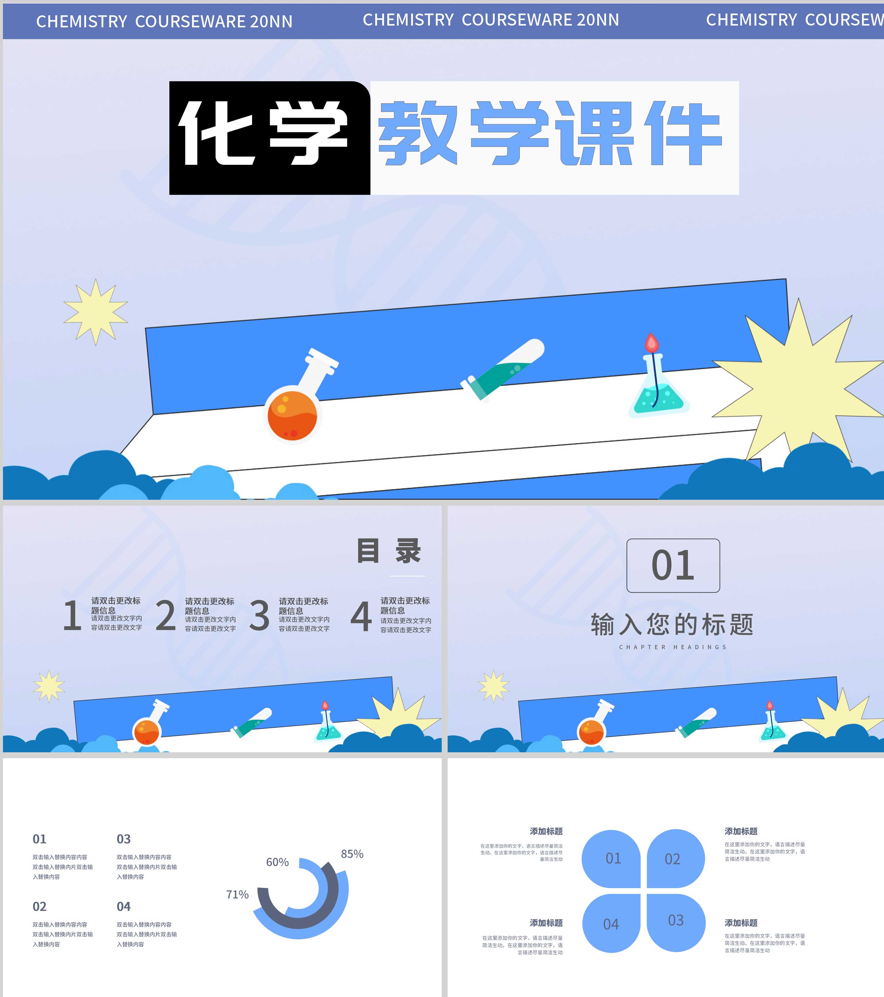 蓝色简约风化学教学课件PPT模板