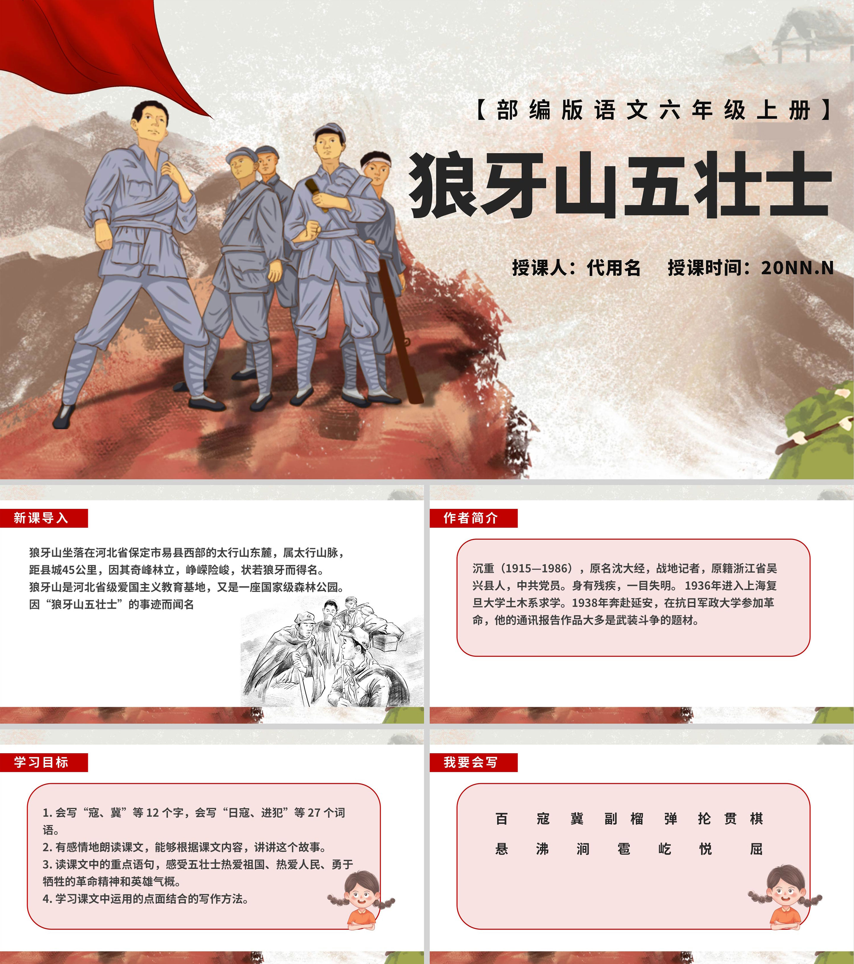 语文六年级上狼牙山五壮士课件PPT模板