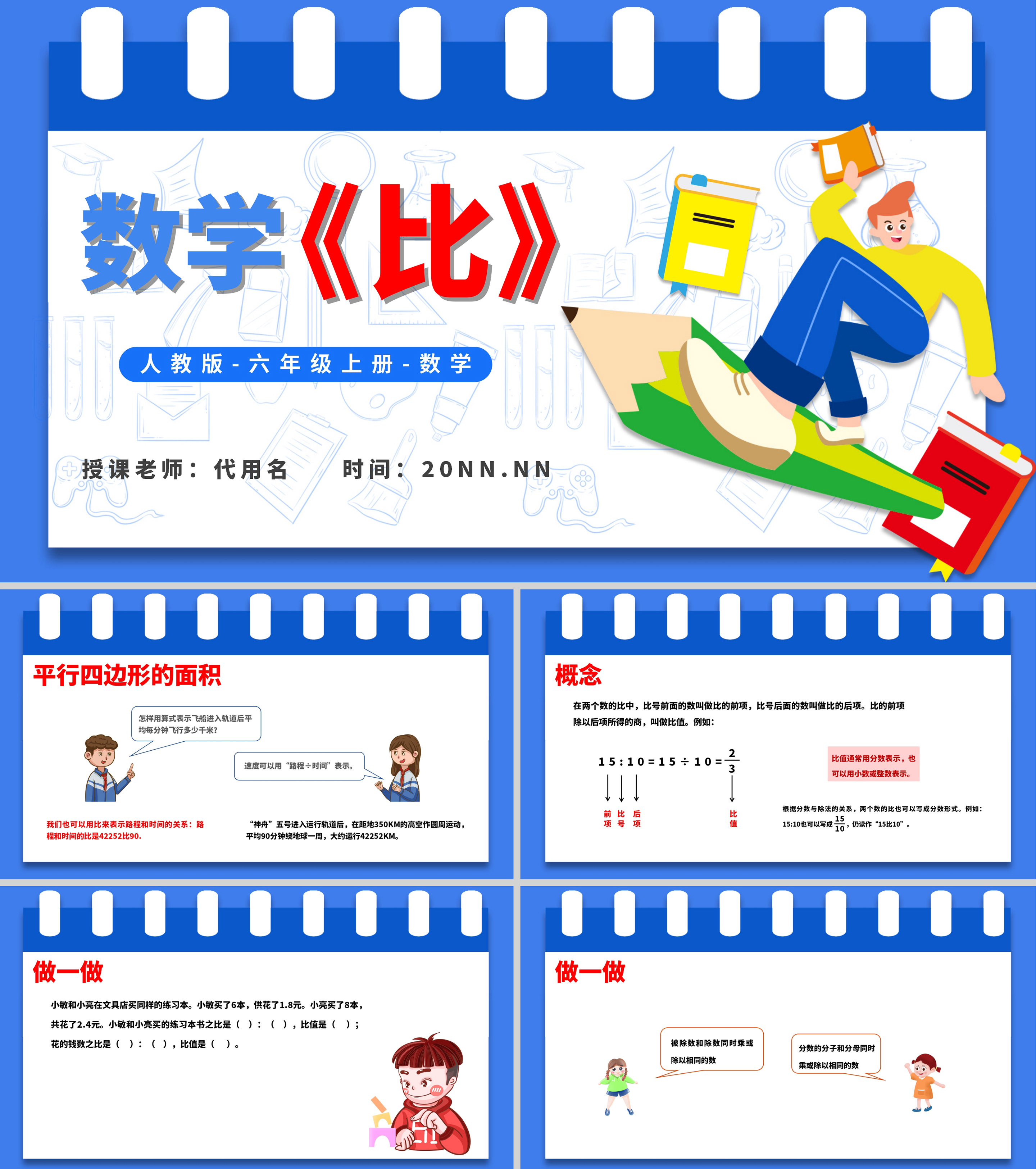 卡通六年级上数学-比教学课件PPT模板