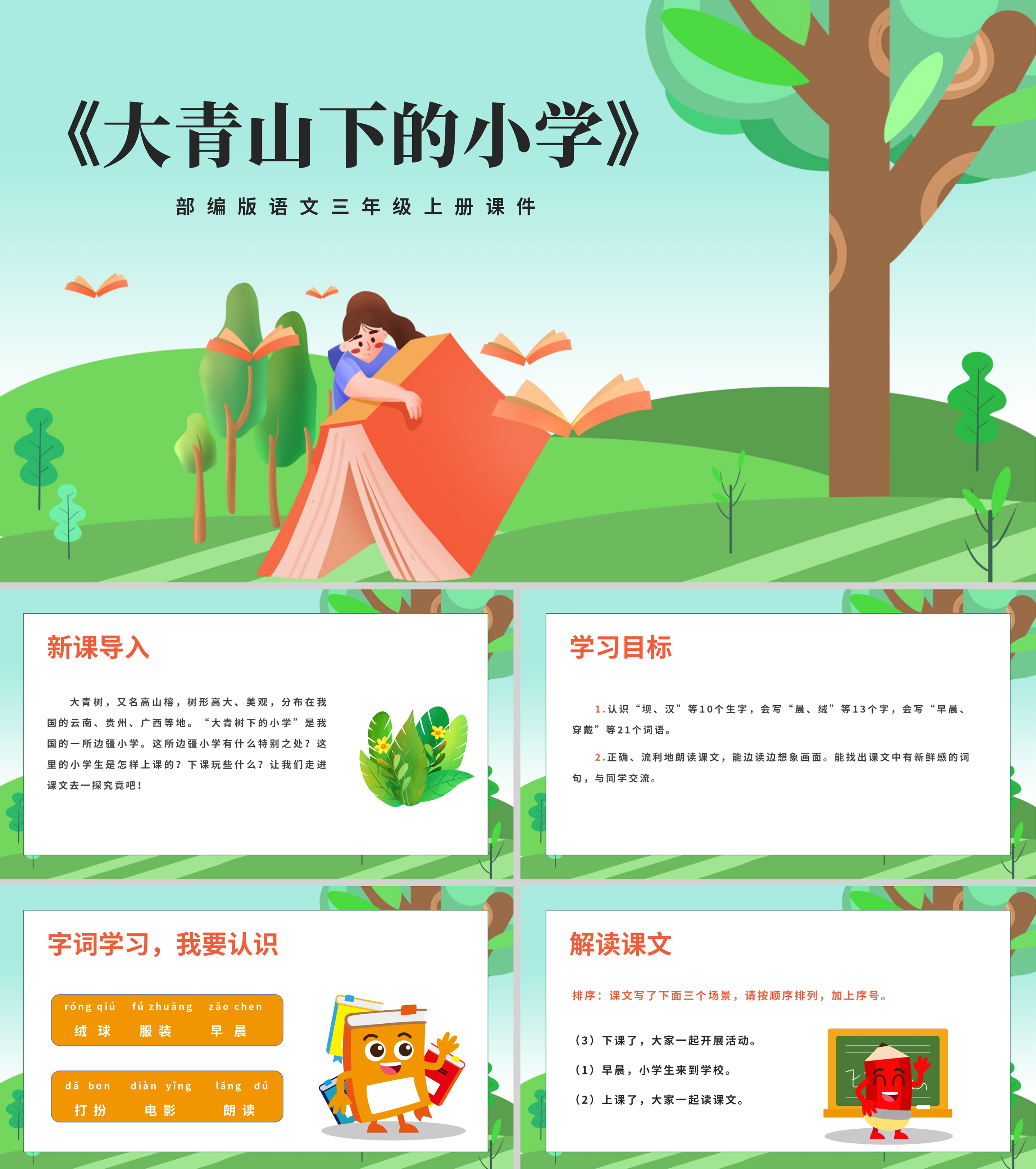 卡通三年级语文《大青山下的小学》课件PPT模板