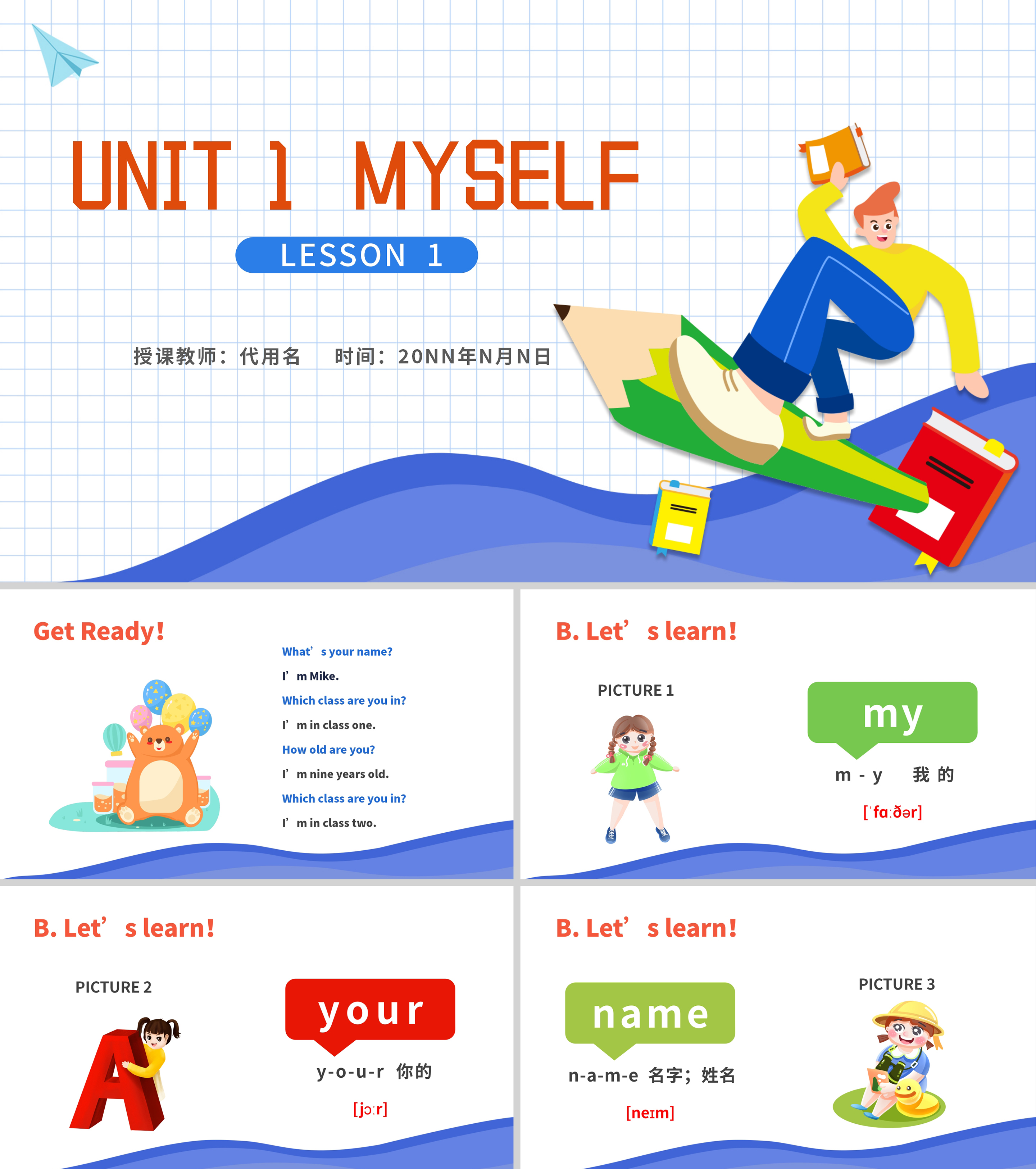 卡通三年级英语上《Myself》课件PPT模板