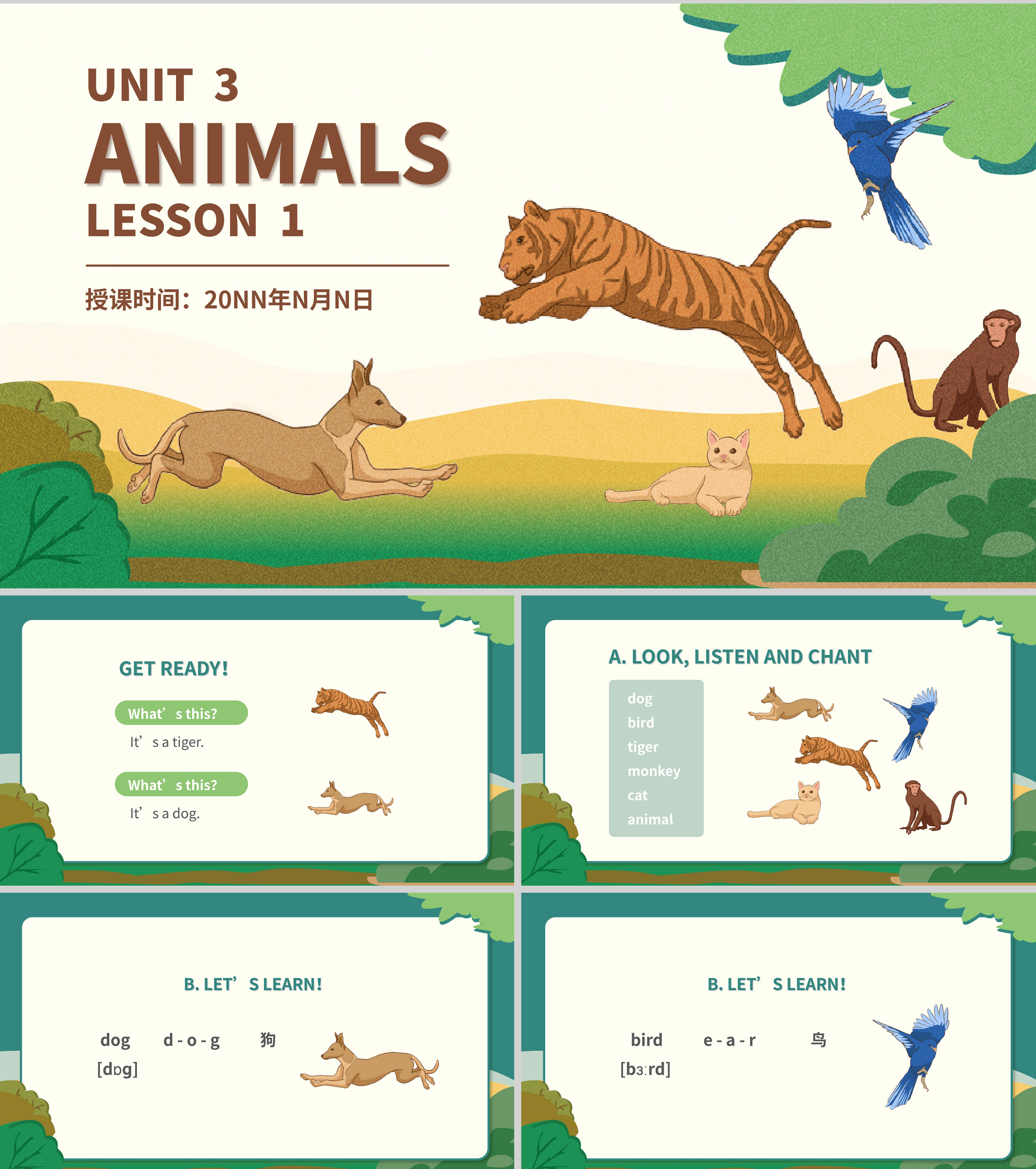 卡通动物英语《ANIMALS》教学课件PPT模板
