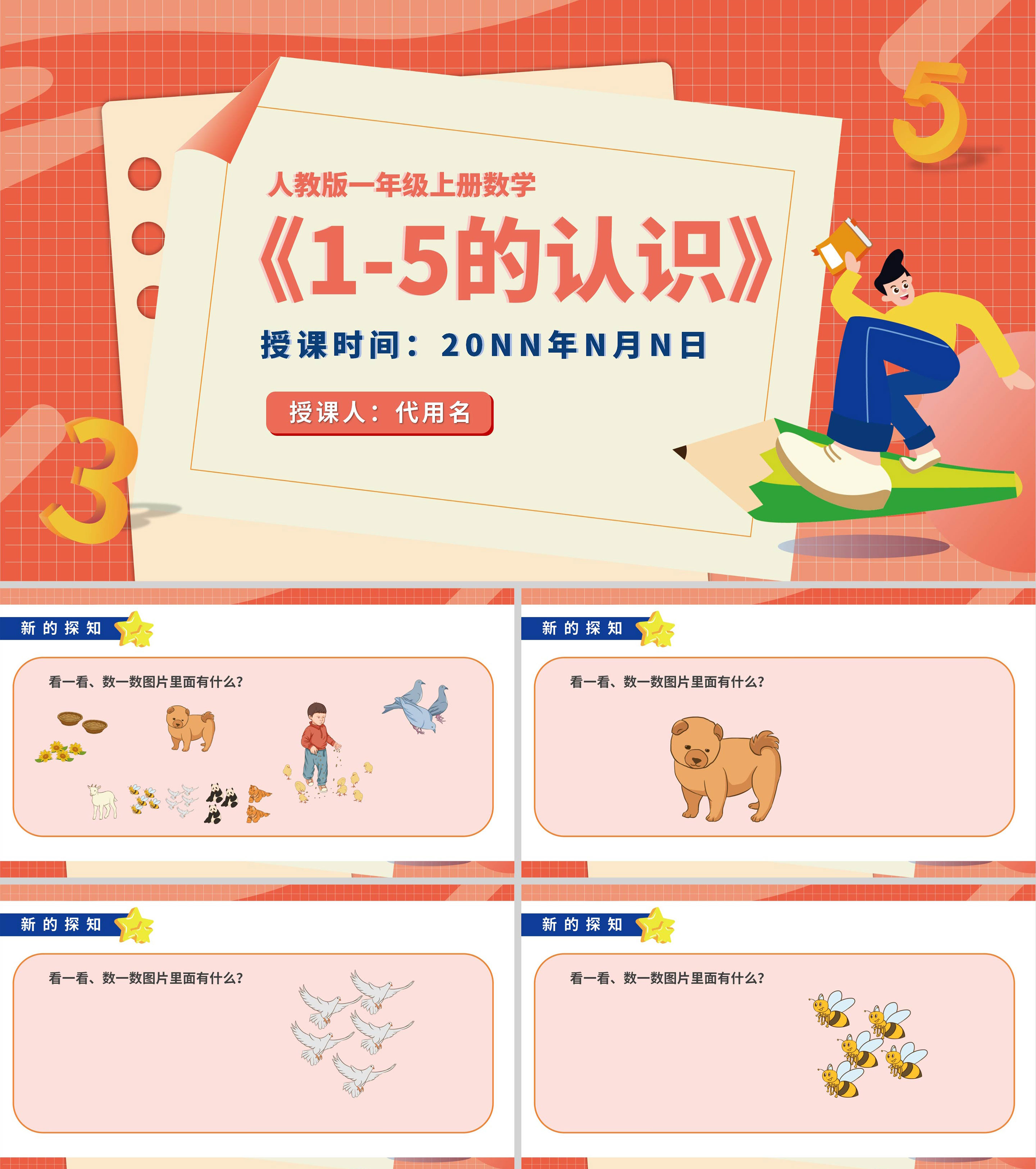 卡通一年级数学《1-5的认识》课件PPT模板