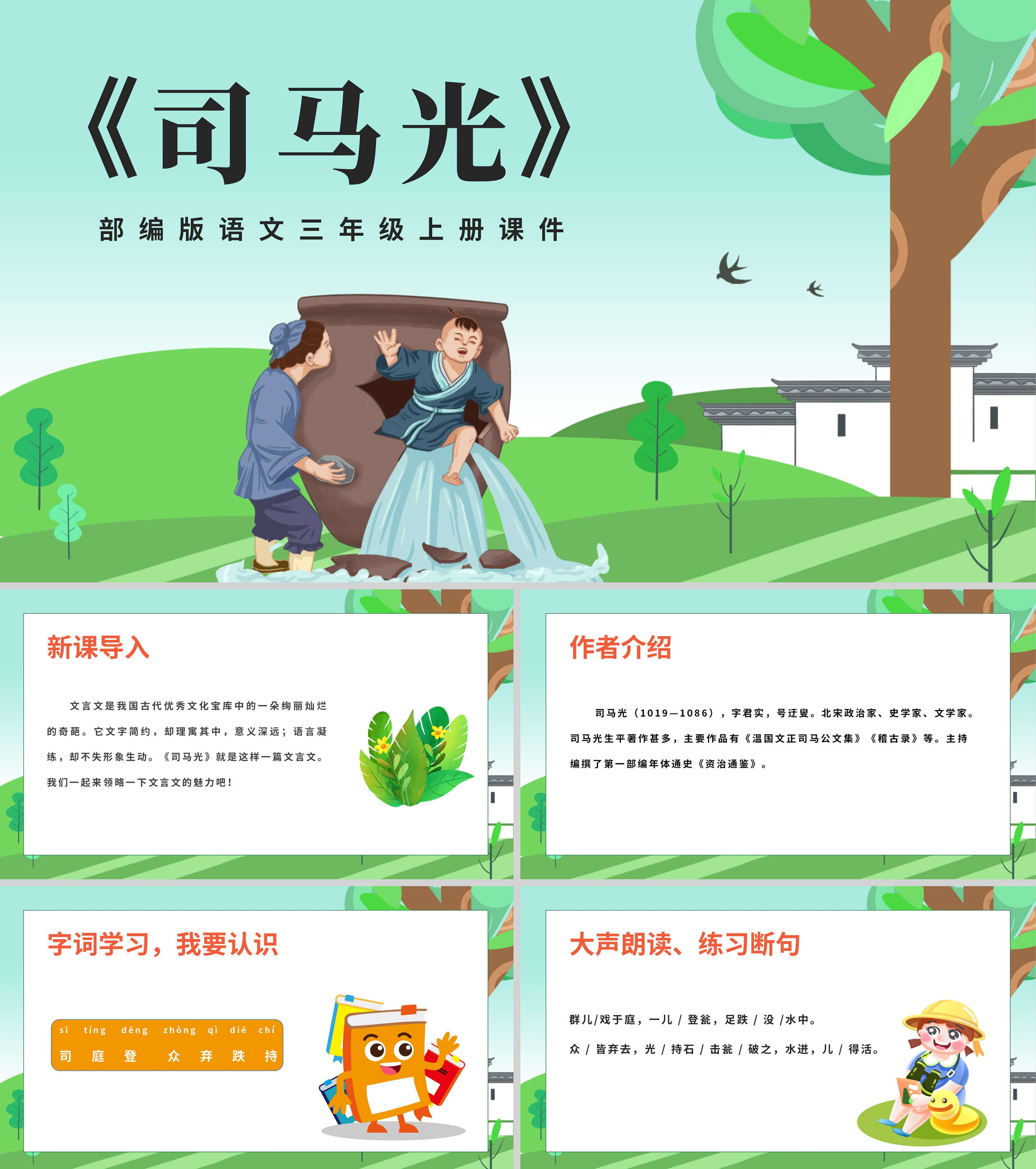 蓝色插画风语文三年级上册司马光PPT课件