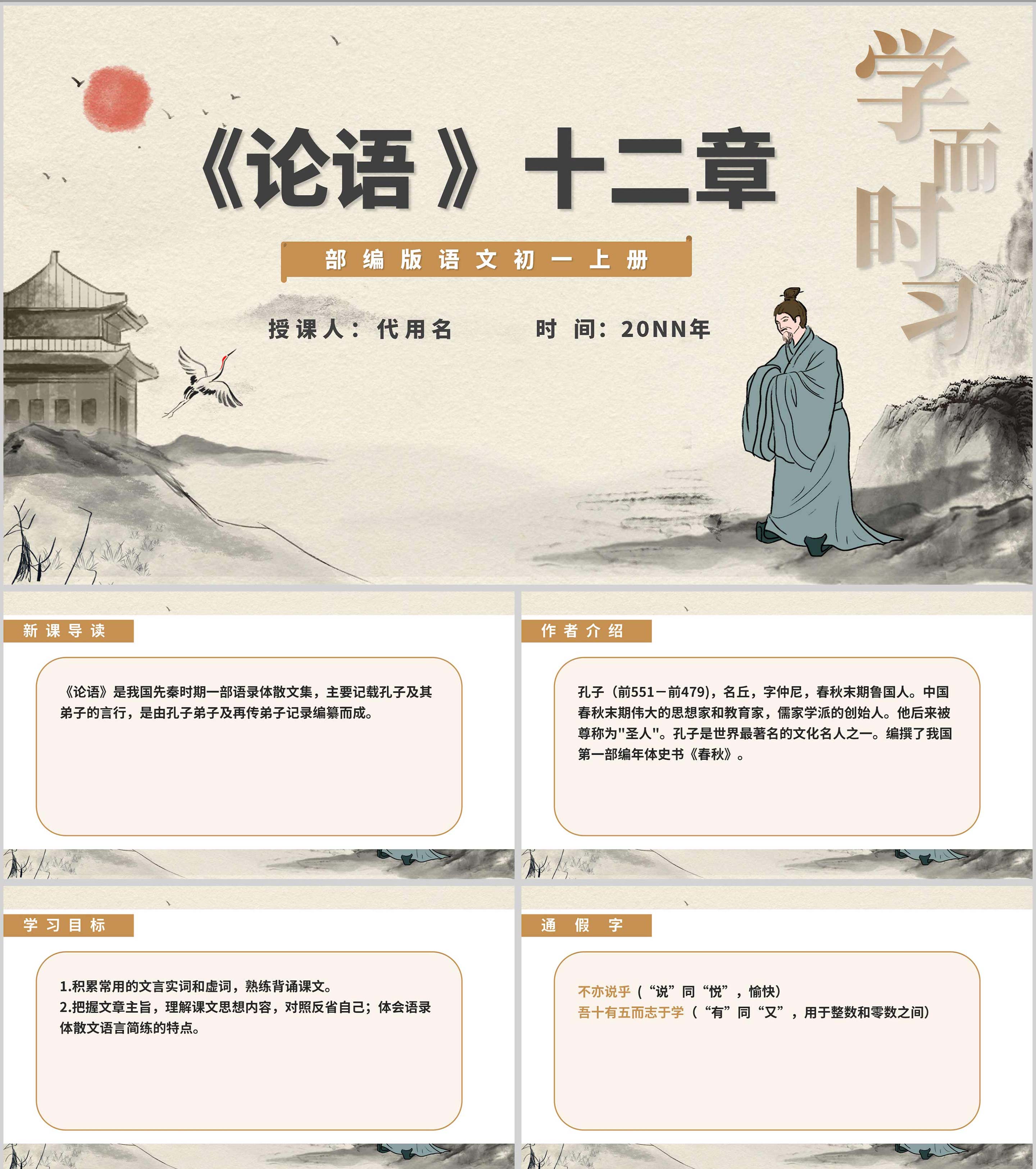 黄色中国风古风语文初一论语课件PPT模板