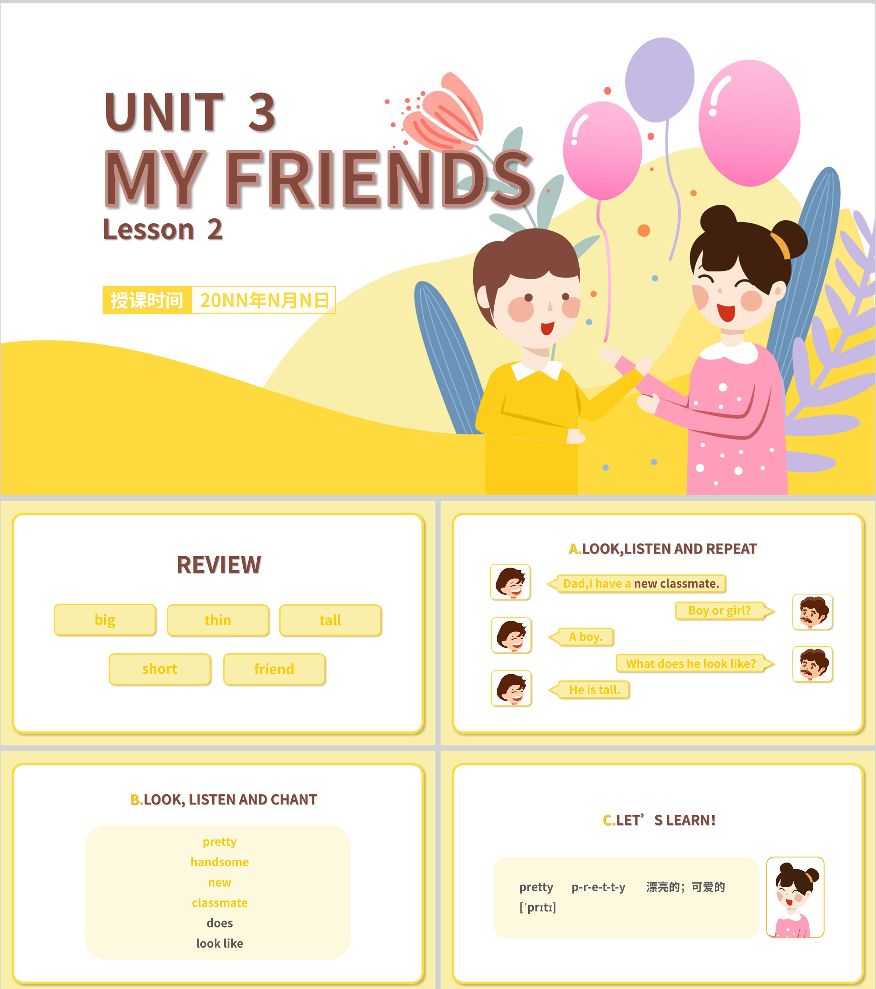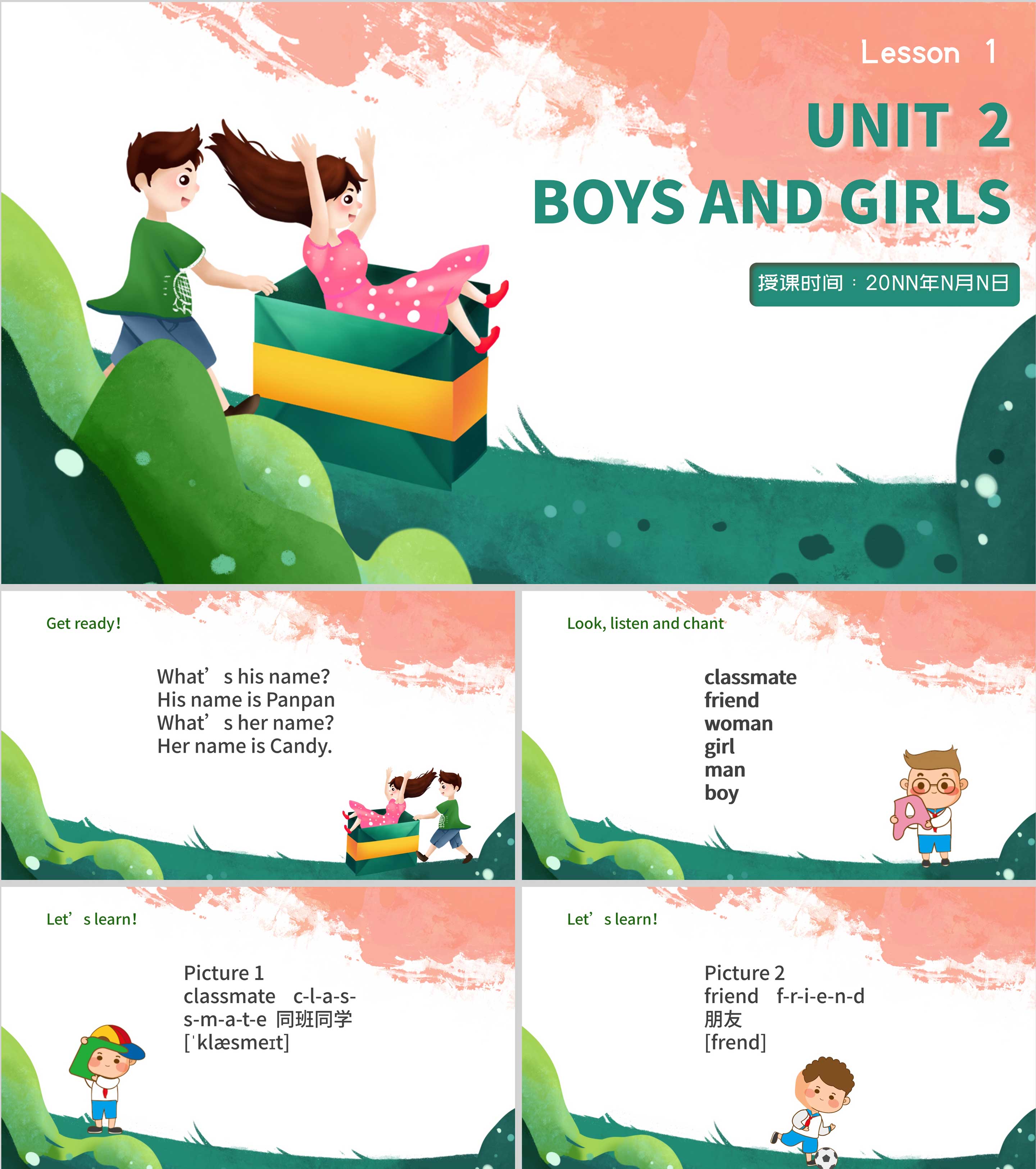 粉色插画风二年级英语上册交友PPT课件