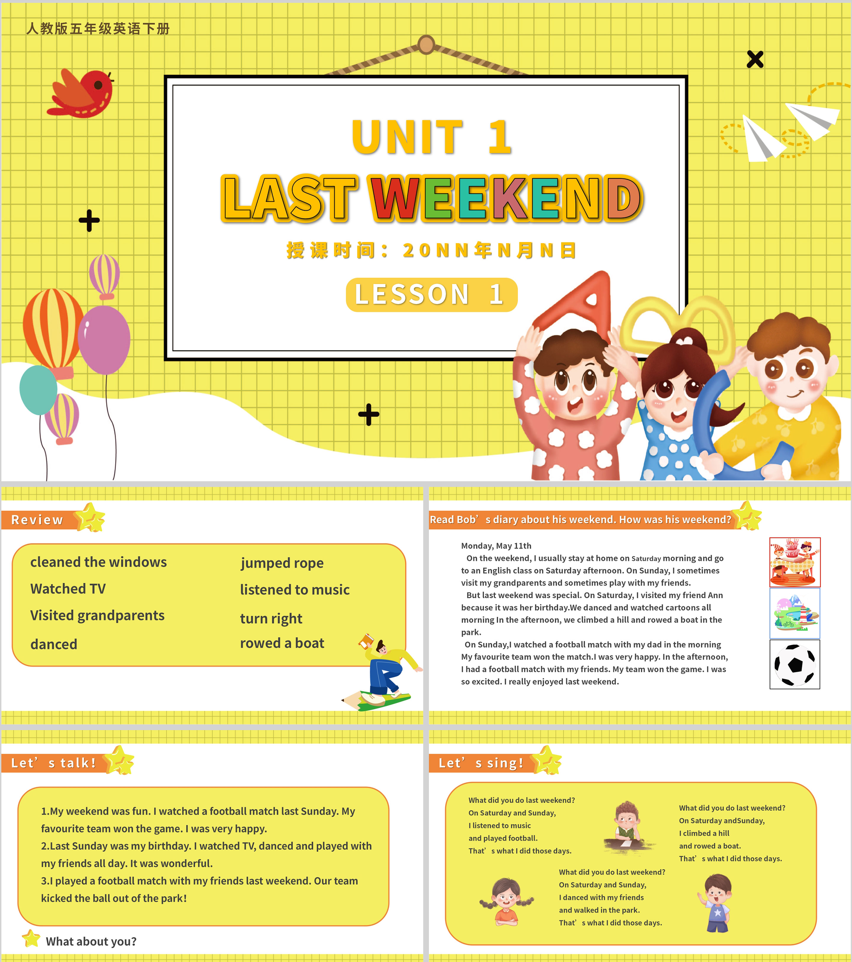 黄色卡通风五年级英语下册课件PPT模板