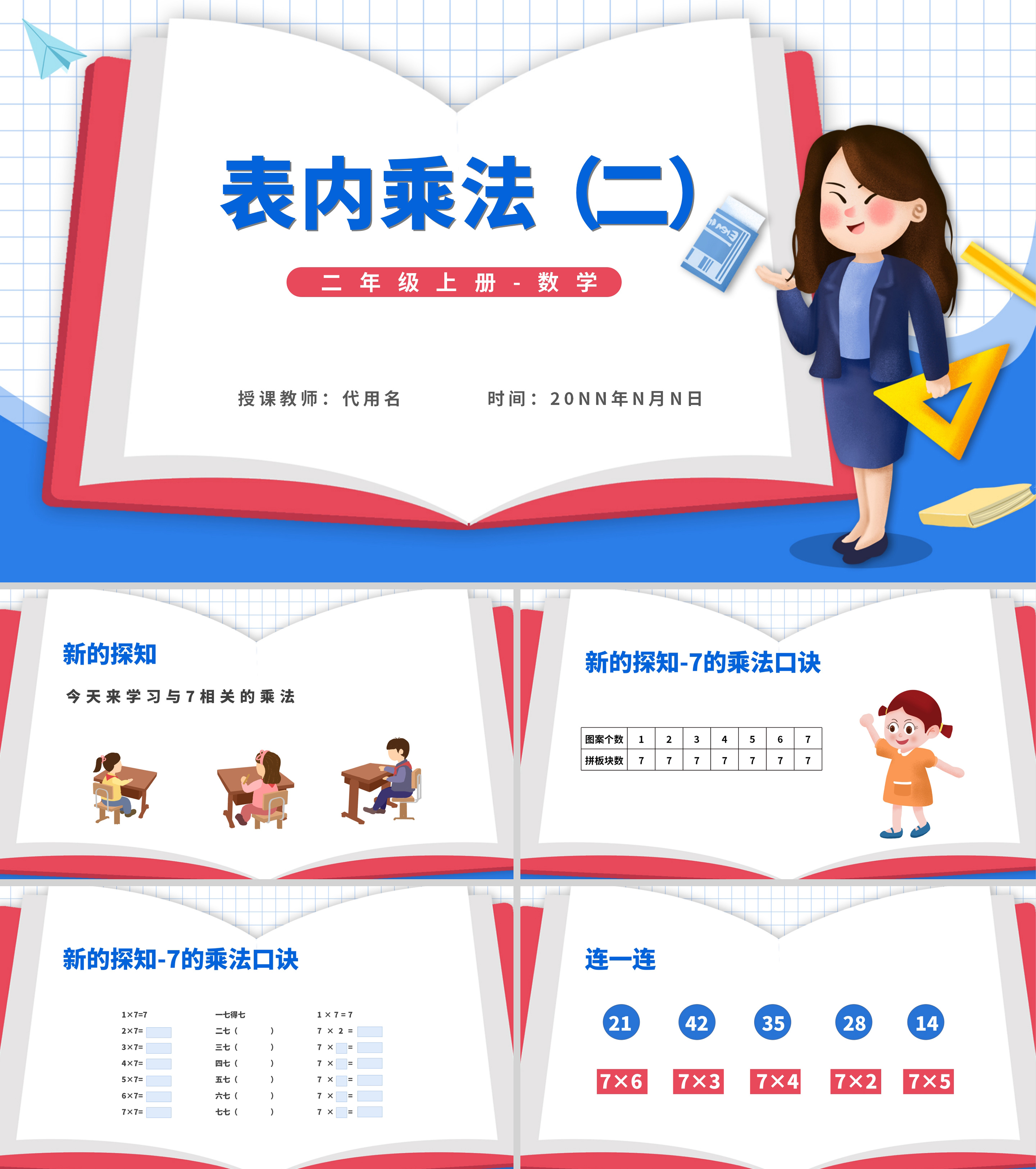 卡通二年级上数学《表内乘法》课件PPT模板