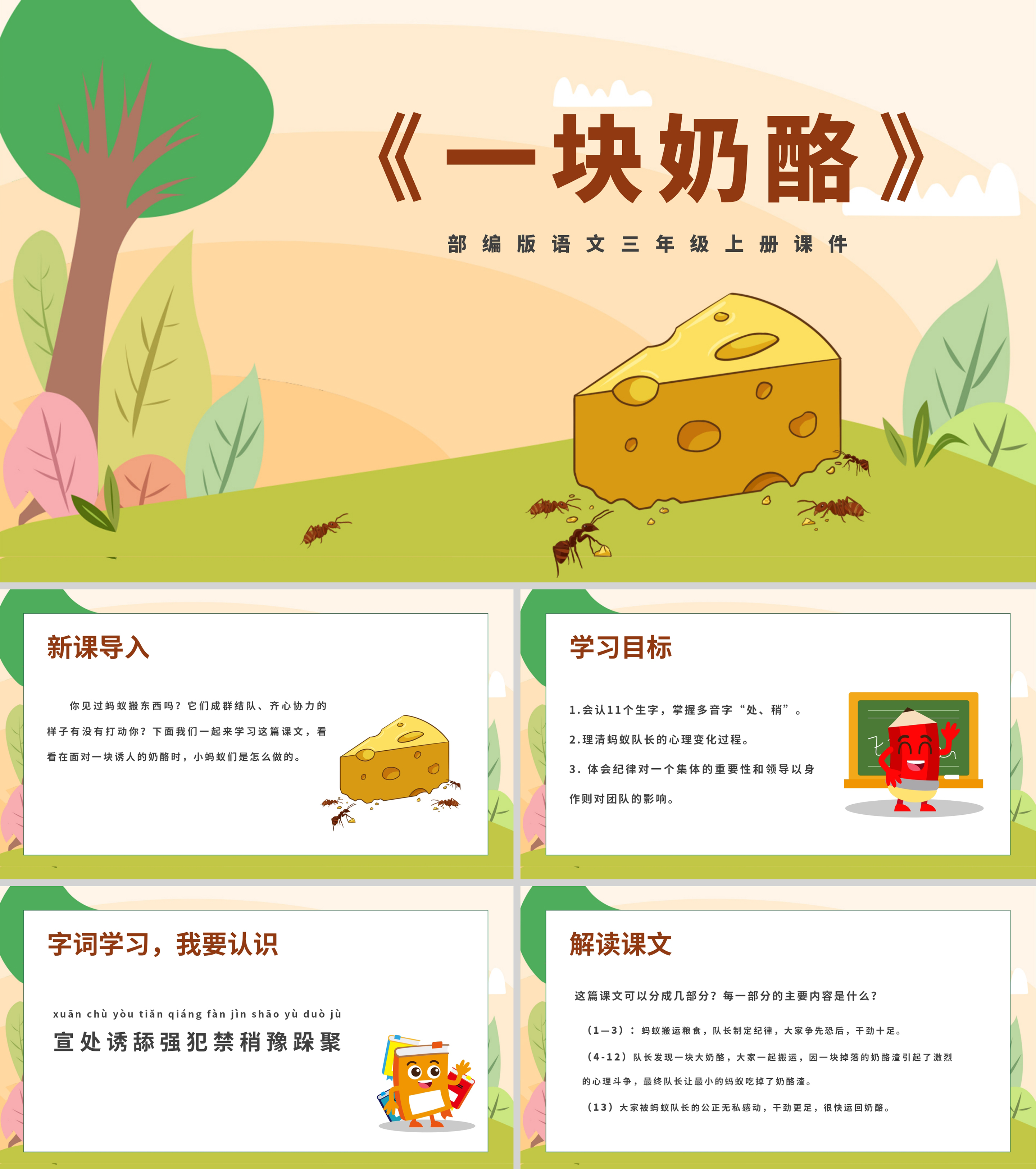 卡通风语文三年级《一块奶酪》课件PPT模板