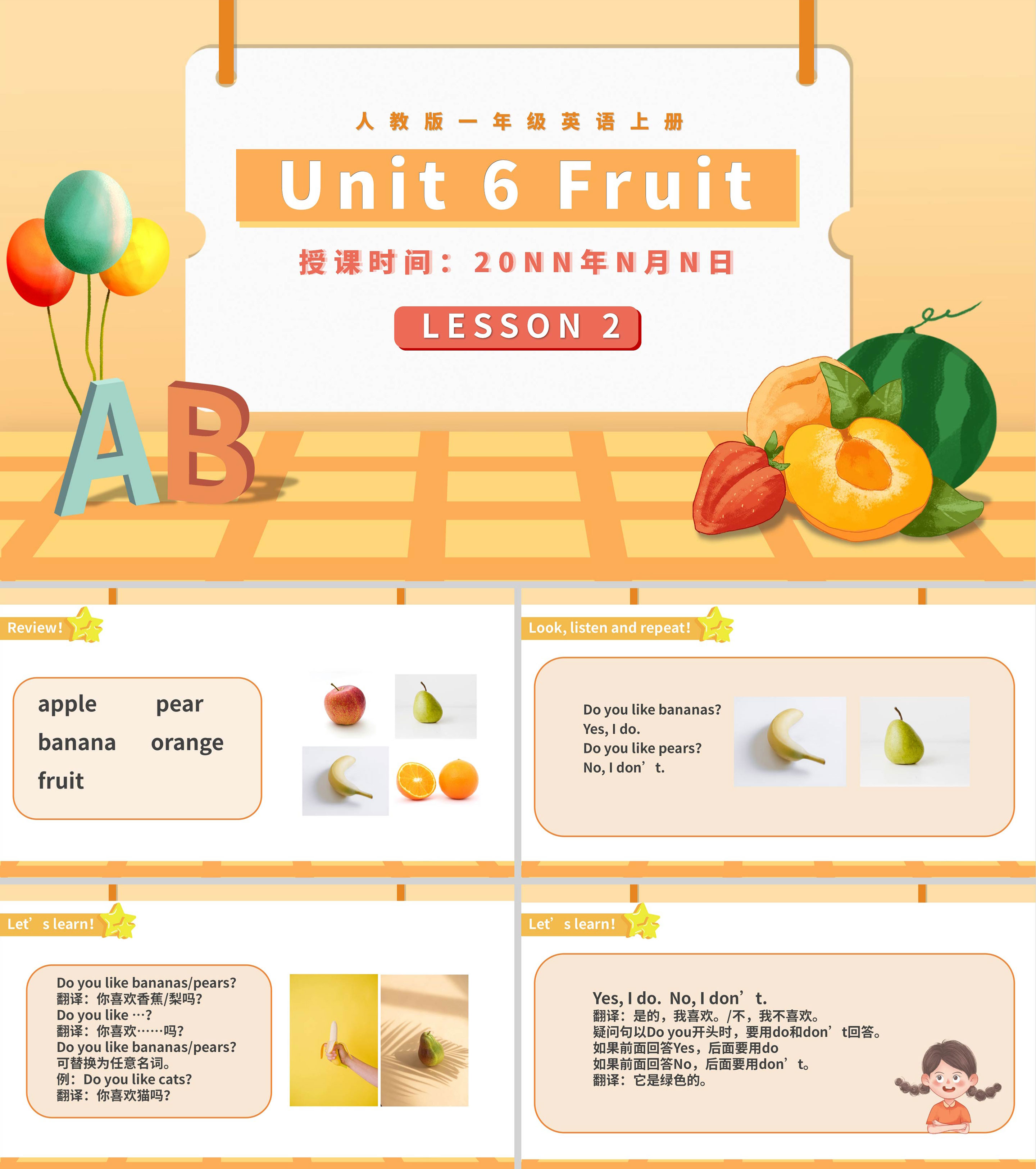 橙色卡通风八年级英语上册合作教学课件PPT模板
