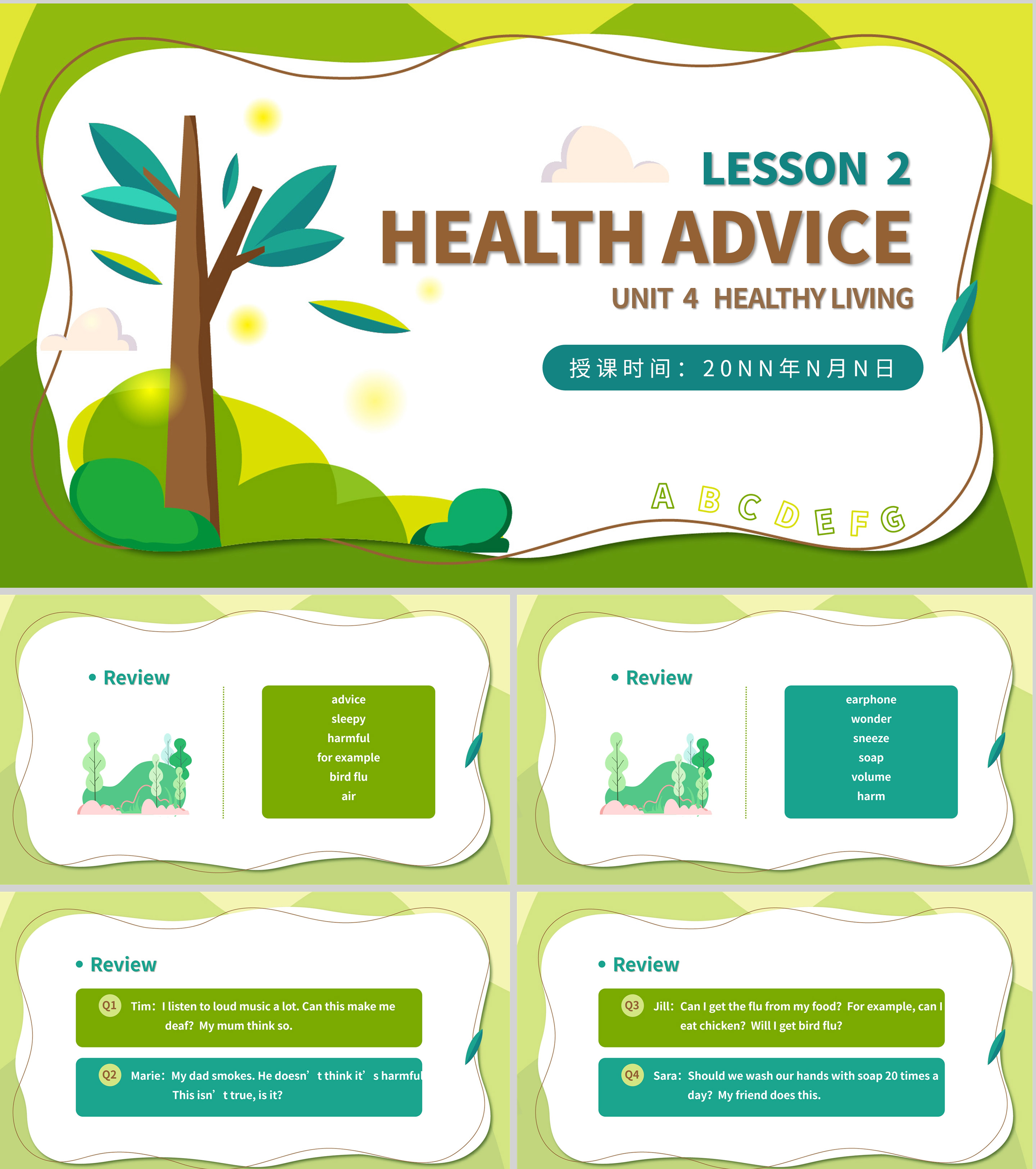 绿色扁平风八年级英语健康忠告课件PPT模板
