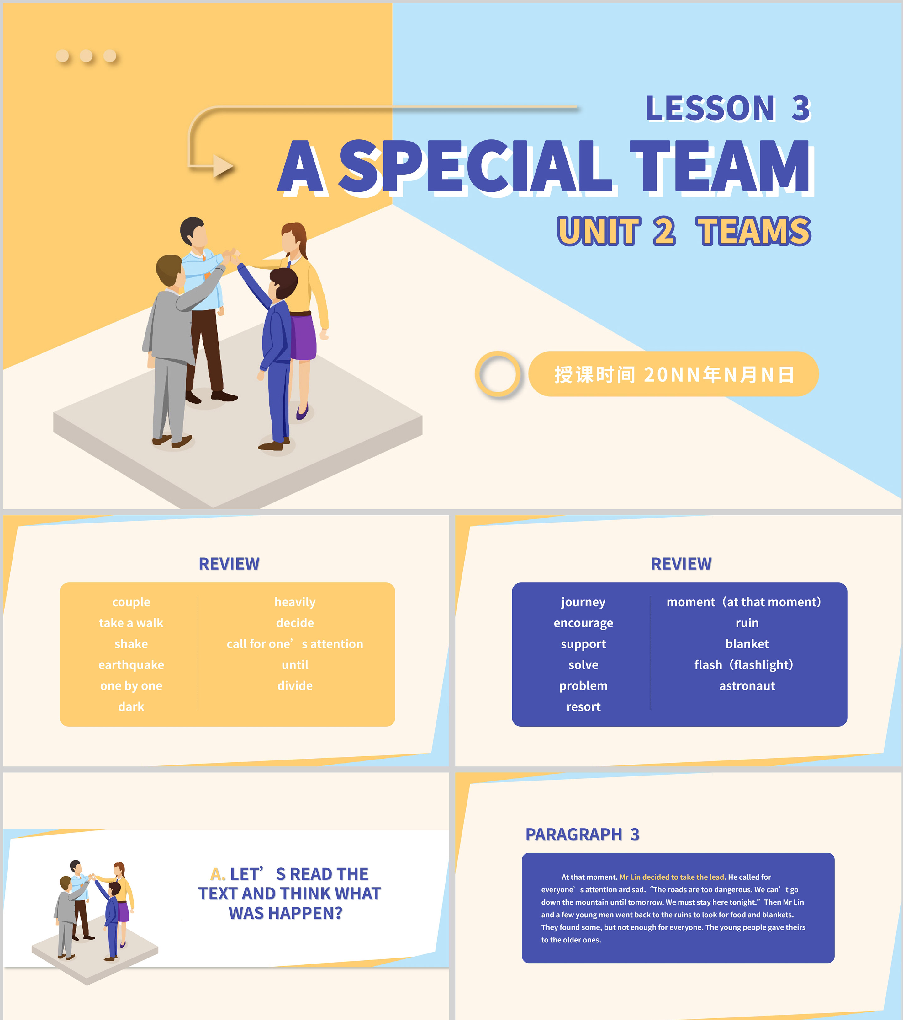 蓝色插画风八年级英语特别小组课件PPT模板