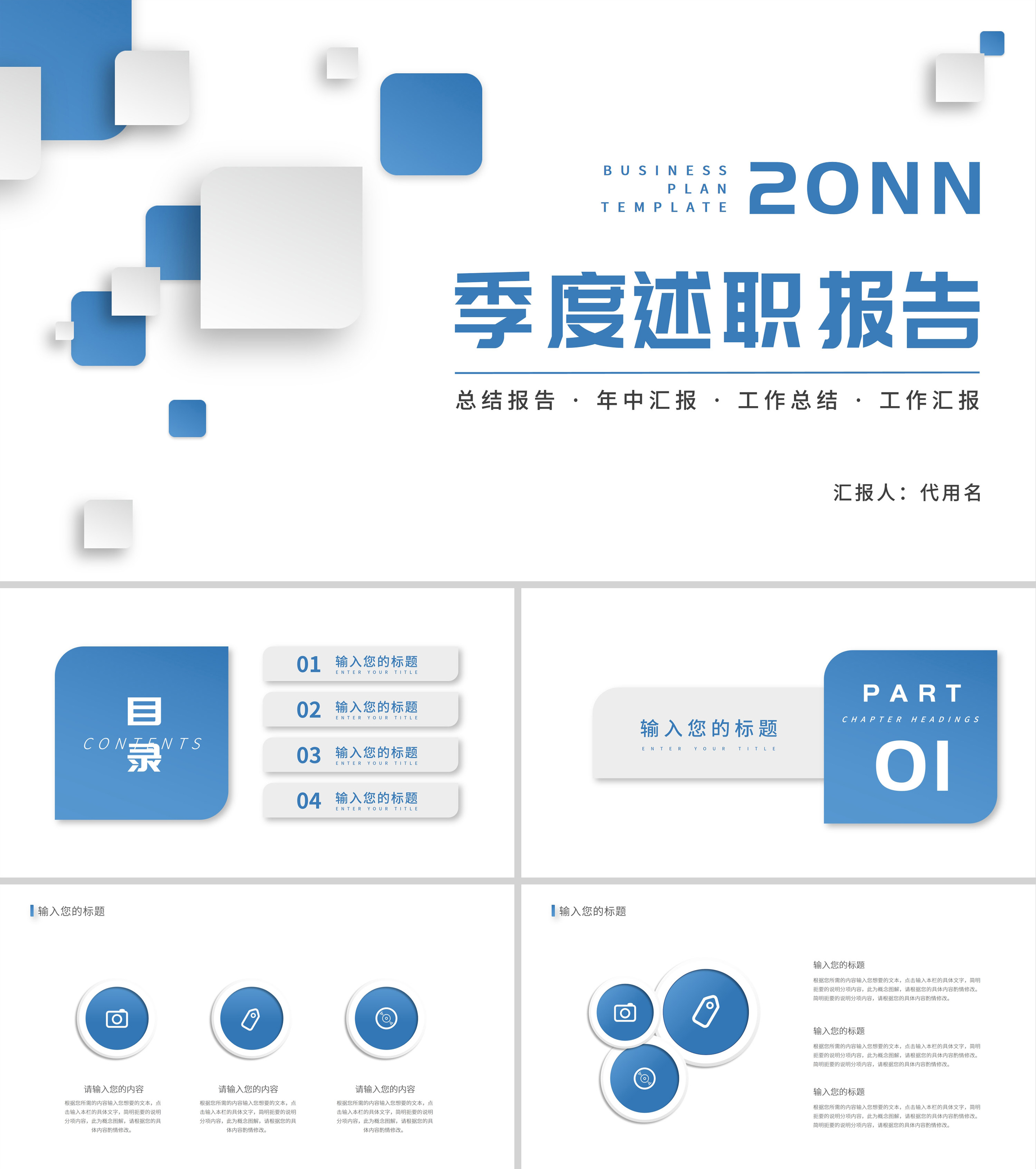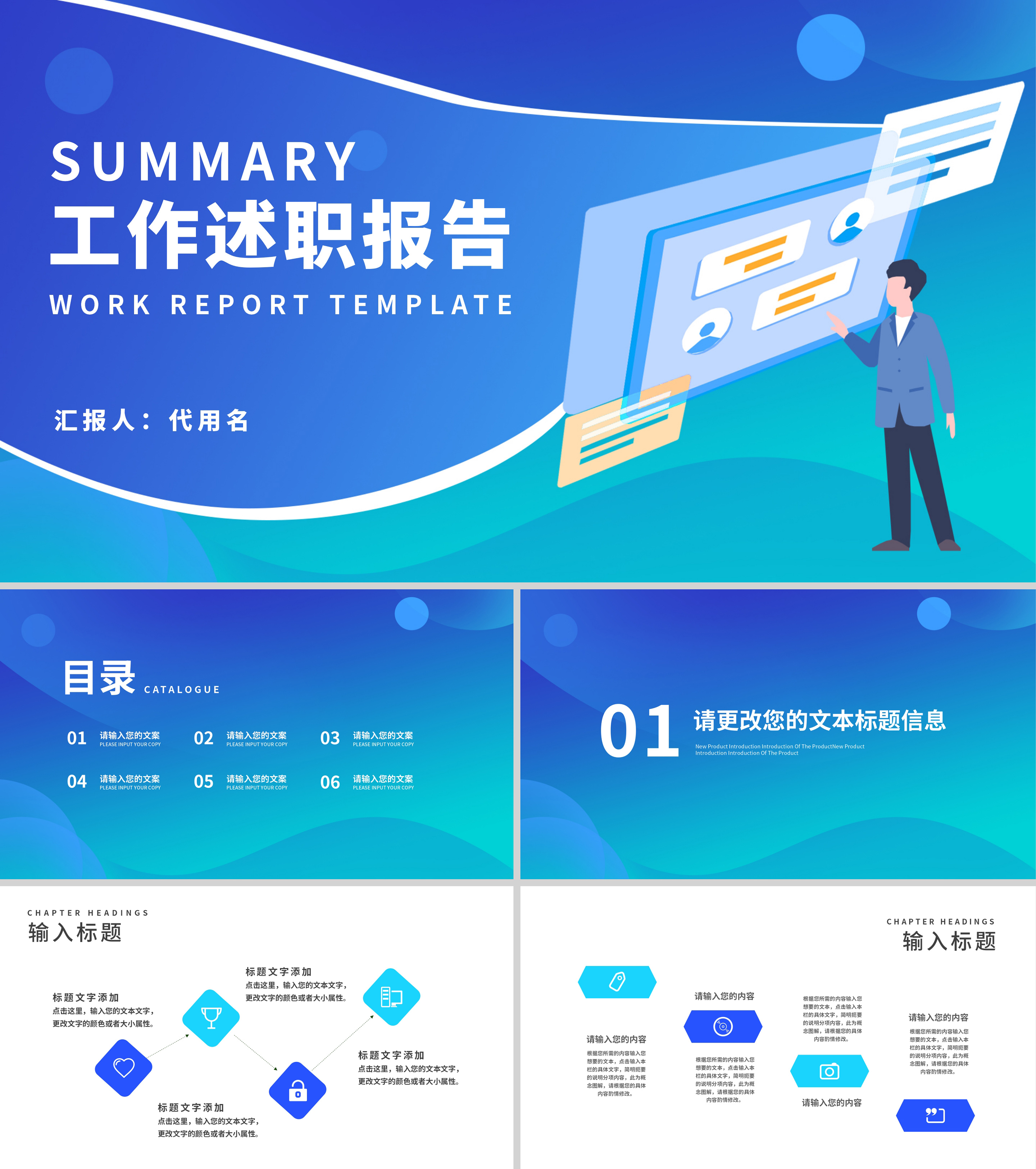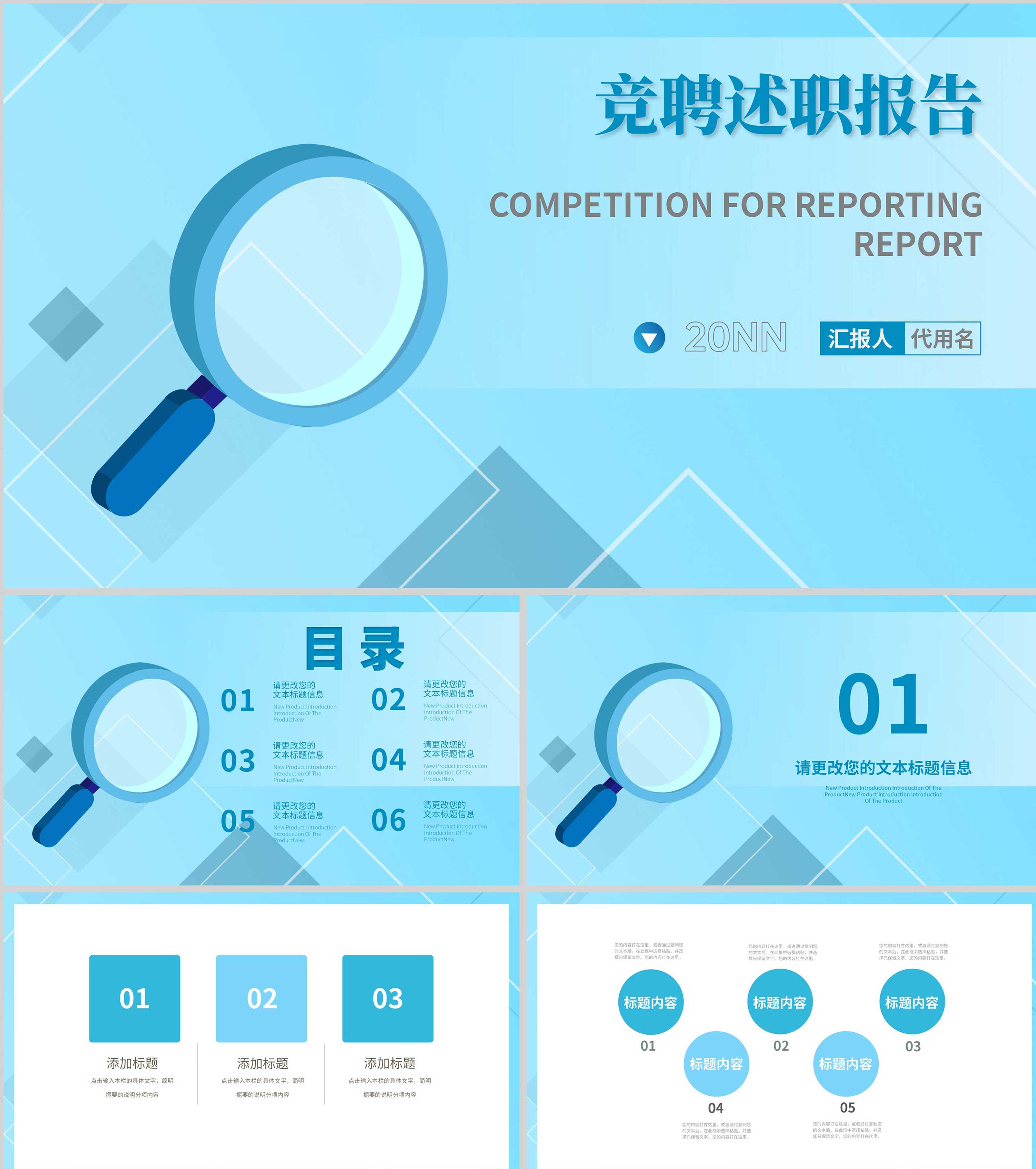 蓝色几何风放大镜竞聘述职报告PPT模板