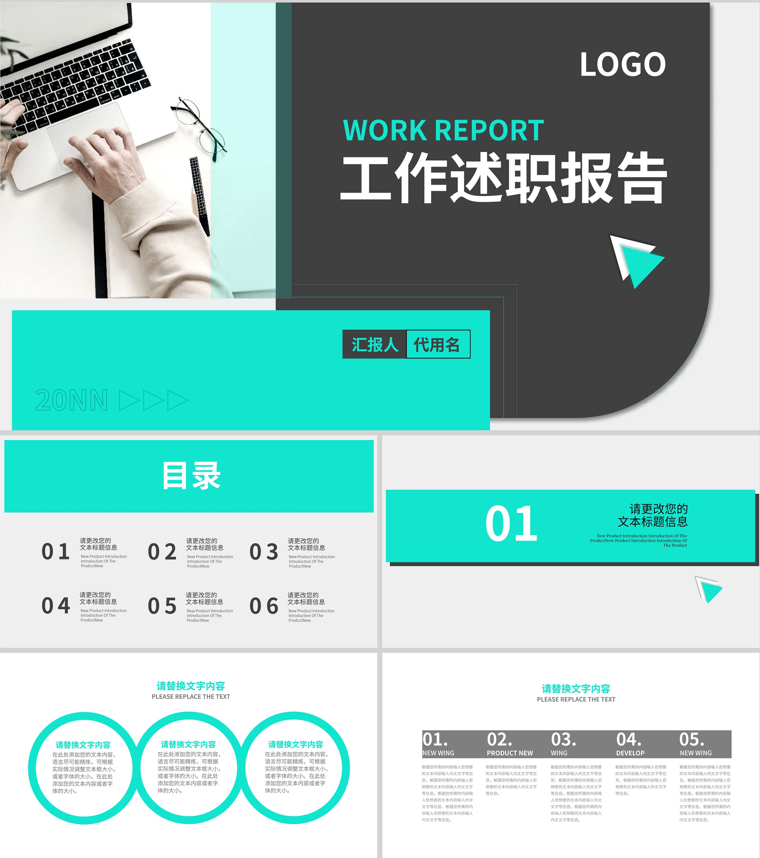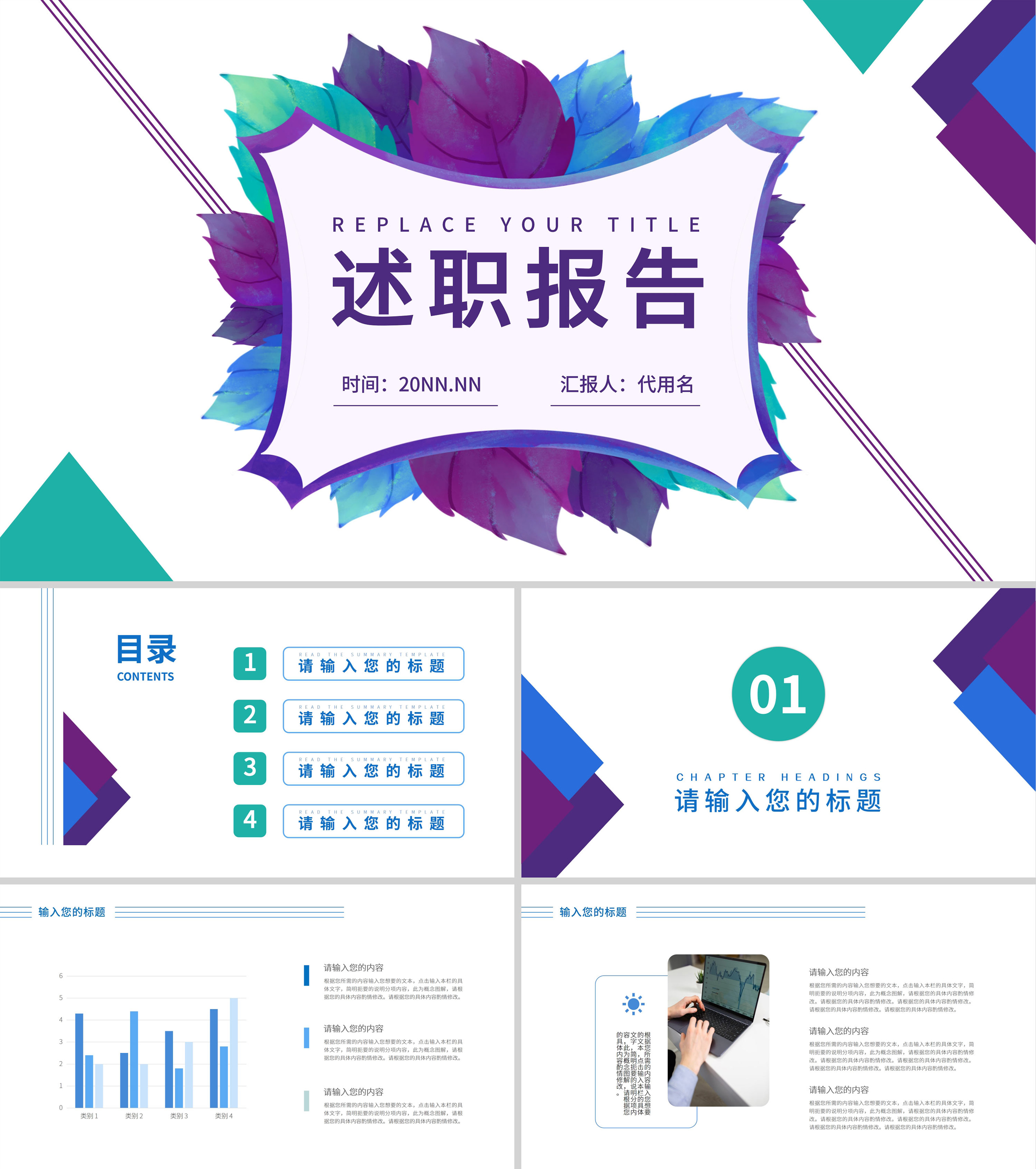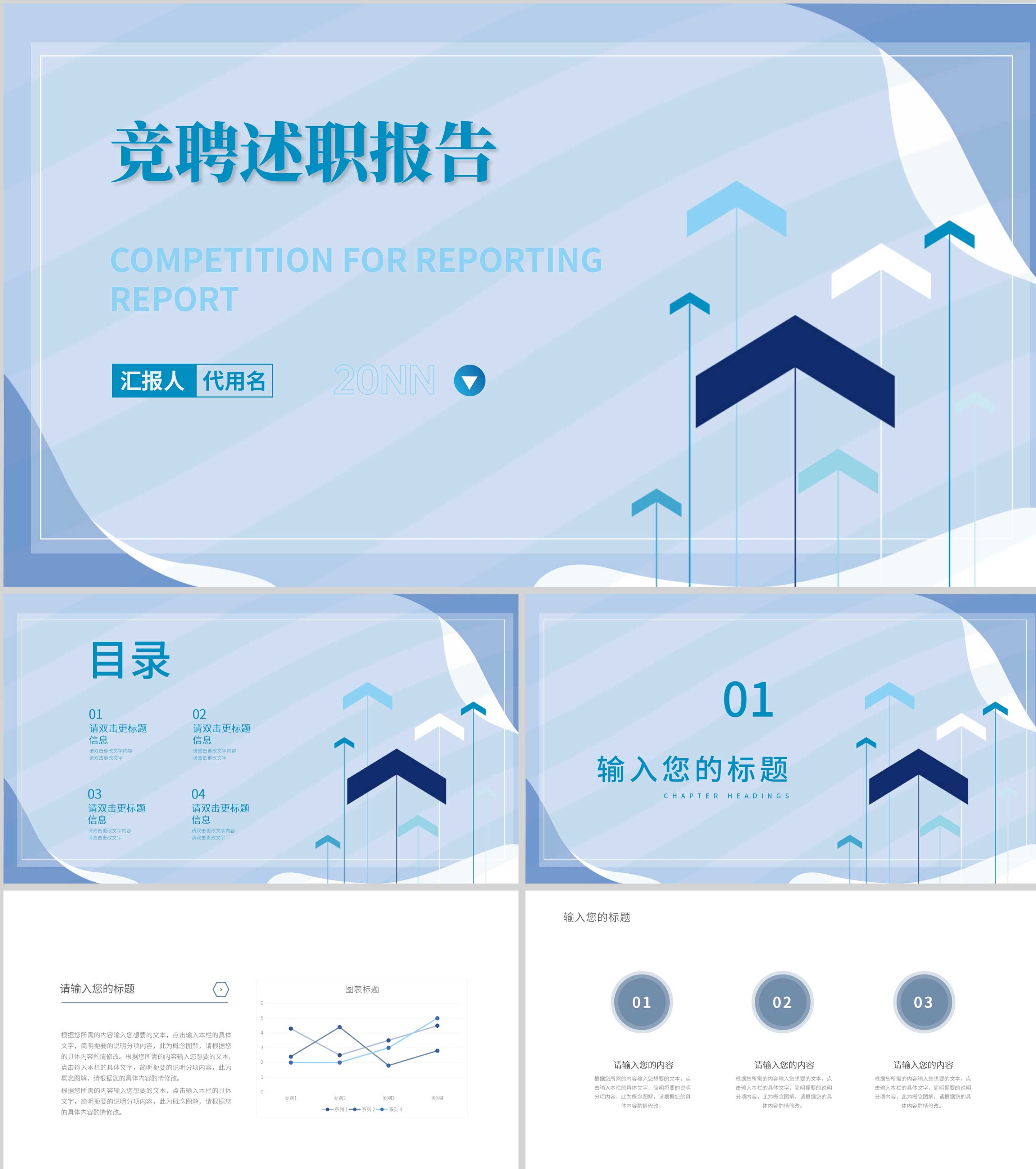 蓝色扁平风条纹竞聘述职报告PPT模板