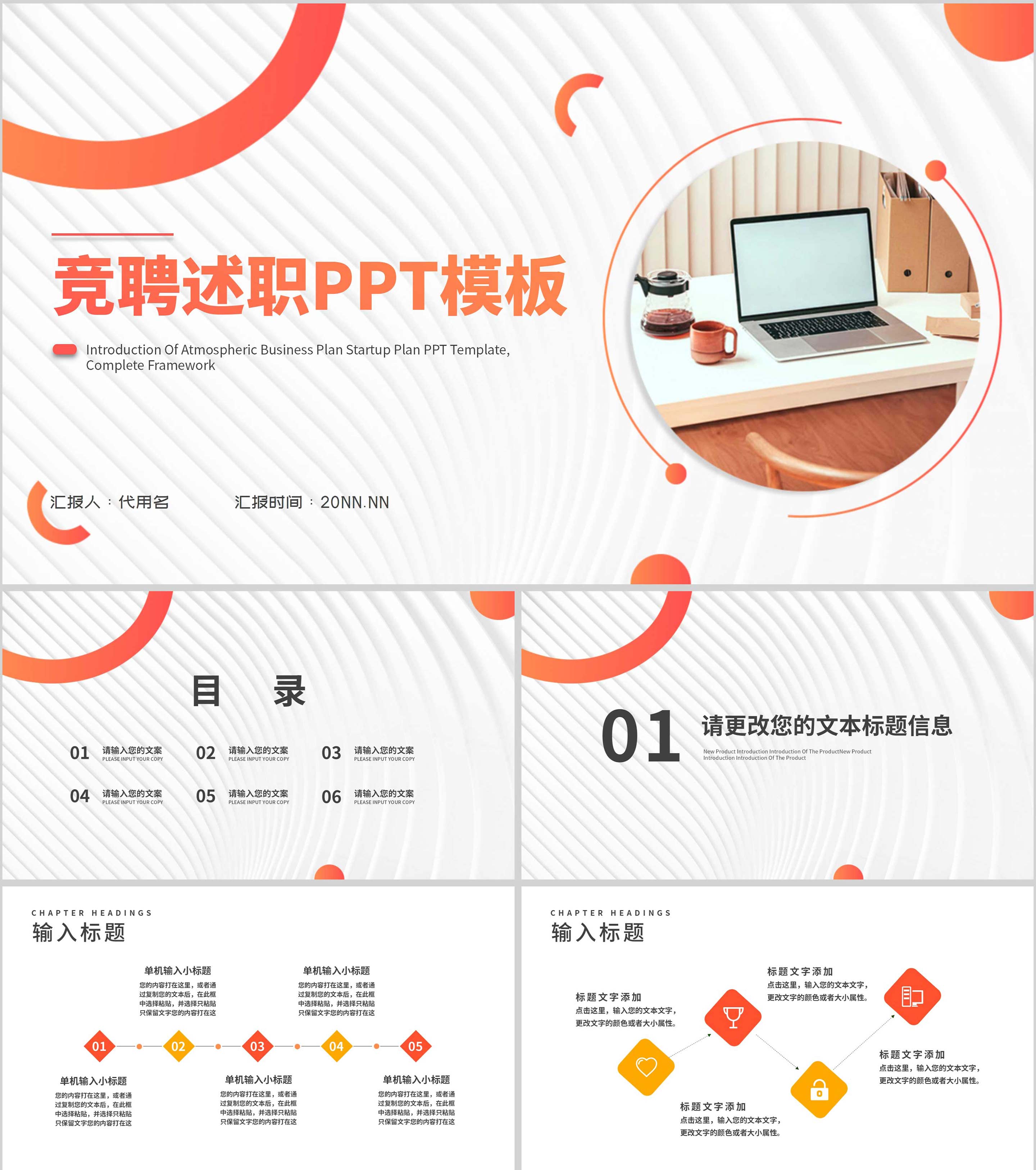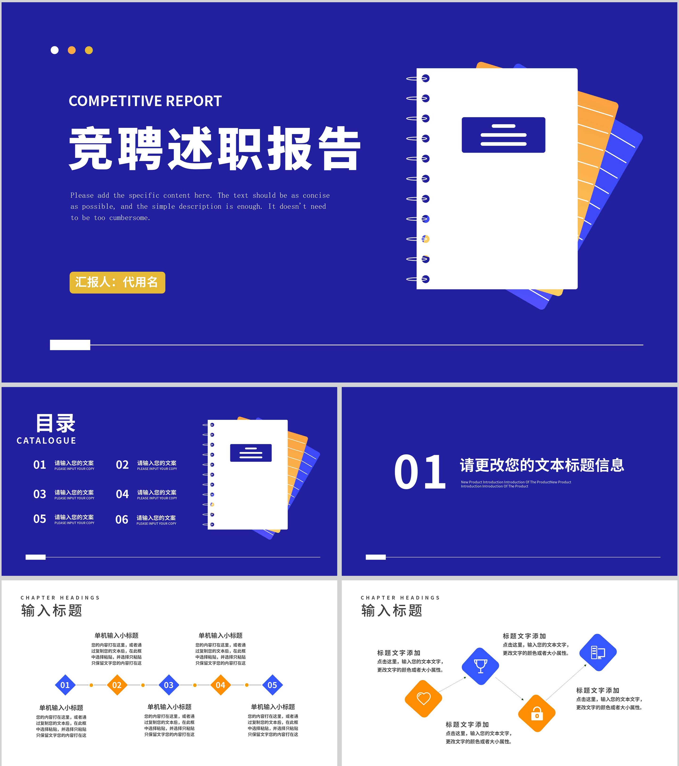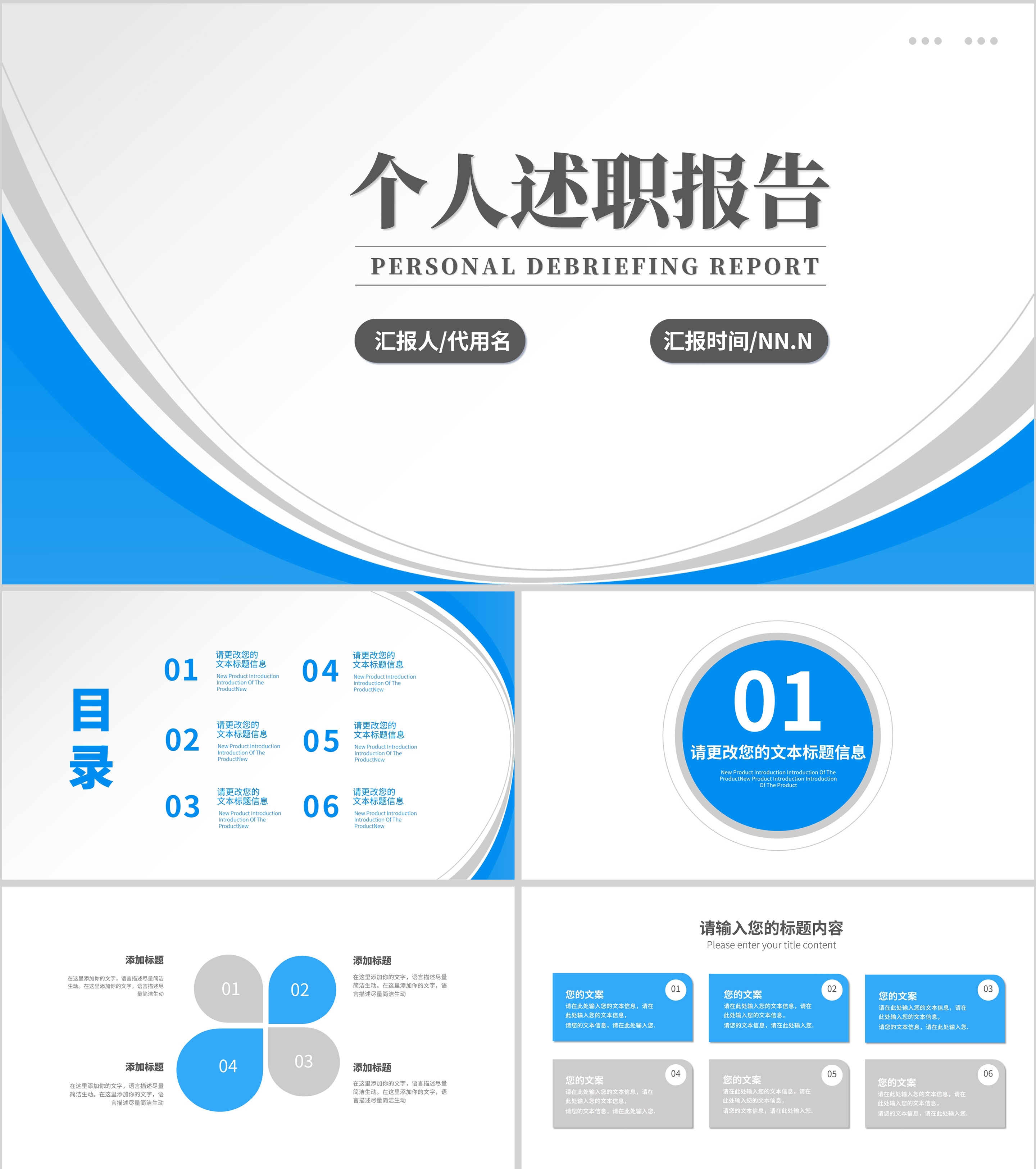 蓝色扁平风职场员工工作计划竞聘述职报告PPT模板