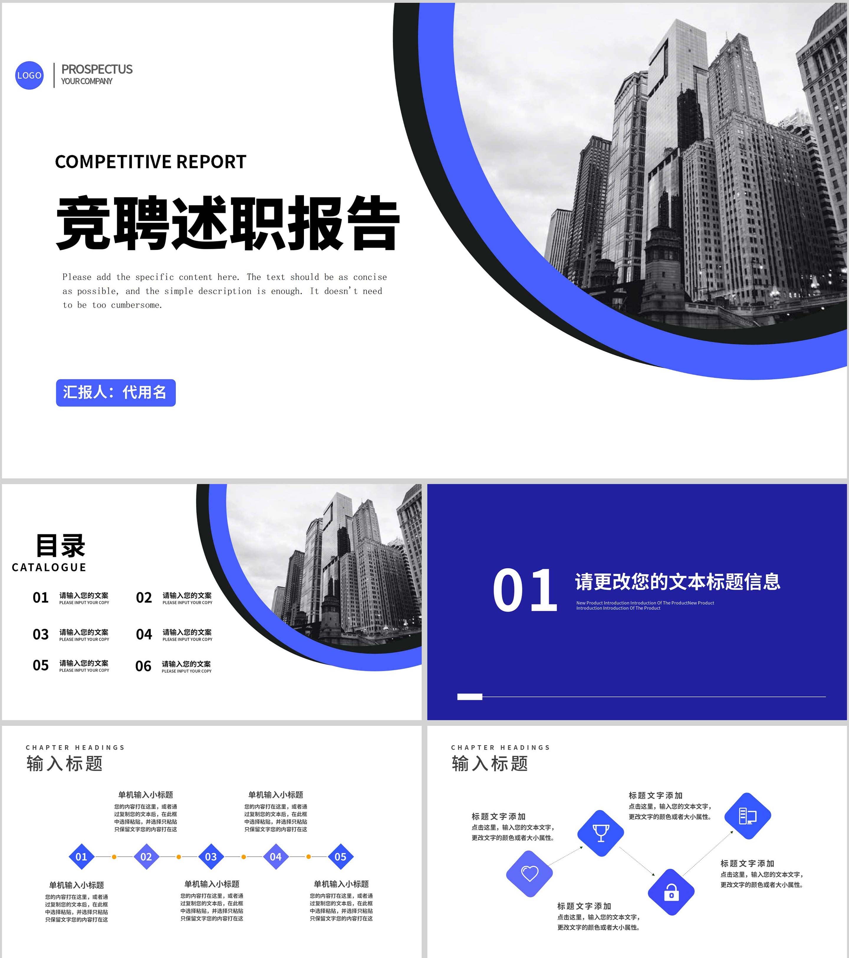 蓝色商务风办公写字楼职场竞聘述职报告PPT模板