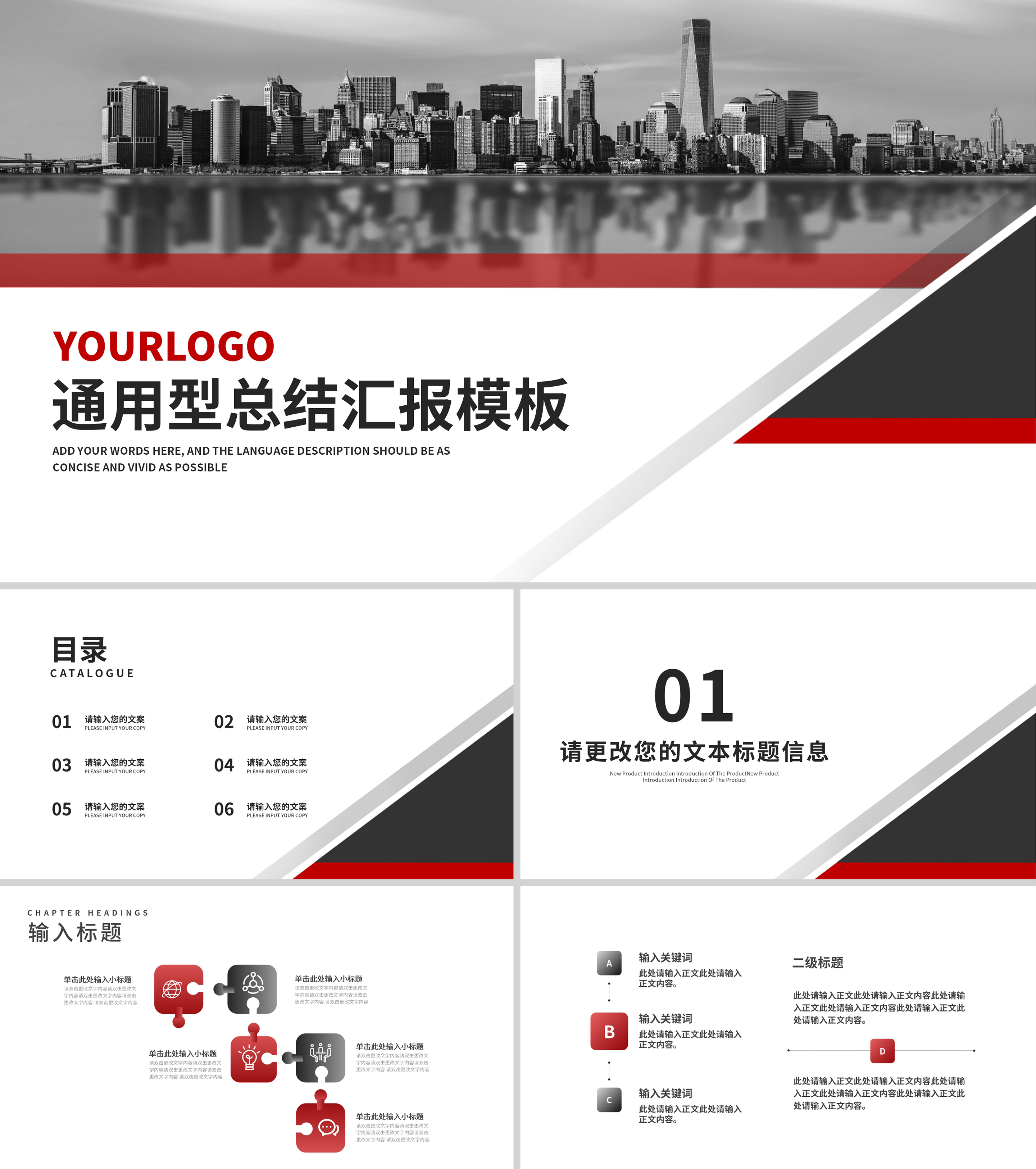 黑白拼色都市职场工作总结汇报通用PPT模板